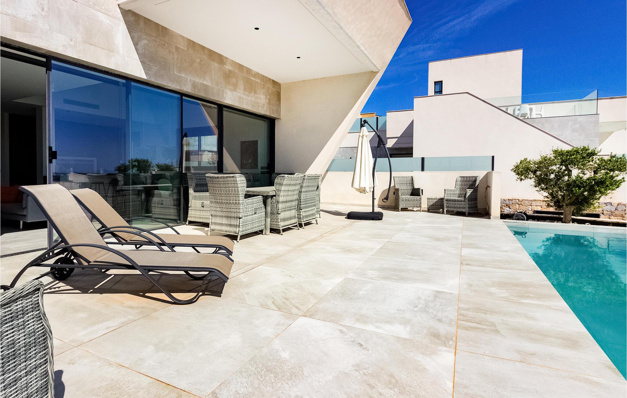 Dette rummelige feriehus ligger nord for Torrevieja, inden for rækkevidde af havet. Indenfor kan I forvente et højkvalitets og moderne interiør, der gør et smagfuldt indtryk. Føl jer godt tilpas i den afslappede atmosfære i de lyse lokaler og lad hverdagens stress ligge bag jer. Udnyt det store køkken og tilbered lækre måltider, mens I har hyggelige samtaler med de andre gæster.