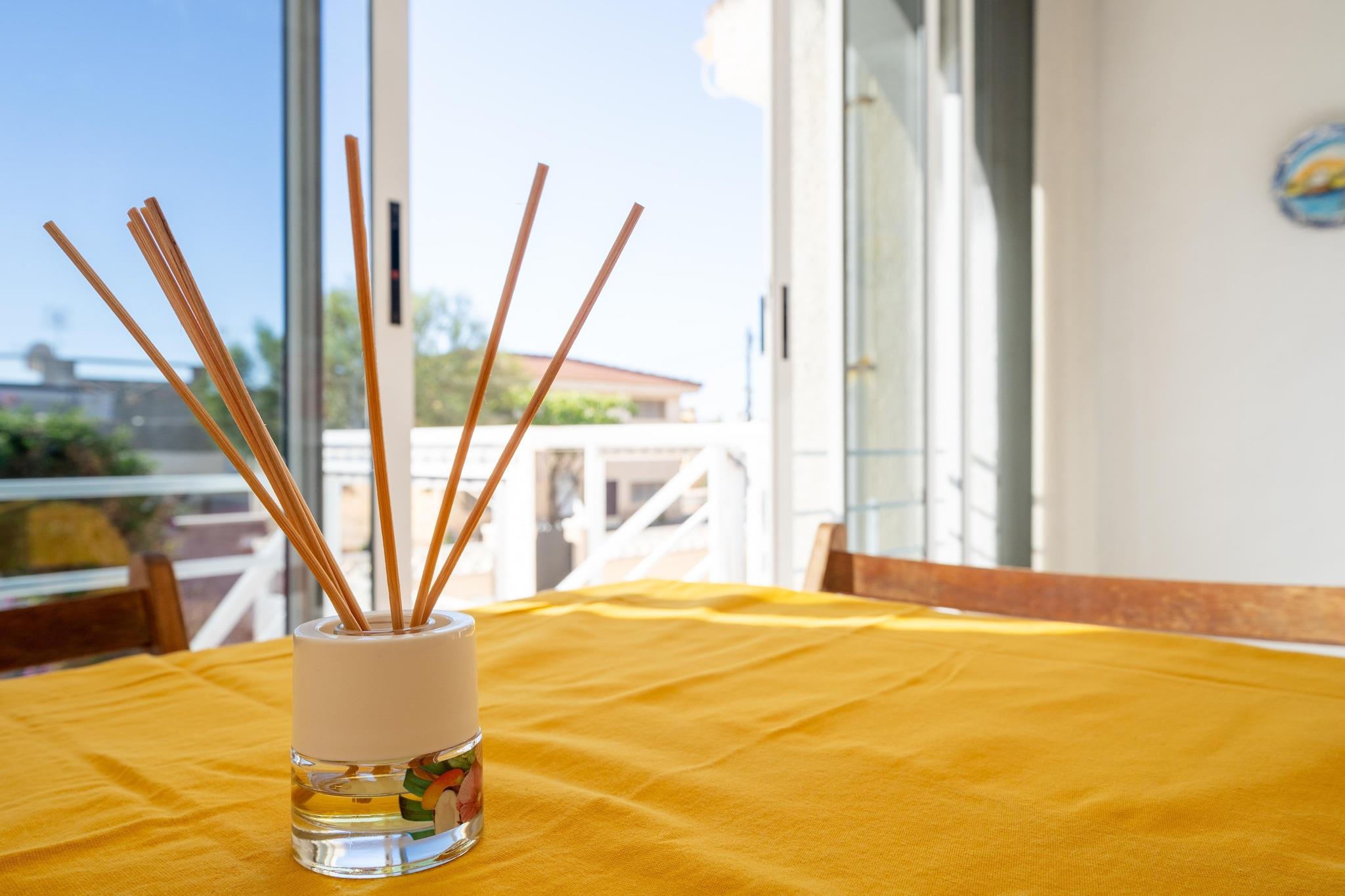 Stueetage: (åbent køkken(elkedel, brødrister, komfur(gas), emhætte, kaffemaskine, ovn, mikrobølgeovn, køleskab, fryser), stue / spisestue(Fjernsyn(fladskærm, digital), spisebord(2 personer), sofahjørne, varme(gennem aircondition), klimaanlæg), soveværelse(dobbeltseng), badeværelse(badekar med bruser, håndvask, toilet), pulterkammer(vaskemaskine)) terrasse(privat), have, havemøbler(2 personer), parkering