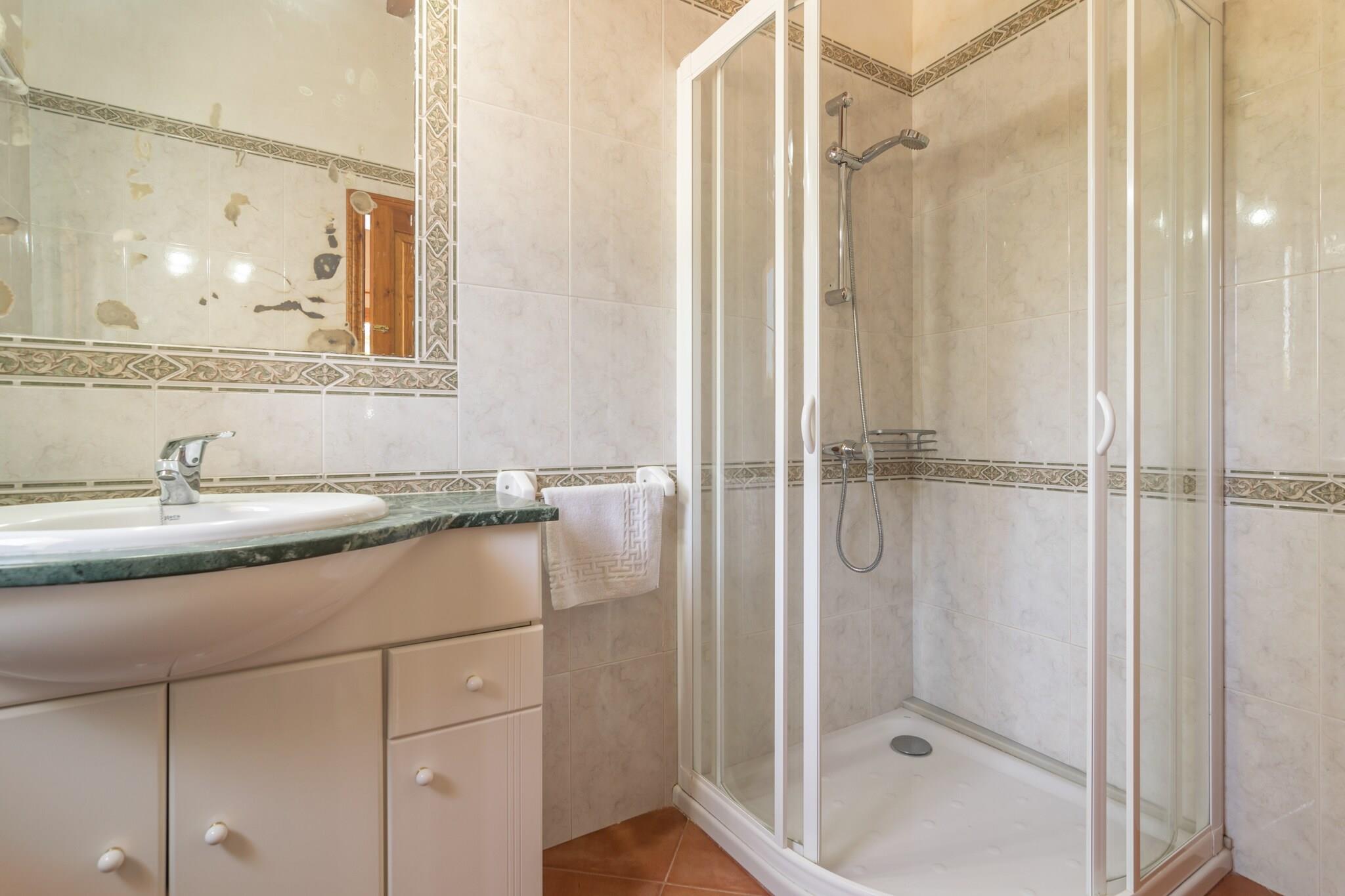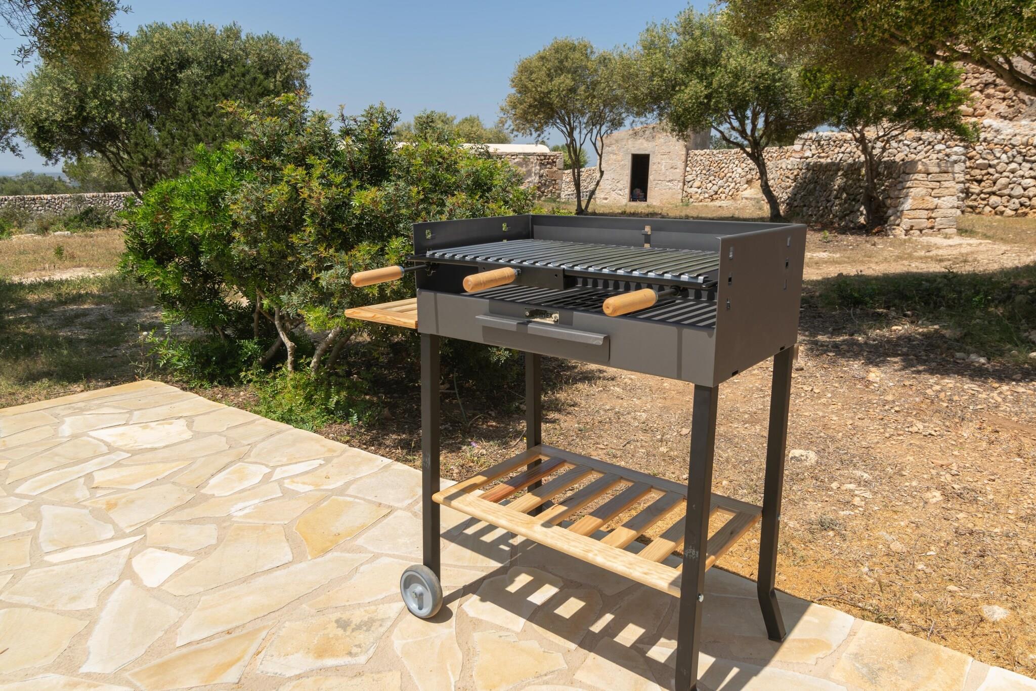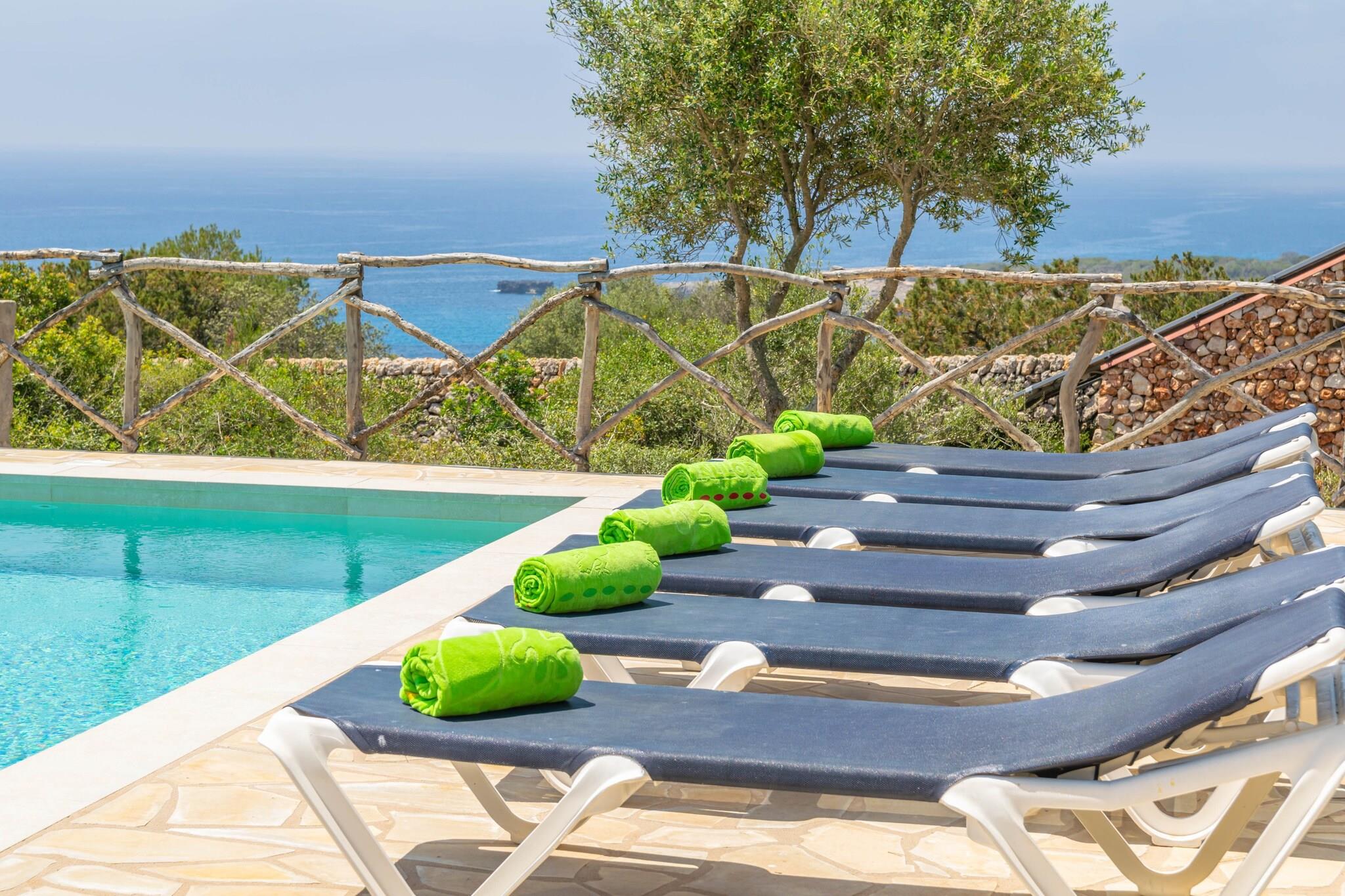 Denne fredfyldte villa tilbyder en rolig flugt med en fantastisk terrasse med havudsigt og en privat saltvandspool (10x4,5 m, dybde 0,6-1,8 m). Omgivet af liggestole og beliggende nær et historisk vagttårn, sikrer den indhegnede ejendom fuldstændig privatliv og afslapning i hjertet af Menorcas naturlige skønhed. Indenfor har det hyggelige hjem en indbydende stue/spisestue med tv og et fuldt udstyret selvstændigt køkken. En vaskemaskine, strygejern og strygebræt tilføjer bekvemmelighed. Villaen indeholder tre soveværelser - en dobbeltseng, en tvilling og en enkelt - alle med ventilatorer. To badeværelser (et med badekar, et med bruser) tjener gæsterne komfortabelt. Babyudstyr såsom en barneseng og højstol er tilgængelige efter anmodning. Villaen ligger i et roligt område nær Ciutadella, tæt på krystalklare bugter og naturskønne vandrestier. Udforsk den charmerende gamle bydel, nyd det lokale køkken, eller besøg nærliggende strande som Cala en Turqueta. Kæledyr og arrangementer er ikke tilladt. Udvendig parkering til tre biler er tilgængelig. Turistskat og eventuelle gebyrer kan være gældende.