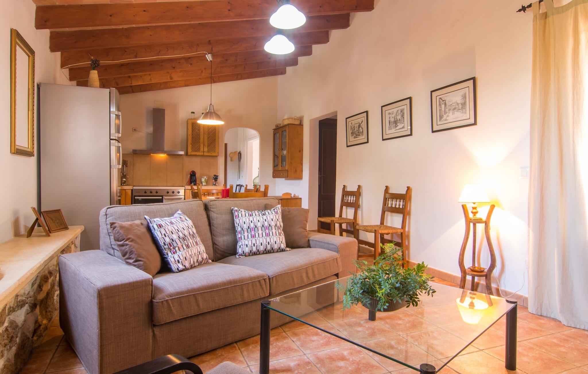 Villaen "Clonenell" er over 100 år gammel og er blevet omhyggeligt og nænsomt renoveret af sine venlige ejere og givet den sit moderne udseende. Den sydvendte villa byder på en solbeskinnet terrasse og et let forhøjet poolområde. Nyd de typiske træk ved et mallorcansk landsted i en smuk beliggenhed, der byder på mange muligheder for vandreture og stadig er præget af landbrug. Vores luftfotos viser perfekt den smukke, rolige beliggenhed. Med grønne omgivelser så langt øjet rækker og havet lige tæt nok på til at dufte dens duft, kan I uforstyrret nyde det milde middelhavsklima. Efter en dukkert i poolen med børnevenlig trappeadgang kan I solbade på den omkringliggende terrasse med komfortable liggestole. Den solrige plads mellem verandaen og poolen er ideel til at spille brætspil - bliver det for varmt, kan I blot flytte bordet med dets lette aluminiumsstole ind i skyggen af ??det store træ i haven. I kan også sætte et bordtennisbord op i gården for at spille en afslappet turnering med børnene. Under verandaen er der en spiseplads med smarte kurvestole og et rundt bord. Herfra kan I komme ind i det indbydende hus. Det kompakte rumlayout er perfekt til en glad familieferie. Den åbne opholds- og spiseafdeling er omdrejningspunktet for det nænsomt renoverede hus, som har fantastisk bevarede spor fra sin fortid. Den hyggeligt indrettede opholdsstue har pejs, som giver hele rummet en dejlig atmosfære. En murstensbænk beklædt med murbrokker inviterer til afslapning og strækker sig til spisebordet foran det åbne køkken, som er fuldt udstyret med opvaskemaskine, stort rustfrit stål køleskab med fryserum og meget mere. Området bliver et fantastisk multifunktionelt rum for hele familien, hvor de sammen kan lave mad, lege, læse eller se tv. Ved siden af ??ligger en rustik bondegård med adskillige nostalgiske memorabilia, der minder om bygningens landbrugsfortid. Det familievenlige hus er ideelt for op til fire voksne og to børn. Udover to soveværelser med hver en 1,40 m bred dobbeltseng, er der et børneværelse med en køjeseng, hvor søskende eller venner kan skabe deres eget lille kongerige. De to smarte badeværelser, det ene med badekar, det andet med en trendy bruseniche, bidrager til en afslappende ferie fuld af spændende muligheder. Kystregionen i den østlige del af øen er populær blandt så mange besøgende med god grund. Der er stadig mange uberørte områder fulde af rig og varieret natur, landbrug og bølgende bakker, der skråner ned til havet. På trods af nærheden til naturen har I adgang til fremragende infrastruktur fra villaen. Landsbyer som Canyamel og Capdepera ligger henholdsvis kun omkring 3,8 og 5 km væk. Den nærliggende landevej, som sjældent høres i vinden, fører jer til de omkringliggende landsbyer og kysten på kun en kort køretur. I middelalderbyer som Capdepera og Artà finder I adskillige seværdigheder som et slot med panoramaudsigt eller en imponerende pilgrimskirke. En gåtur gennem de smalle gader og shopping i de små butikker eller på markedet, der finder sted hver tirsdag, er også en vidunderlig måde at fordrive tiden på. Hvis I kan lide golf, ligger Canyamel golfbanen praktisk talt ved siden af. Denne charmerende villa i landstil med sit moderne ydre byder på frodige grønne og venlige omgivelser ved siden af ??poolen og den store terrasse - præcis den form for ro, I ønsker fra jeres ferie. Det er beliggende i et attraktivt landområde mellem Canyamel og Capdepera. Begge byer er ideelle til jeres daglige indkøb og kan nås hurtigt. Det samme gælder de smukke bademuligheder langs østkysten, for eksempel på den fine sandstrand Canyamel eller på den store Cala Agulla i Cala Ratjada.