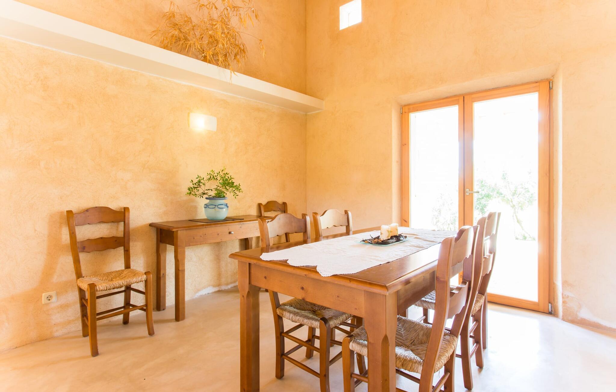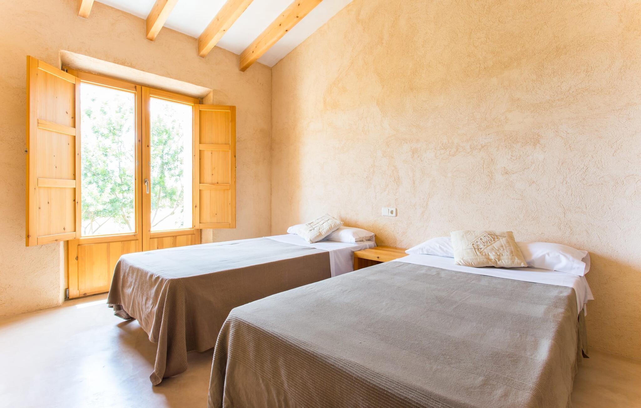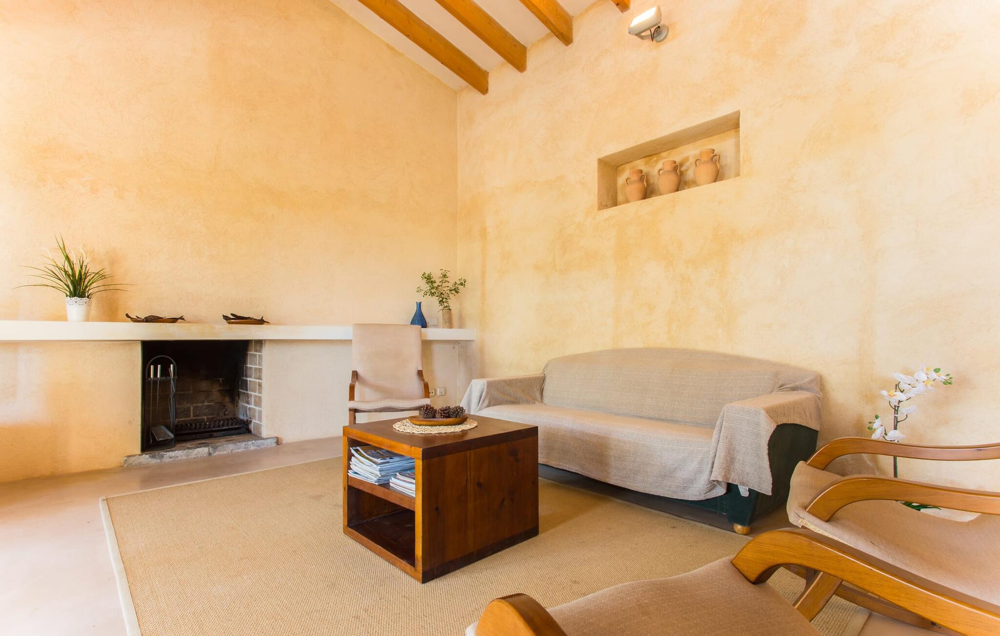 Den moderne villa "Clovetes" er et lille ferieparadis, som vi især anbefaler til alle strandglade feriegæster. Vores luftfotos viser naturhavens oaseagtige karakter med græsplæner omkring terrassearealerne. Talrige palmer, citrustræer og andre middelhavstræer ligger langs poolen og det smukke hus med fortryllende mallorcanske natursten. I kan næsten lugte havet, men I kan helt sikkert mærke den behagelige brise, der gør en privat pool endnu smukkere. Den behageligt proportionerede og malakitfarvede mosaikpool tilbyder en bred trappeindgang og en behagelig dybde for børn. Efter en forfriskende svømmetur kan I slappe af på en af liggestolene på den omkringliggende solterrasse. Der er integreret grillplads på siden med ekstra opbevaringsplads og praktisk vask. Et fortelt strækker sig fra det lille udekøkken til den overdækkede terrasse, hvilket understreger ejendommens maritime karakter. På verandaen, der støder helt op til opholds- og spiseafdelingen, er der altid behagelig skygge med bord og kurvestole, hvor man kan fejre sine grillritualer sammen med venner og familie. Selvom det ydre er i tråd med den klassiske mallorcanske tradition, er husets indre mere gennemsyret af en oplysende følelse af "less is more". Gennem de talrige panoramavinduer vil I opleve et dejligt lyst hus, der er absolut puristisk og moderne. Den varme terracotta-tone på de gipsteksturerede vægge understreger de enkle og klare former. Rummets moderne design harmonerer også med funktionelle områder til ophold, spisning og madlavning. Stuemøblerne er desuden indrettet i bløde jordfarver og giver mulighed for at slappe af foran pejsen, hvilket også sørger for hygge i spisepladsen. Træbordet og -stolene i et landhusdesign står foran køkkenområdet, adskilt af en disk. Den har ikke en designer indbygningsovn, men I finder køkkenskabe i sten med trælåger. Det indeholder dog de teknologiske faciliteter, I vil have, hvis I vælger en ferie med selvforplejning. De hyggelige soveværelser, hvor en god nats søvn ikke bare er et ønske, er indrettet i samme stil og er trods deres lidt industrielle charme stadig behageligt hyggelige takket være brugen af naturligt træ til døre og vinduer. Det store soveværelse har en dobbeltseng og de to andre soveværelser har hver to separate sovepladser. To trendy badeværelser - et med bruser og et med badekar - sikrer en behagelig "ferie", uanset hvilken konfiguration I vælger at tilbringe jeres ferie på Mallorca i. Den indbydende "Clovetes" kombinerer helt klart charmen ved en landlig villa med den attraktive kystlinje, da stranden i Cala Bona kun ligger 1500 m væk og kan nås til fods. Stranden er særlig familievenlig, da den tilbyder en lavvandet indgang til havet. Byen har en lille sportshavn, en promenade med talrige butikker og attraktive spisemuligheder. Det er derfor, folk kan lide at tage dertil om aftenen for at få en drink og nyde udsigten over havet. Generelt er dette område godt til vandreture, men vandsport som dykning og fiskeri er også populært her. Andre kystbyer som Cala Millor, Cala Ratjada eller Portocristo mod syd kan også nås hurtigt. Det gælder også de andre små byer på øen, Son Servera eller middelalderkunsten Artà, for blot at nævne nogle få. Der er mere end nok til variation og afslapning i jeres private perle "Clovetes". Villaen "Clovetes" i minimalistisk, puristisk design ligger i landlige omgivelser på en ejendom med talrige palmer og andre middelhavstræer. På trods af den rolige beliggenhed er det kun 5 minutter væk fra Cala Bona og Cala Millor. Der er en boulevard under palmer med et par restauranter, cocktailbarer og butikker, der inviterer jer til at slentre uden stress. Cala Bona-stranden blev endda tildelt det blå flag for sin fremragende vandkvalitet.