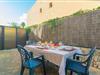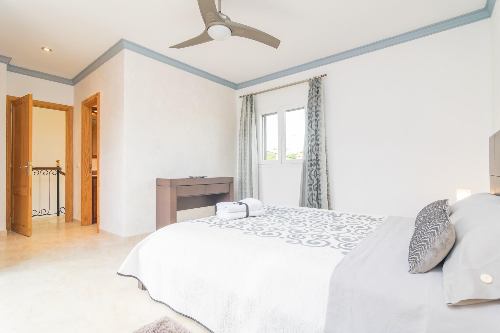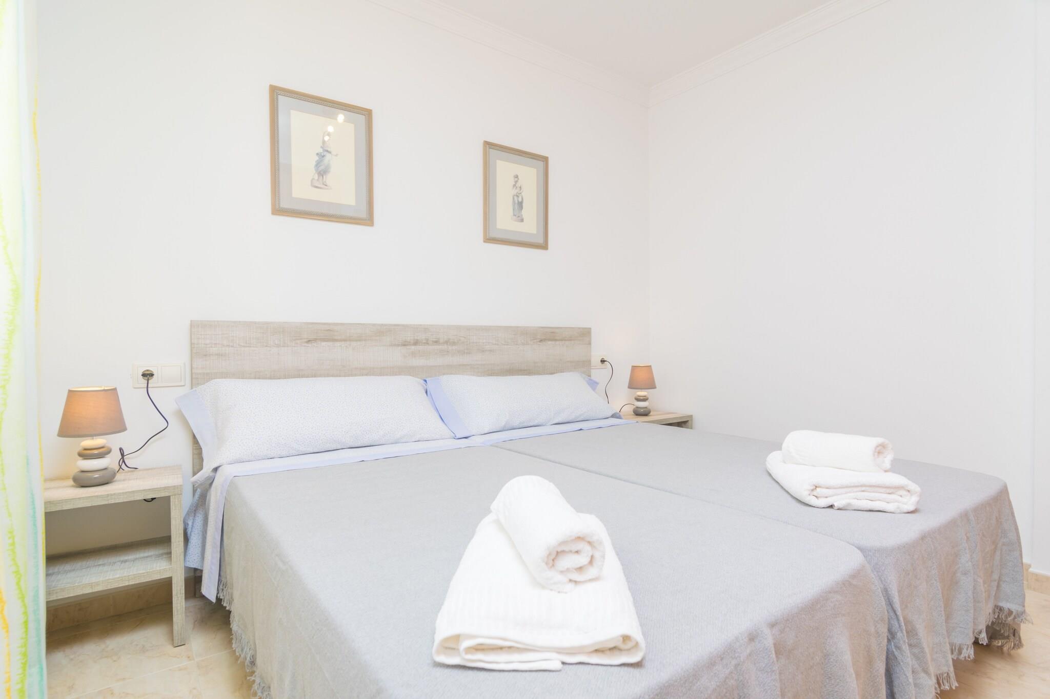 Dette charmerende rækkehus i tre etager er ideel til en afslappet kystferie. Nyd to private terrasser - en foran og en hyggelig på bagsiden - perfekt til morgenmad, afslappet læsning eller udendørs spisning. Efter en kort gåtur til den nærliggende strand kan du skylle af i den udendørs bruser, før du sætter dig til rette for aftenen. Den indhegnede ejendom sikrer ekstra privatliv og komfort. Indenfor byder stueetagen dig velkommen med en lys stue/spisestue med aircondition og et tv samt et veludstyret køkken med gaskomfur, ovn, mikroovn og spisebord. Et gæstetoilet fuldender dette niveau. På første sal er der tre soveværelser - to med to enkeltsenge (et med ventilator, et med aircondition) og et med dobbeltseng og aircondition - plus et badeværelse med bruser. Den øverste etage rummer et fjerde soveværelse med en dobbeltseng, ventilator, en-suite badeværelse med badekar og adgang til en privat terrasse. Alle værelser har garderobeskabe. En barneseng og høj stol er til rådighed, og vaskerummet inkluderer en vaskemaskine, strygejern og strygebræt. Beliggende i Colònia de Sant Jordi vil du være tæt på restauranter, butikker og smukke strande som Es Port og Es Trenc. Nyd aftenture ved havnen eller en sejltur til Cabrera.