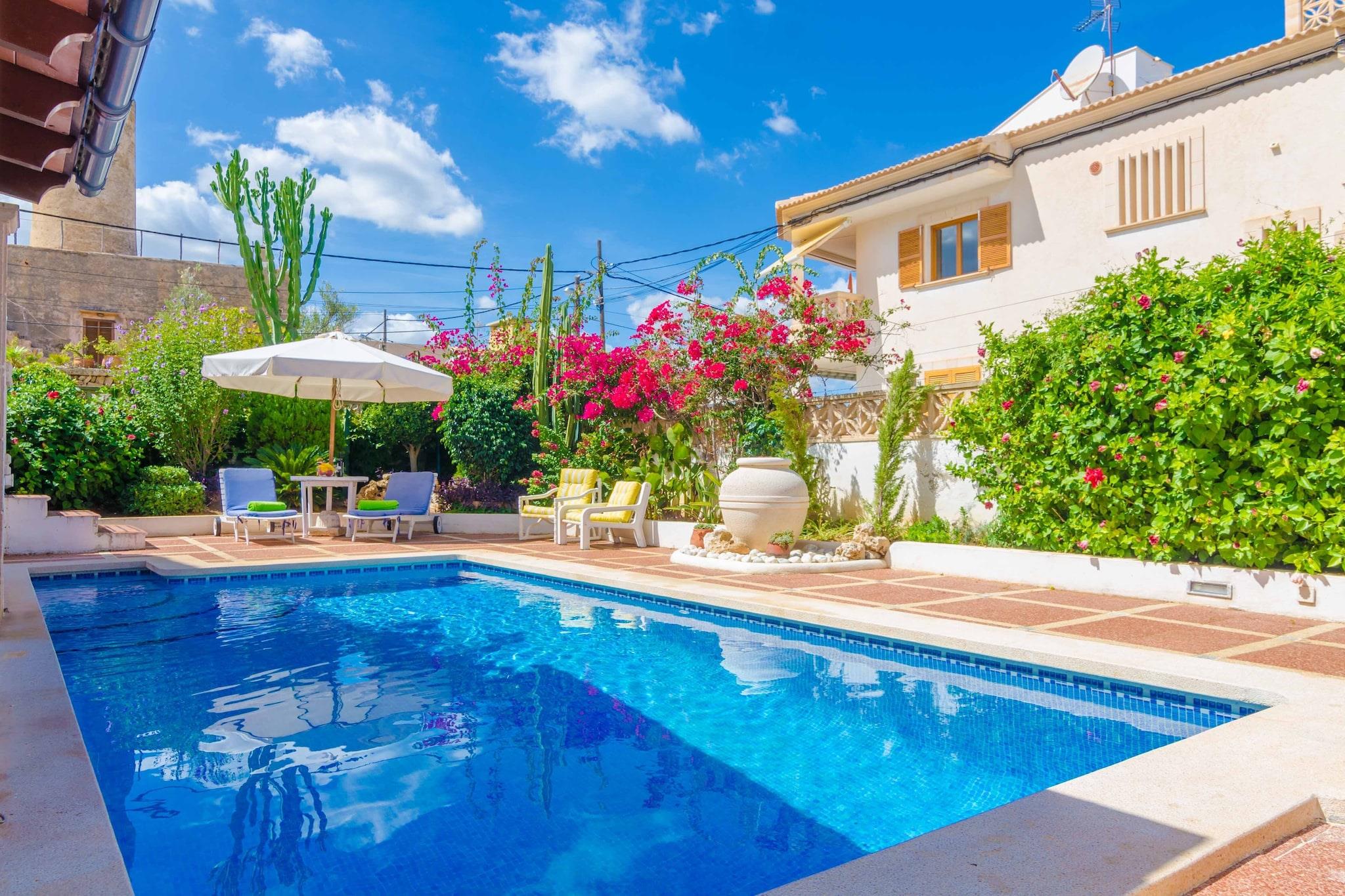 Denne villa i middelhavsstil inviterer familier og grupper til at slappe af med komfort og lethed. Det rummelige layout inkluderer fem soveværelser på to etager, suppleret med en privat saltvandspool, hvor alle kan køle af under solen. En skyggefuld veranda med grill og udendørs spiseplads gør al fresco-måltider til et højdepunkt, mens en indhegnet have, liggestole og et bordtennisbord tilbyder masser af måder at nyde udendørslivet på. Indenfor sikrer to opholdsrum, et fuldt udstyret køkken og gennemtænkte detaljer såsom satellit-tv, aircondition og vaskefaciliteter et behageligt ophold. Beliggende i den rolige landsby Colònia de Sant Pere tilbyder boligen charmen af ??en traditionel mallorcansk kystby uden folkemængderne. Inden for gåafstand finder du en sandstrand, lystbådehavnen og et lokalt supermarked med det vigtigste. Naturskønne bugter såsom Cala Na Clara er kun en kort køretur væk, og inviterer dig til at opdage krystalklart vand og rolige kyster. For familier er der babyudstyr, herunder en barneseng og høj stol, hvilket gør villaen til et nemt valg for længere ophold. Området byder på en blanding af afslappet spisning og kulturel opdagelse. Inden for 500 meter kan du nyde frisk fisk og skaldyr på Es Mollet eller gå ind til byen for at få flere lokale restauranter. En kort køretur fører til Son Serra de Marina, kendt for sin brede sandstrand og spisesteder ved havet, der serverer daglig fangst. For et kulturelt præg, besøg det ugentlige marked i Artà eller udforsk Betlems eremitage.