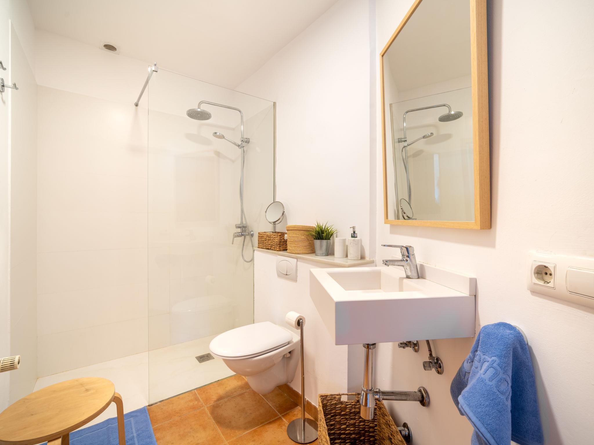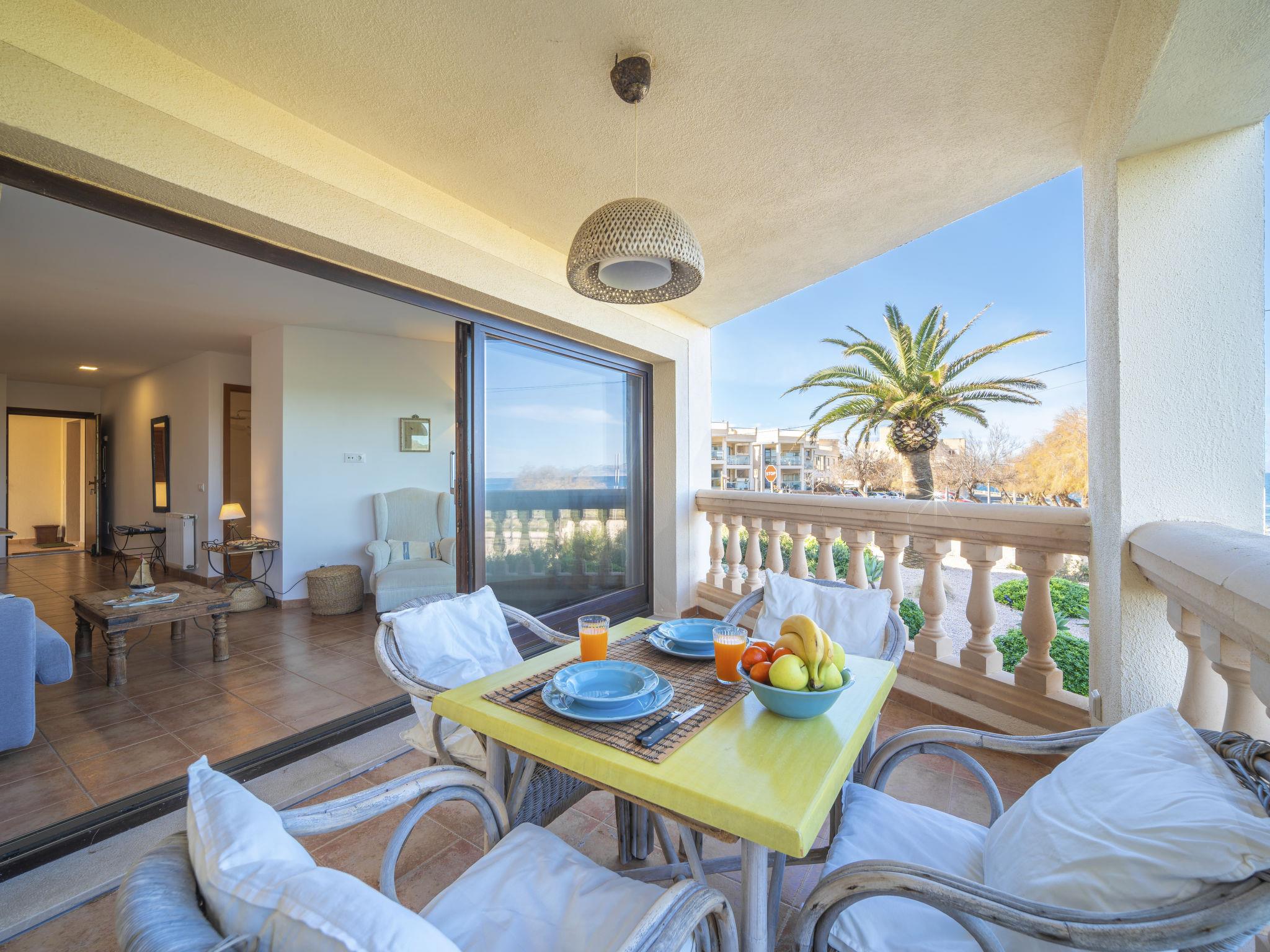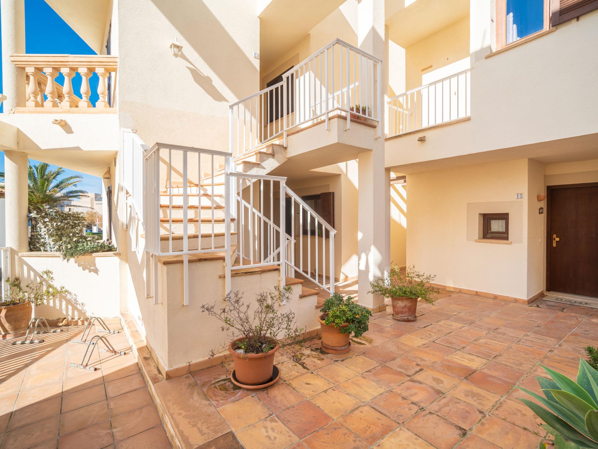Beautiful, simple apartment block "Vista Mar i Muntanya". In the resort Colònia de Sant Pere, in a quiet, sunny position residential area (villas), 25 m from the sea, 150 m from the beach, road to cross, direct access to the beach. Private: garden furniture. In the house: internet access, WiFi, air conditioning, washing machine. Parking, communal covered parking space n 14. Shop 300 m, supermarket, restaurant 200 m, bar 190 m, bakery 230 m, 3 minute walk to the centre, bus stop "Plaça Bassa d'en Fasol. Colonia." 2 km, sandy beach "Colonia de San Pedro" 350 m, swimming bay 25 m. Sports harbour 180 m, golf course (18 hole) 18 km, sailing school 210 m, riding stable 1.2 km, walking paths from the house 300 m, cycle lane 150 m. Nearby attractions: Son Serra de Marina 10 km, Betlem 1.7 km, Can Picafort 21 km, Artá 13 km, Cala Ratjada 24 km, Capdepera 20.9 km. Hiking paths: Ermita de Betlem 4.5 km, Parc Natural de Llevant, Finca Son Real. Please note: car recommended. Suitable for families. The owner does not accept any youth groups. Airfield 73 km from the property.