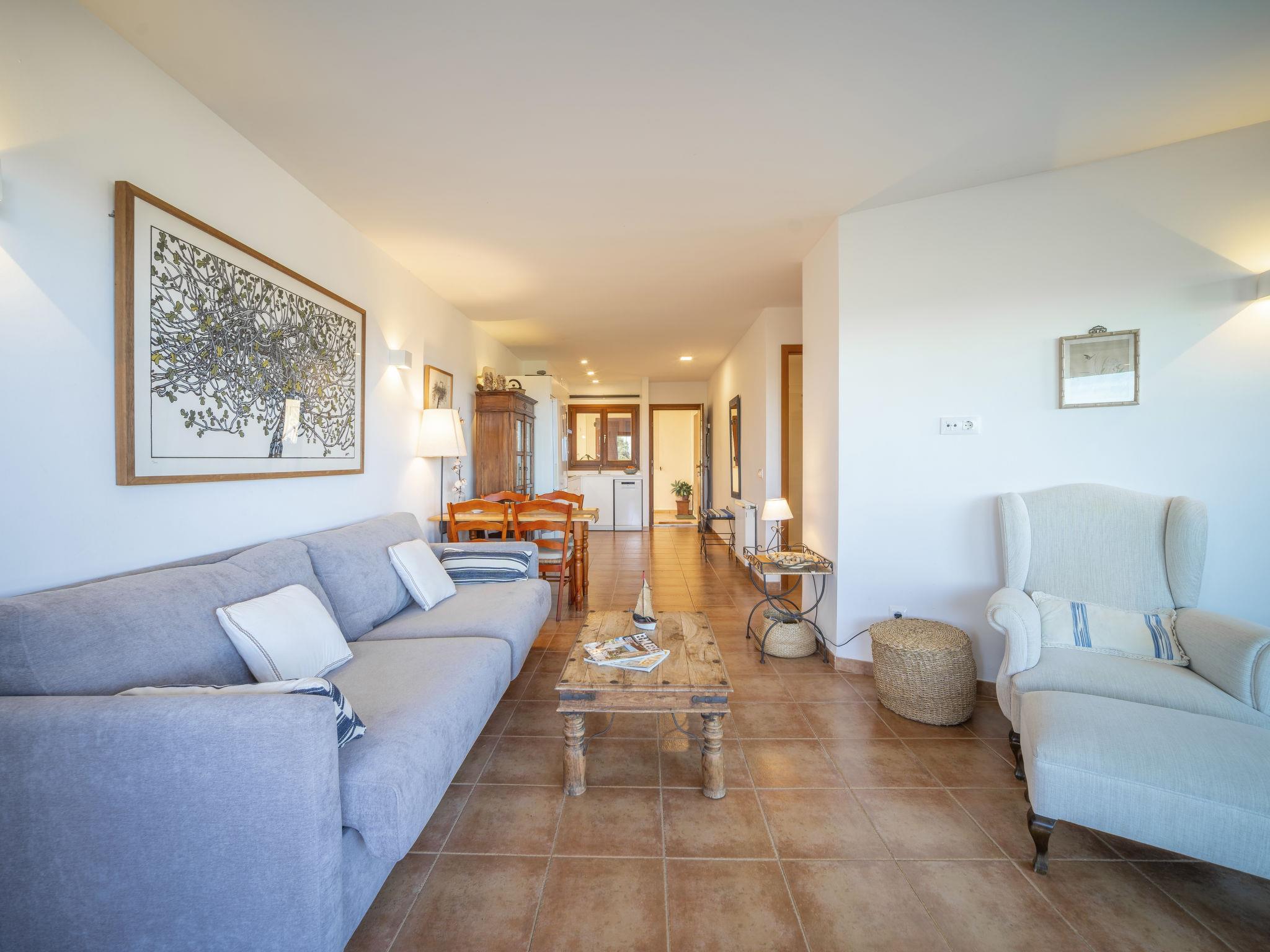 "Vista Mar i Muntanya", 2-room apartment 86 m2. Object suitable for 2 adults. Bright, comfortable and cosy furnishings: living/dining room with 1 sofabed (150 cm, length 190 cm), dining table, kitchen corner, shower/WC, satellite TV and paraffin heater. Exit to the balcony. 1 double bedroom with 1 french bed (1 x 150 cm, length 190 cm), air conditioning. Natural stone floors. Terrace furniture. Panoramic view of the sea. Facilities: washing machine, iron, children's high chair, baby cot for up to 2 year olds, hair dryer. Internet (WiFi, free). Parking space n 14 (roofed, 1 car). Suitable for families. ETVPL/15635 // Reg. Nr.: ESFCTU00000702300031233400000000000000000ETVPL/156354