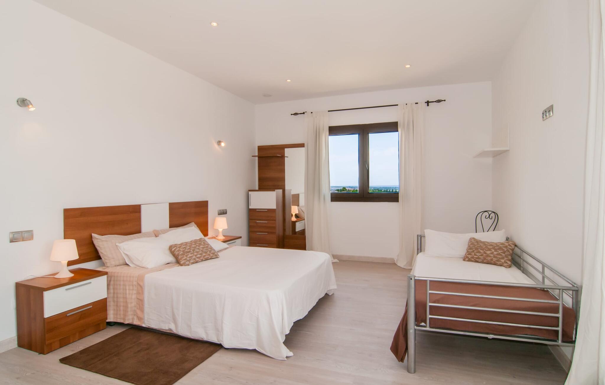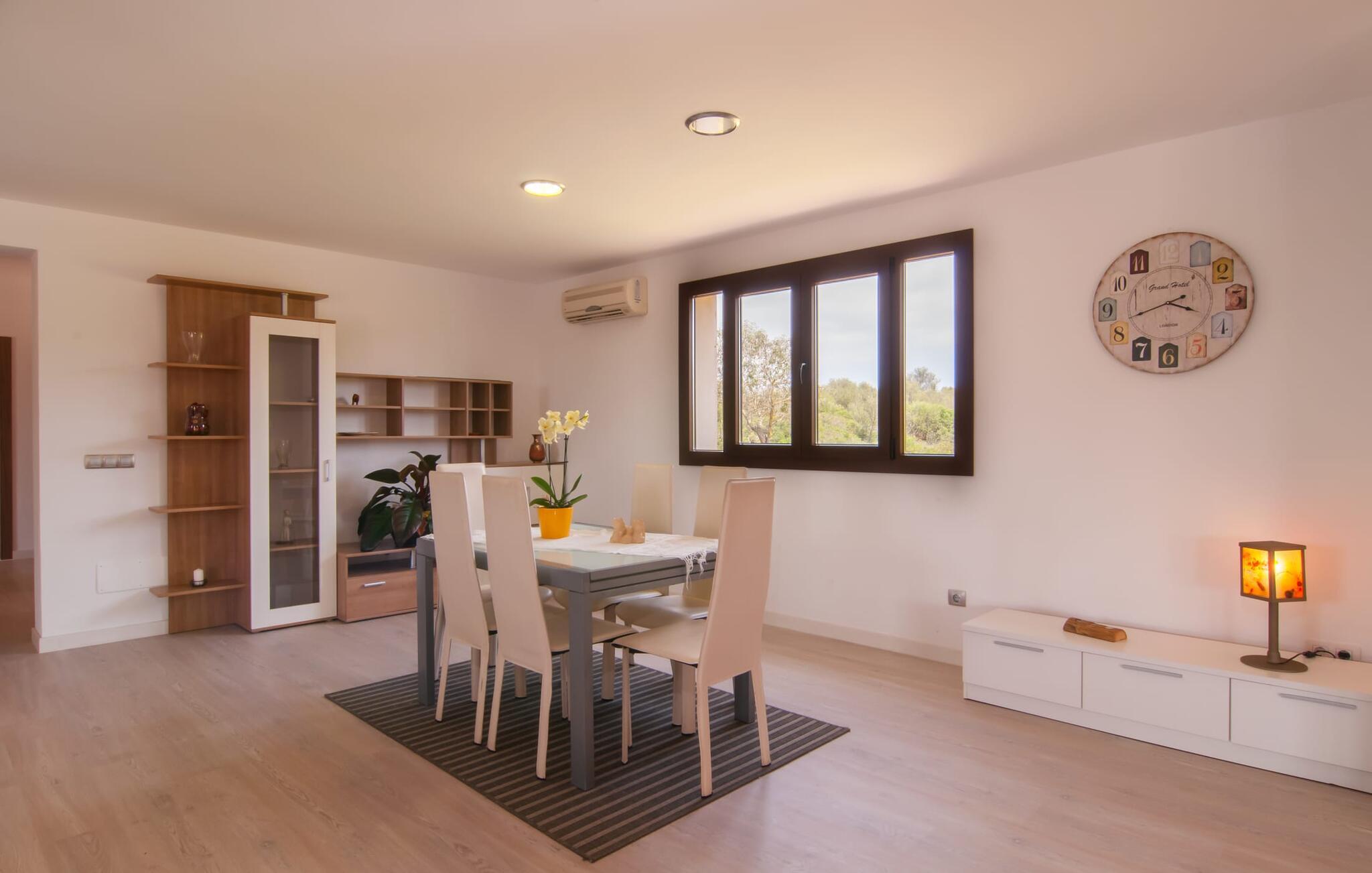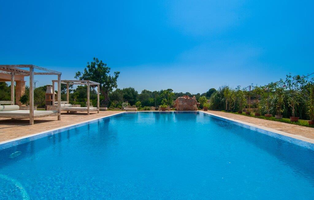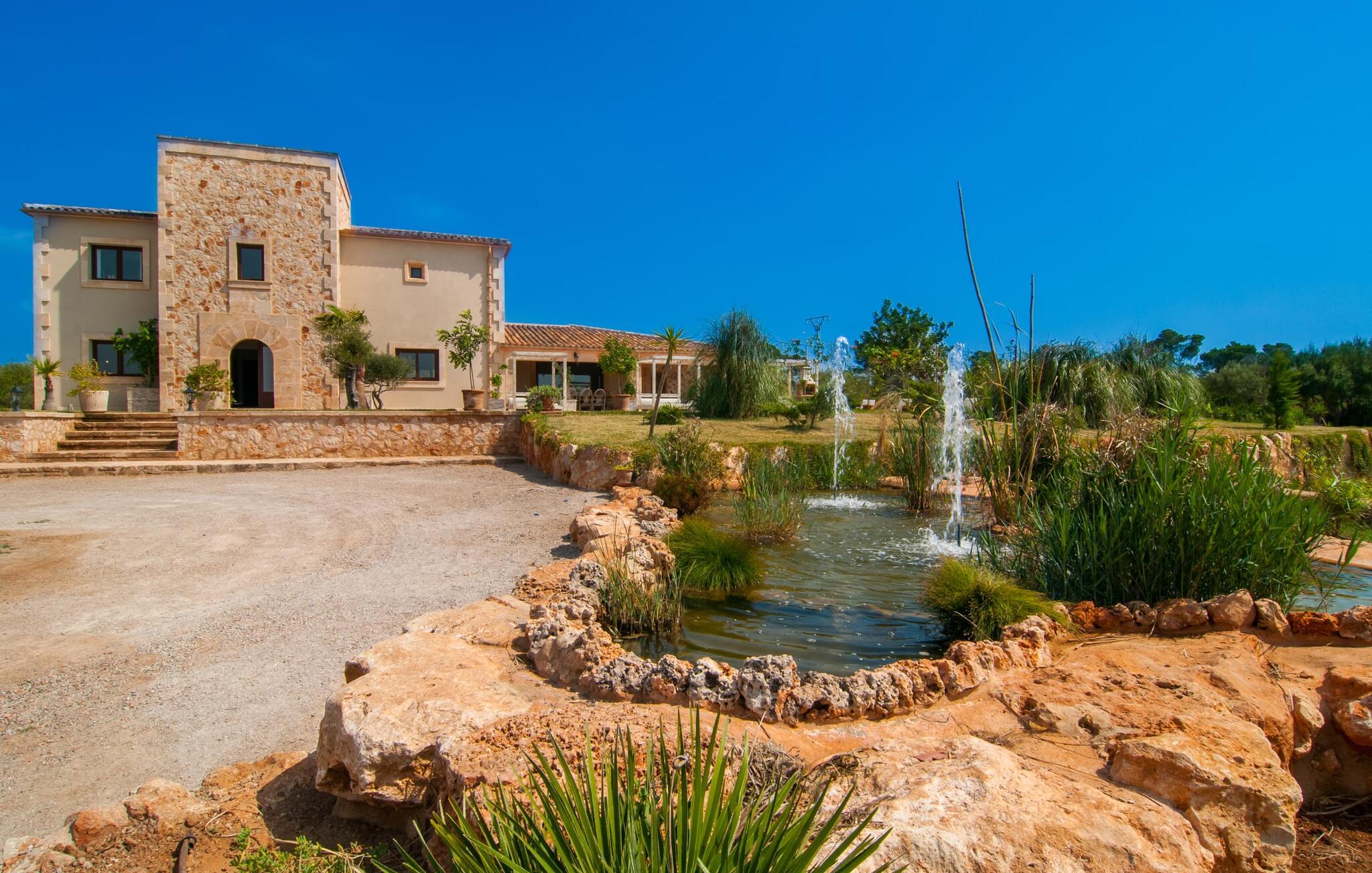 Denne unikke, store villa på parklignende grund er nem at nå. Enhver, der tilbringer deres ferie her, vil bestemt ikke gå glip af faciliteter. Den førsteklasses forbindelse via motorvejen kombineret med de ellers vidunderlige landlige omgivelser forsøder ferieoplevelsen med den ukomplicerede ankomst. Haven kan beskrives som en park og byder på det perfekte sted at slappe af midt i den grønne oase under jeres ophold. En lille sti omkranset af en smuk græsplæne fører til det statelige indgangsparti med den vidunderligt byggede buegang. Til højre er den glitrende pool, omgivet af palmer og den storslåede solterrasse, komplet med rigtig hyggelige himmelsengslignende daybeds lavet af rustikt, hvidkalket træ. Her kan vi lade det nøje udvalgte havedesign og det veludstyrede wellnessområde tale for sig selv. Moderne design møder den moderne version af middelhavsregionens typiske rustikke stil. Lige ved siden af solterrassen er der et overdækket og derfor skyggefuldt spise- og afslapningsområde. Langbordet er perfekt til morgenmad sammen; I kan nyde dagens første kaffe på en af de skønne bambusstole. Et andet solrigt sted er højt oppe på den lille tagterrasse, som er tilgængelig fra soveværelset. Det er nok det bedste sted at tilbringe aftentimerne sammen under stjernerne. Inde i villaen fortsætter harmonien af bløde farver, klare former og klassiske elementer. Efter at have krydset en lille gang skinner det åbne opholds- og spiseområde i enkel elegance og har et topmoderne køkken som et højdepunkt. Madlavning er garanteret en himmelsk fornøjelse. Når køkkenet er erobret, kan I feste og nyde som I vil i de to vidunderligt møblerede spisepladser. Stuen, indrettet i varme farver, er klar til lange hyggelige aftener. Om I nyder livlige samtaler over en god flaske vin eller bare en fælles filmoplevelse er op til jer! Soveværelserne, som er placeret i stueetagen og første sal, lader heller intet tilbage at ønske. De gode senge inviterer jer til at sove og slappe af, indtil I bliver vækket af solens stråler næste morgen. De individuelt designede en-suite badeværelser er ægte templer af skønhed og imponerer med deres udsøgte møbler og originale smag. Fra farverige mosaikker til lige, mørke fliser – variation er mottoet her. Nu skal I bare beslutte jer, og wellness-programmet kan begynde. Hvad mere har I brug for for at være glad? Den landlige beliggenhed parret med de fremragende forbindelser og nærhed til havet gør villaen "Colonia Es Trenc" til den perfekte feriedestination. Ejendommen er beliggende direkte på den let hørbare Ma-6040 motorvej, som hurtigt bringer jer til den smukke kystby Colònia Sant Jordi (en tidligere fiskerby med typisk mallorcinsk charme). Der er mange restauranter, barer og caféer på havnepromenaden og i byen er der alt hvad I behøver, lige fra supermarkeder til banker og apoteker. At besøge det ugentlige marked er et must for alle, der ønsker at fordybe sig i det typiske mallorcanske liv, og en gåtur gennem byen er bestemt det værd. Der er bogstaveligt talt lige så mange bademuligheder, som der er sand på stranden. I bil kan I nå de fineste sandstrande i de smukkeste omgivelser på få minutter. Den absolut højkvalitets og smukt indrettede villa "Colonia Es Trenc" ligger i den smukke sydlige del af De Baleariske Øer, nær Campos kommune. Beliggenheden scorer point med sine fremragende forbindelser og det landlige miljø, der omgiver den parklignende ejendom. Køreturen til den næste by, Colònia Sant Jordi, er kun omkring 4 km, og det nærmeste supermarked ligger 3 km væk. De nærmeste strande som "Platja es Trenc" eller "Can Curt" ligger kun omkring 3 km væk. Bemærk venligst, at denne ejendom ikke accepterer ungdomsgrupper eller polterabender. En ungdomsgruppe på denne ejendom består af personer på 25 år eller derunder. Book ikke denne ejendom, hvis I er en ungdomsgruppe eller en polterabendgruppe, da jeres reservation vil blive afvist, når den er booket, hvilket også kan være tilfældet ved ankomst til ejendommen eller under jeres ophold, og I vil ikke modtage en refusion.