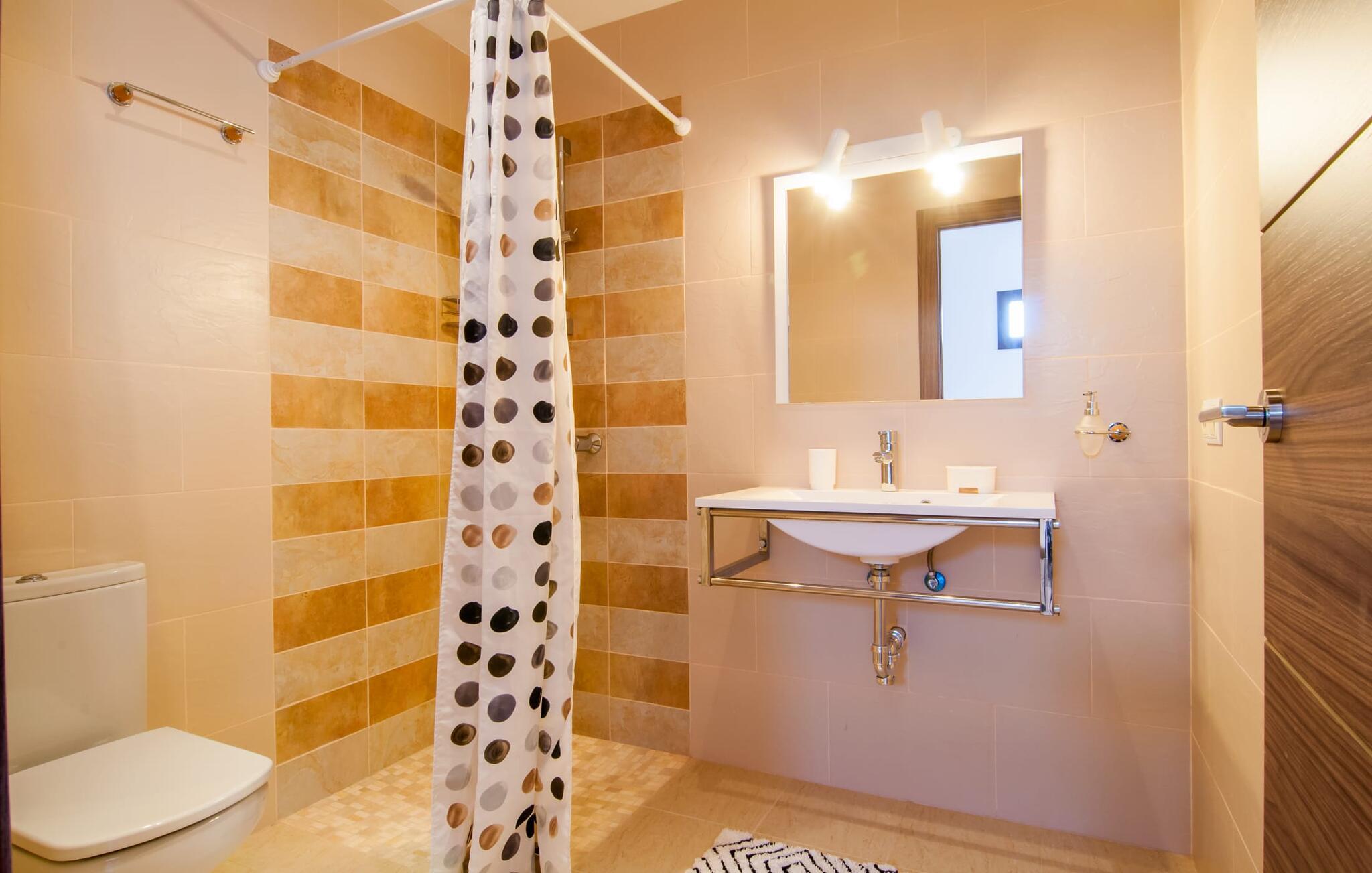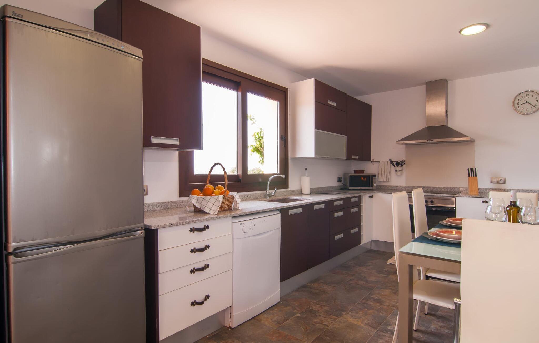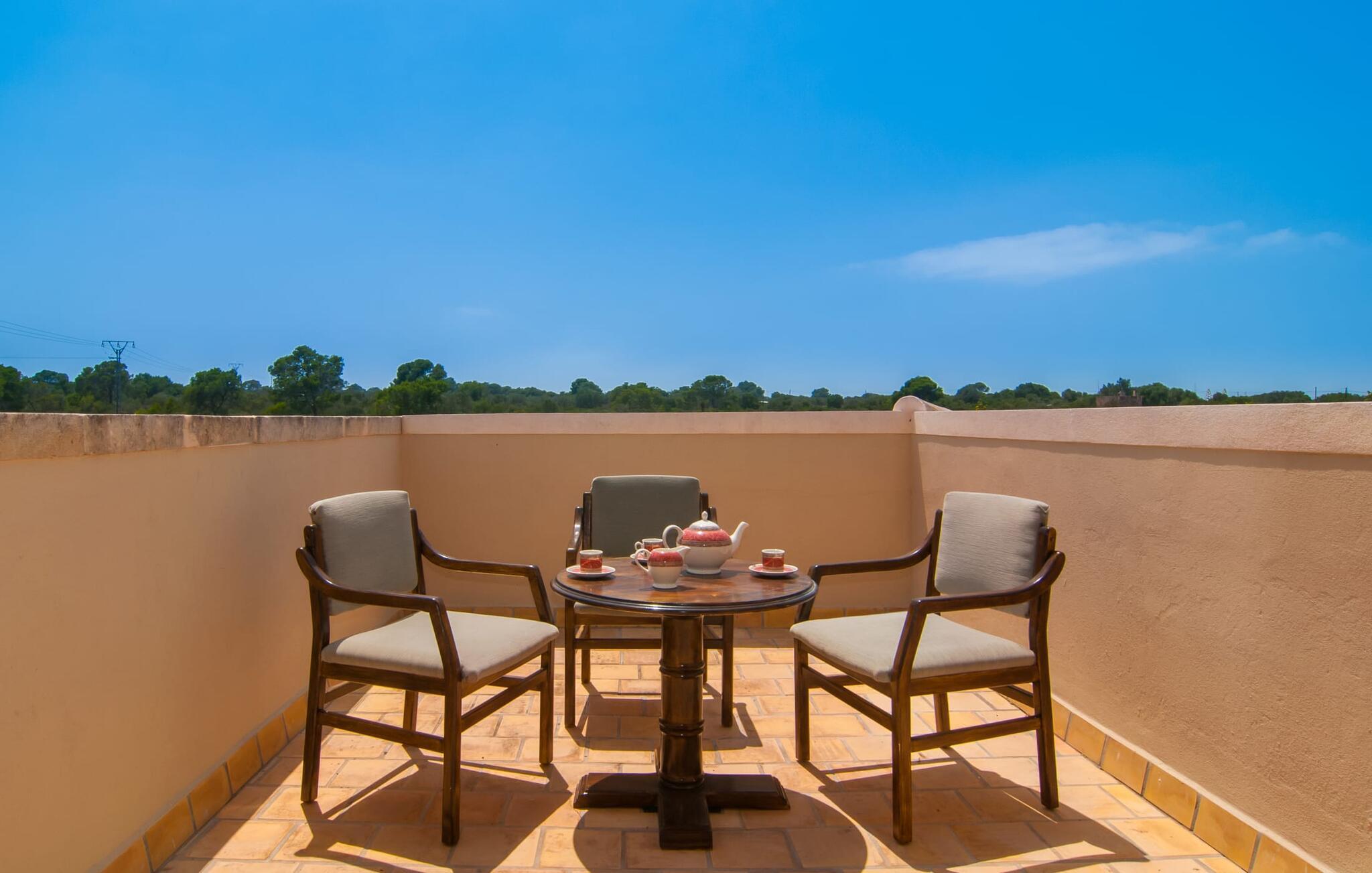 Denne unikke, store villa på parklignende grund er nem at nå. Enhver, der tilbringer deres ferie her, vil bestemt ikke gå glip af faciliteter. Den førsteklasses forbindelse via motorvejen kombineret med de ellers vidunderlige landlige omgivelser forsøder ferieoplevelsen med den ukomplicerede ankomst. Haven kan beskrives som en park og byder på det perfekte sted at slappe af midt i den grønne oase under jeres ophold. En lille sti omkranset af en smuk græsplæne fører til det statelige indgangsparti med den vidunderligt byggede buegang. Til højre er den glitrende pool, omgivet af palmer og den storslåede solterrasse, komplet med rigtig hyggelige himmelsengslignende daybeds lavet af rustikt, hvidkalket træ. Her kan vi lade det nøje udvalgte havedesign og det veludstyrede wellnessområde tale for sig selv. Moderne design møder den moderne version af middelhavsregionens typiske rustikke stil. Lige ved siden af solterrassen er der et overdækket og derfor skyggefuldt spise- og afslapningsområde. Langbordet er perfekt til morgenmad sammen; I kan nyde dagens første kaffe på en af de skønne bambusstole. Et andet solrigt sted er højt oppe på den lille tagterrasse, som er tilgængelig fra soveværelset. Det er nok det bedste sted at tilbringe aftentimerne sammen under stjernerne. Inde i villaen fortsætter harmonien af bløde farver, klare former og klassiske elementer. Efter at have krydset en lille gang skinner det åbne opholds- og spiseområde i enkel elegance og har et topmoderne køkken som et højdepunkt. Madlavning er garanteret en himmelsk fornøjelse. Når køkkenet er erobret, kan I feste og nyde som I vil i de to vidunderligt møblerede spisepladser. Stuen, indrettet i varme farver, er klar til lange hyggelige aftener. Om I nyder livlige samtaler over en god flaske vin eller bare en fælles filmoplevelse er op til jer! Soveværelserne, som er placeret i stueetagen og første sal, lader heller intet tilbage at ønske. De gode senge inviterer jer til at sove og slappe af, indtil I bliver vækket af solens stråler næste morgen. De individuelt designede en-suite badeværelser er ægte templer af skønhed og imponerer med deres udsøgte møbler og originale smag. Fra farverige mosaikker til lige, mørke fliser – variation er mottoet her. Nu skal I bare beslutte jer, og wellness-programmet kan begynde. Hvad mere har I brug for for at være glad? Den landlige beliggenhed parret med de fremragende forbindelser og nærhed til havet gør villaen "Colonia Es Trenc" til den perfekte feriedestination. Ejendommen er beliggende direkte på den let hørbare Ma-6040 motorvej, som hurtigt bringer jer til den smukke kystby Colònia Sant Jordi (en tidligere fiskerby med typisk mallorcinsk charme). Der er mange restauranter, barer og caféer på havnepromenaden og i byen er der alt hvad I behøver, lige fra supermarkeder til banker og apoteker. At besøge det ugentlige marked er et must for alle, der ønsker at fordybe sig i det typiske mallorcanske liv, og en gåtur gennem byen er bestemt det værd. Der er bogstaveligt talt lige så mange bademuligheder, som der er sand på stranden. I bil kan I nå de fineste sandstrande i de smukkeste omgivelser på få minutter. Den absolut højkvalitets og smukt indrettede villa "Colonia Es Trenc" ligger i den smukke sydlige del af De Baleariske Øer, nær Campos kommune. Beliggenheden scorer point med sine fremragende forbindelser og det landlige miljø, der omgiver den parklignende ejendom. Køreturen til den næste by, Colònia Sant Jordi, er kun omkring 4 km, og det nærmeste supermarked ligger 3 km væk. De nærmeste strande som "Platja es Trenc" eller "Can Curt" ligger kun omkring 3 km væk. Bemærk venligst, at denne ejendom ikke accepterer ungdomsgrupper eller polterabender. En ungdomsgruppe på denne ejendom består af personer på 25 år eller derunder. Book ikke denne ejendom, hvis I er en ungdomsgruppe eller en polterabendgruppe, da jeres reservation vil blive afvist, når den er booket, hvilket også kan være tilfældet ved ankomst til ejendommen eller under jeres ophold, og I vil ikke modtage en refusion.