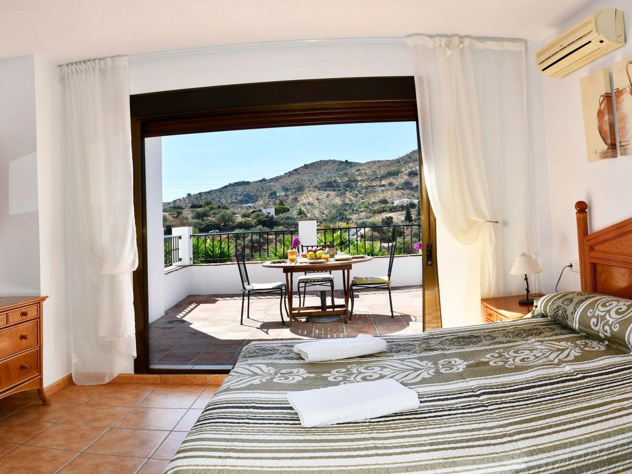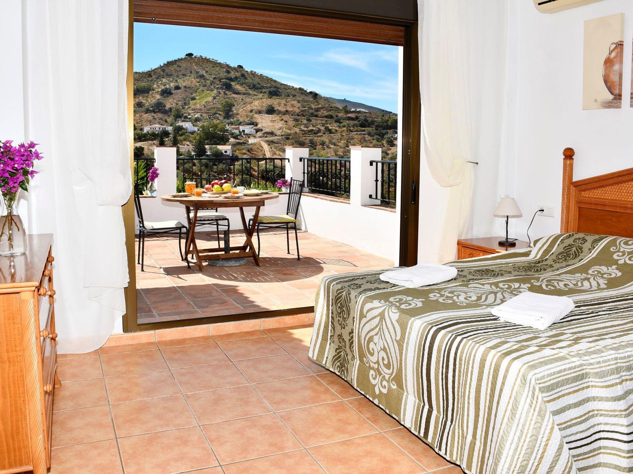 Superbe villa, piscine chauffée, 8 couchages, à pied du bar! Si vous prévoyez de travailler depuis cette villa, le wifi est excellent, mais nous pouvons également obtenir une vitesse supplémentaire pour un petit coût supplémentaire. Il suffit de demander! Propriété clôturée, idéale pour votre animal de compagnie! NOUVEAU FORFAIT WIFI INSTALLÉ! Belle villa avec piscine privée chauffée,4 chambres avec lits pour jusqu'for 8 people. 2 bathrooms, living room, fully equipped independent kitchen. At'extérieur, la villa bénéficie d'a beautiful kidney-shaped swimming pool that can be heated in spring and at'automne moyennant un supplément. Veuillez vous renseigner pour les détails. La piscine est entourée de belles terrasses et de jardins colorés. La propriété dispose du wifi, de nombreux parkings et d'a barbecue. The villa is a few minutes walk from 2 excellent bars/restaurants and 30 minutes walk (an absolutely beautiful walk) or 5 minutes drive from the village of Comares which has bars, restaurants, shops and banks.All our villas are set in beautiful natural surroundings and quiet village areas.
