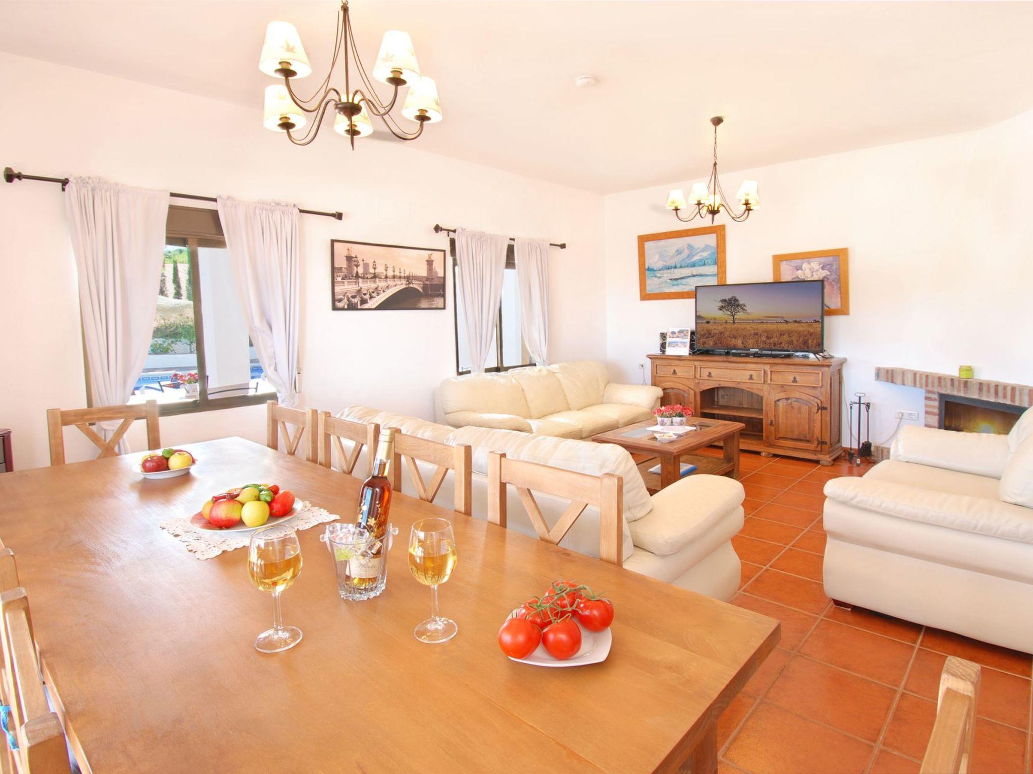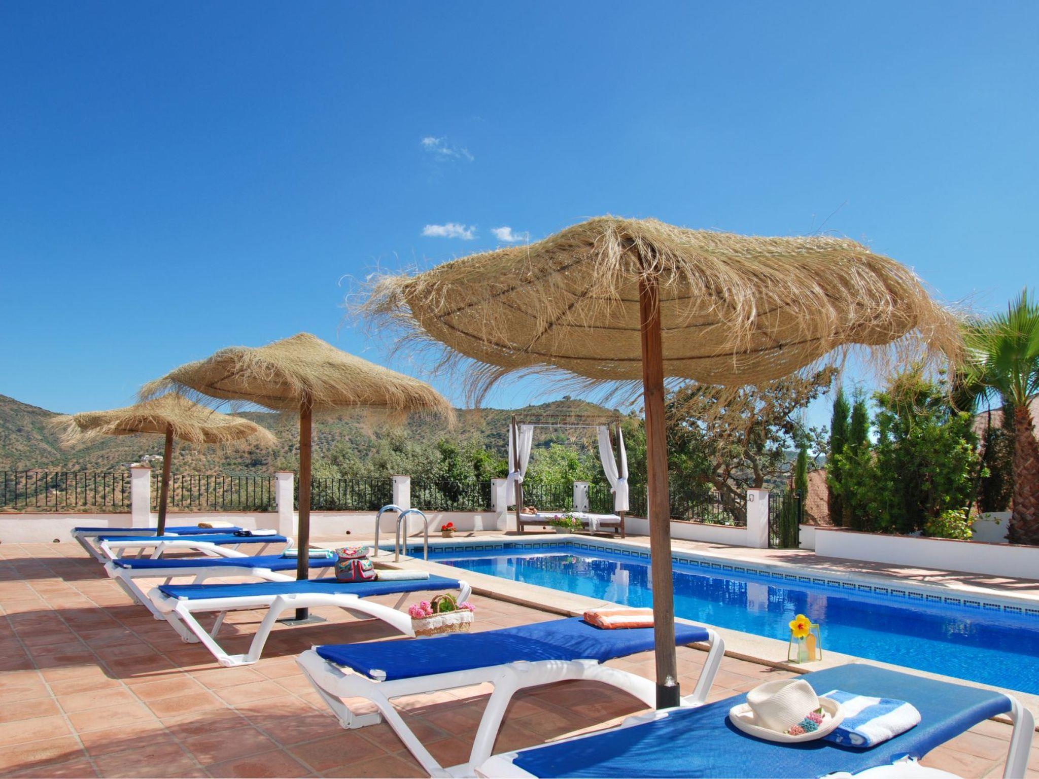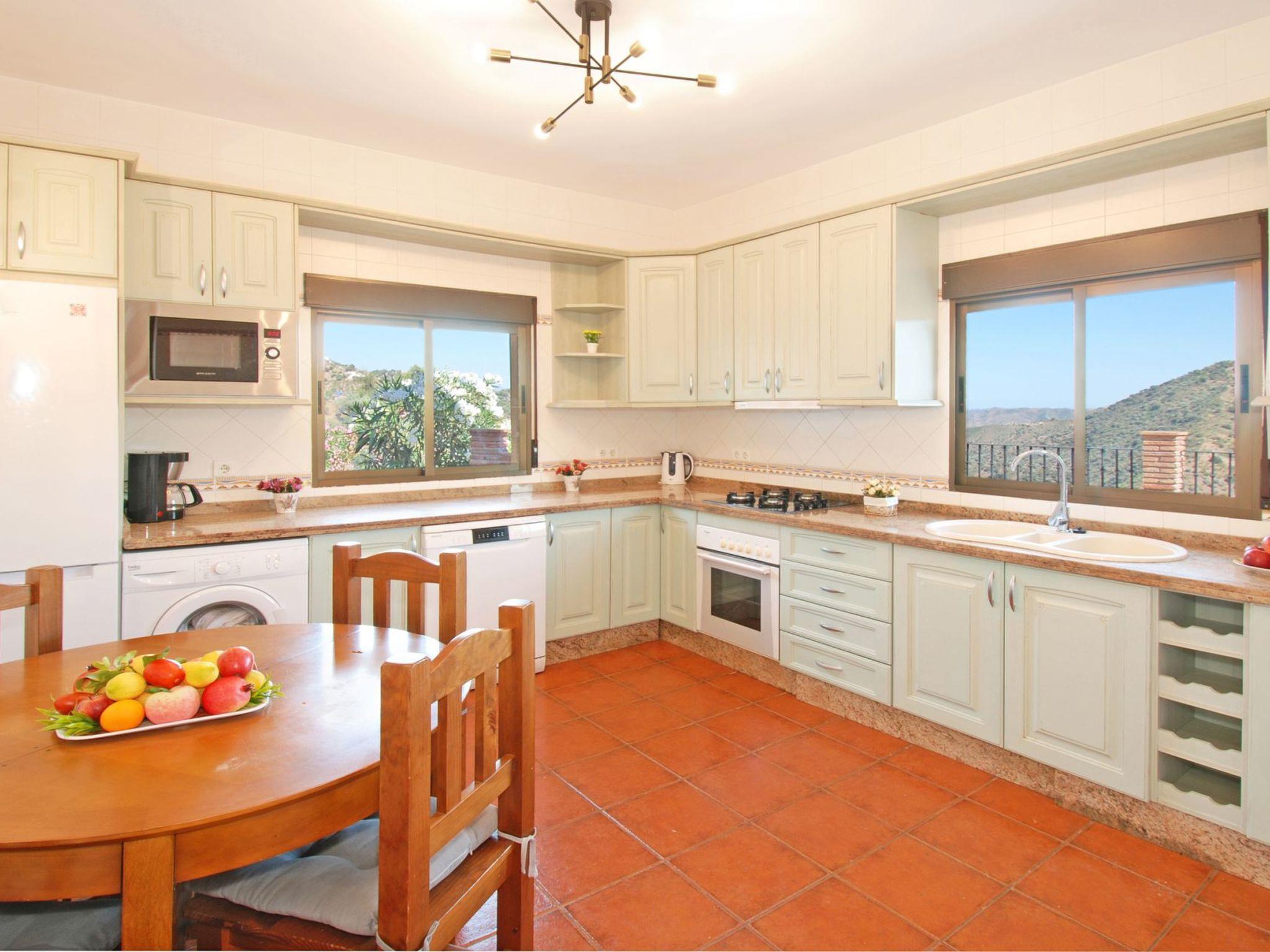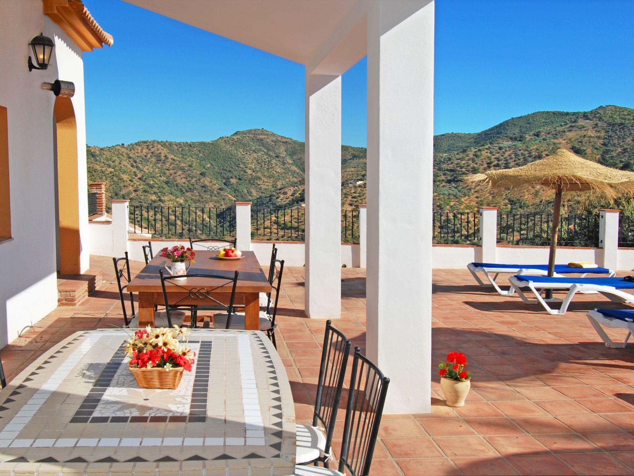 Dans un emplacement exceptionnel au milieu des amandiers et des oliviers et avec une vue magnifique sur les montagnes, la villa est située sur une route de campagne, avec une courte distance de la route de la maison. C'is a house with a beautiful pool and lovely terraces, some shaded for alfresco dining. There is also a kitchen of'été en plein air. Tous avec des vues fantastiques. La maison est bien équipée et meublée à un excellent niveau. Torre del Mar est la plage la plus proche et est à environ 30 minutes en voiture. Il a une plage attrayante et une promenade où vous trouverez des bars, des restaurants et des divertissements pour adultes et enfants. Pedregalejo, à 5 km à l'west of Malaga city centre, is another popular beach and promenade with many bars and restaurants. Nerja with its famous caves and stunning views of the Mediterranean are about 1 hour away, and the journey along the coastal road from Nerja to Comares is superb!