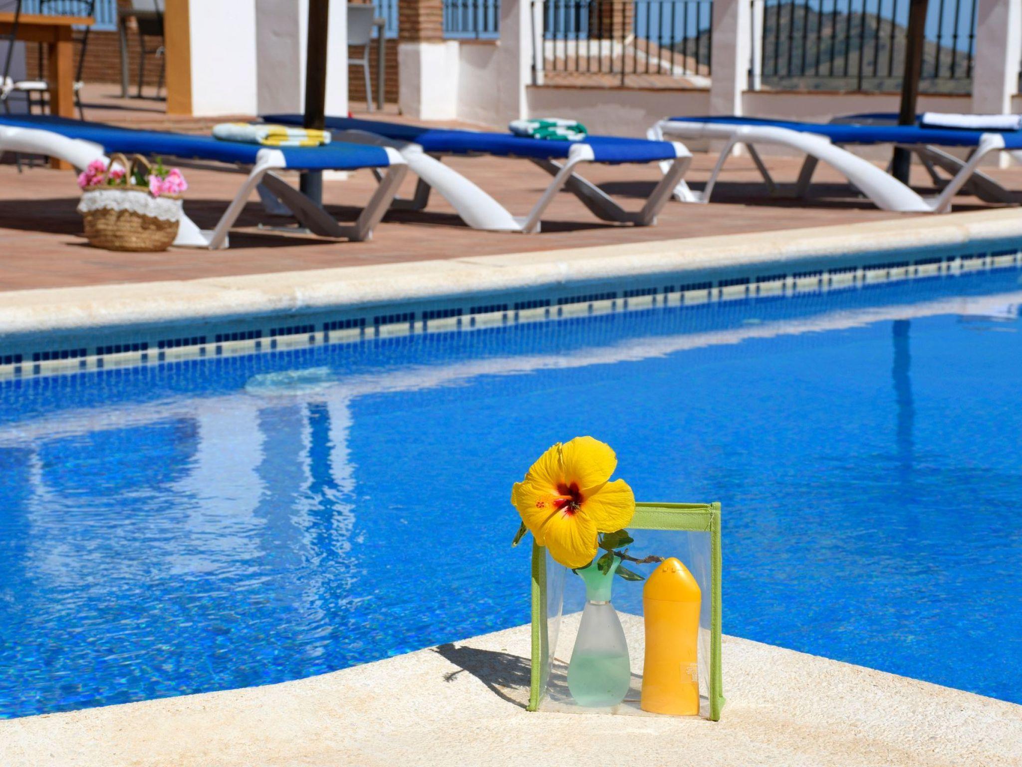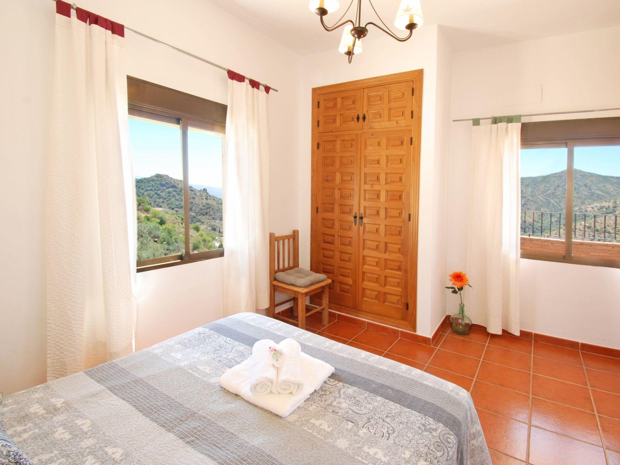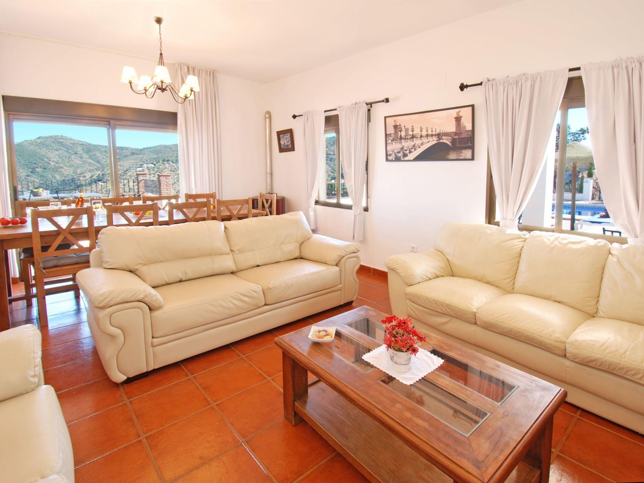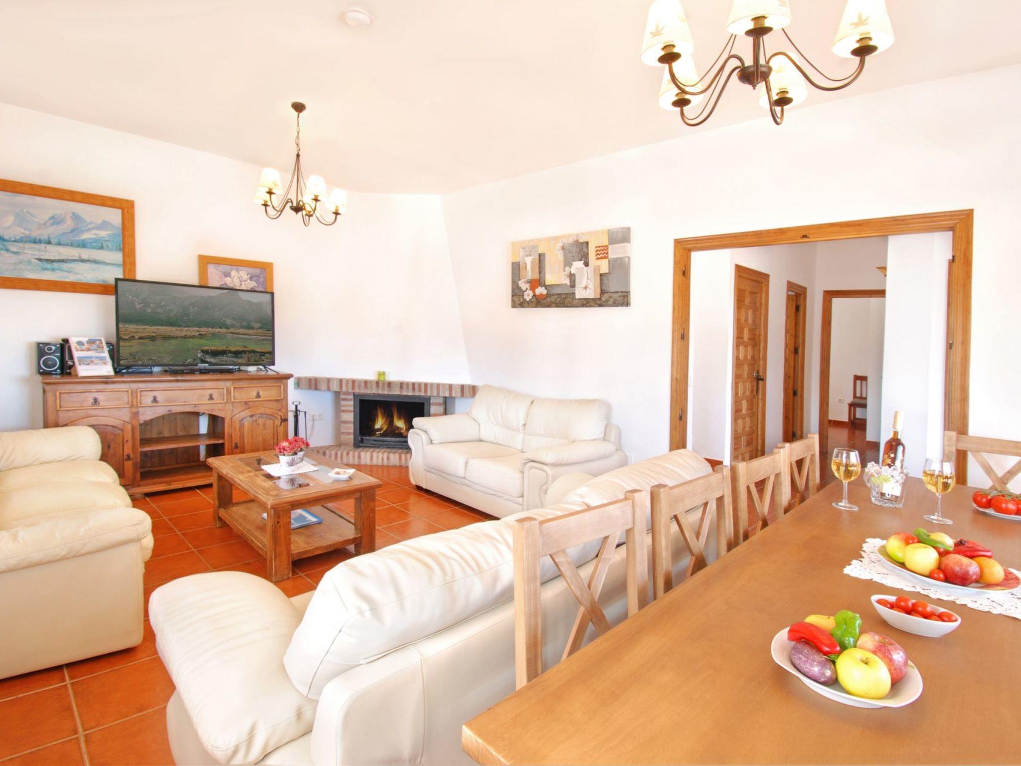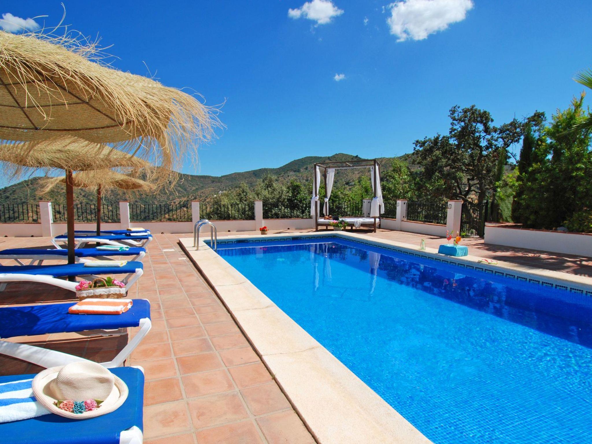 Dans un emplacement exceptionnel au milieu des amandiers et des oliviers et avec une vue magnifique sur les montagnes, la villa est située sur une route de campagne, avec une courte distance de la route de la maison. C'is a house with a beautiful pool and lovely terraces, some shaded for alfresco dining. There is also a kitchen of'été en plein air. Tous avec des vues fantastiques. La maison est bien équipée et meublée à un excellent niveau. Torre del Mar est la plage la plus proche et est à environ 30 minutes en voiture. Il a une plage attrayante et une promenade où vous trouverez des bars, des restaurants et des divertissements pour adultes et enfants. Pedregalejo, à 5 km à l'west of Malaga city centre, is another popular beach and promenade with many bars and restaurants. Nerja with its famous caves and stunning views of the Mediterranean are about 1 hour away, and the journey along the coastal road from Nerja to Comares is superb!