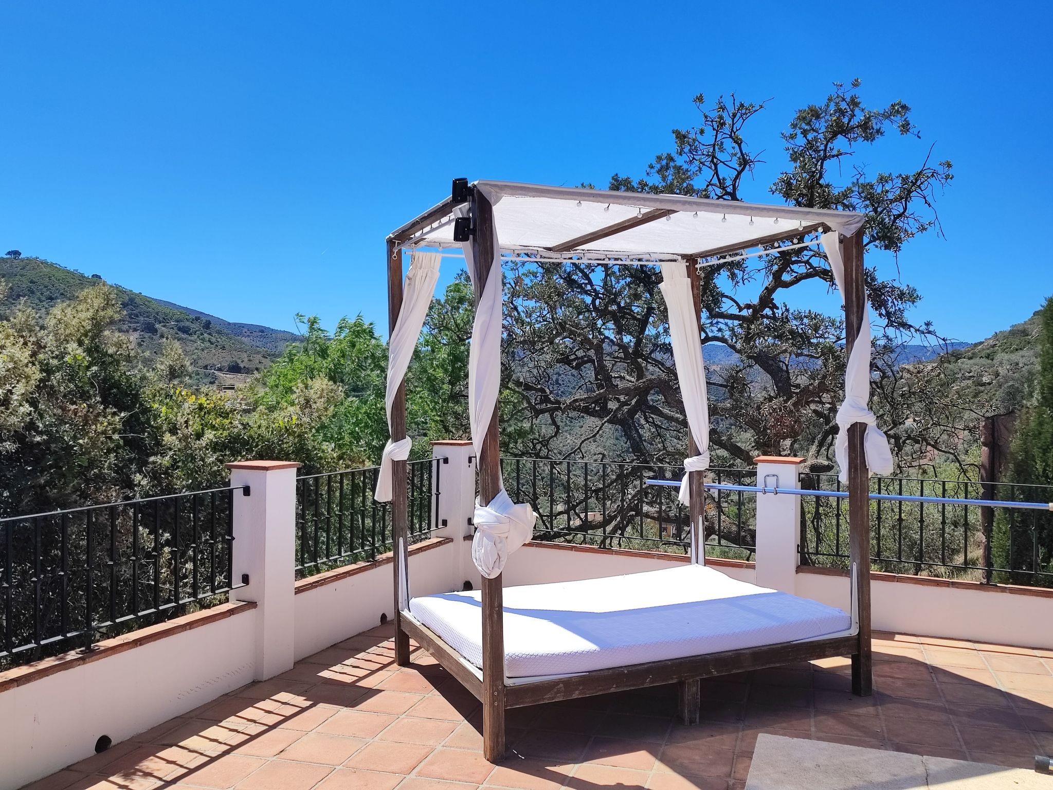 Magnificent Villa in the beautiful region of Comares about 30 minutes drive from the coast of the Costa del Sol. The villa is situated in a spectacular setting and has gardens, terraces and private pool. HEATED POOL! The villa has 5 bedrooms (2 in a flat with separate entrance about 10 meters from the'entrée principale ), 4 salles de bains, 2 salons et une grande cuisine. La villa est entièrement équipée pour des vacances parfaites. Dehors, il y a une table et des chaises pour manger et des chaises longues. Il y a aussi une grande cuisine d'summer with barbecue. It is about 5 minutes drive to the traditional village of Comares which has bars and restaurants. You can walk in 2 minutes to a local bar / restaurant.