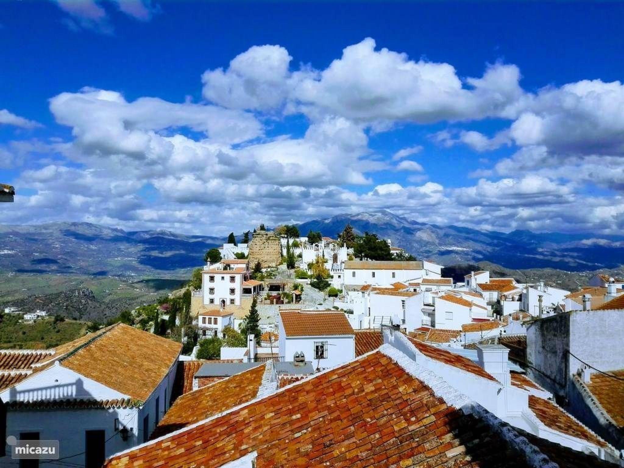 Comares, at an altitude of 700 meters, is a typical Andalusian white village with narrow streets. Follow the ceramic footsteps that lead you to extraordinary corners with spectacular views at every step you take. Comares is surrounded by beautiful countryside, full of impressive native trees and beautiful paths that invite you to hike and enjoy nature. Many guests come here to cycle, mountanbike or…..just to relax.There is a supermarket, an ATM, a pharmacy and several bars and restaurants. The view from the balcony in the centre of the village is breathtaking and you can see the Med. Only 35 minutes by car, bring you to the well-known beach of Torre del Mar. Eat crackling fresh fish in one of the many chiringuitos or enjoy a nice ice-cream while you walk on the beautiful promenade. Velez Malaga that lies just next to it, has a big commercial center and many supermarkets.During a day trip, you can visit all the touristic highlights of Andalusia such as Malaga, cultural and gastronomic capital with its streets full of beautiful facades, submerged in history. And how about a visit to Granada and the beautiful Alhambra palace? The famous Caminito del Rey in Ardales takes you through the gorges of El Chorro. Cordoba with the Mezquita is unique in the world. A cathedral build inside a mosque. And there is so much more…