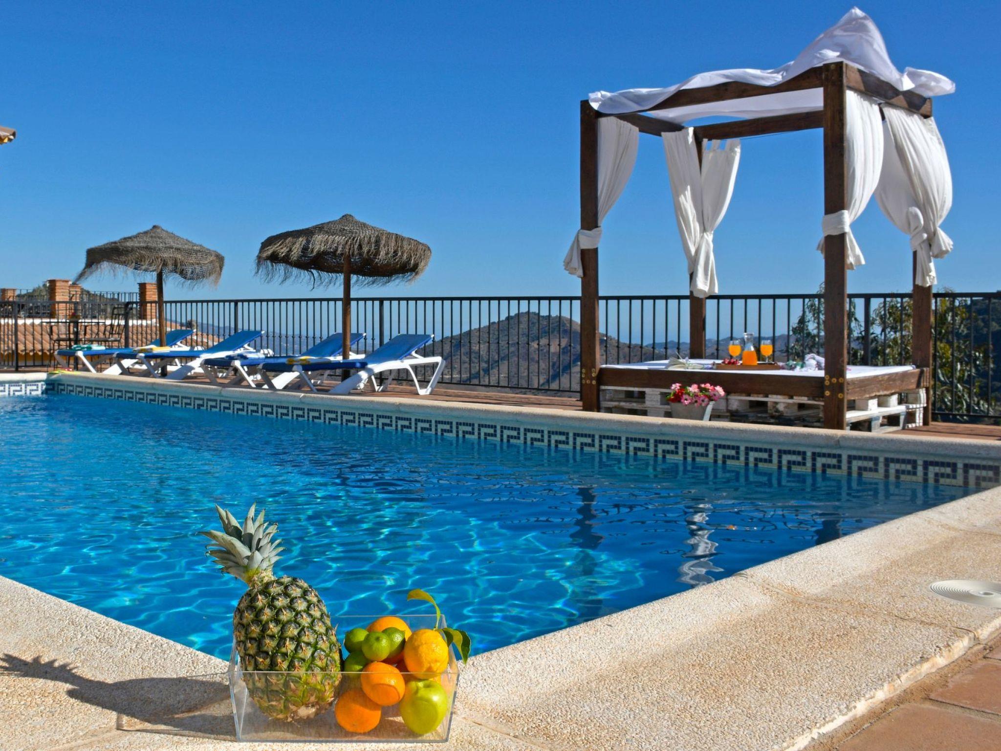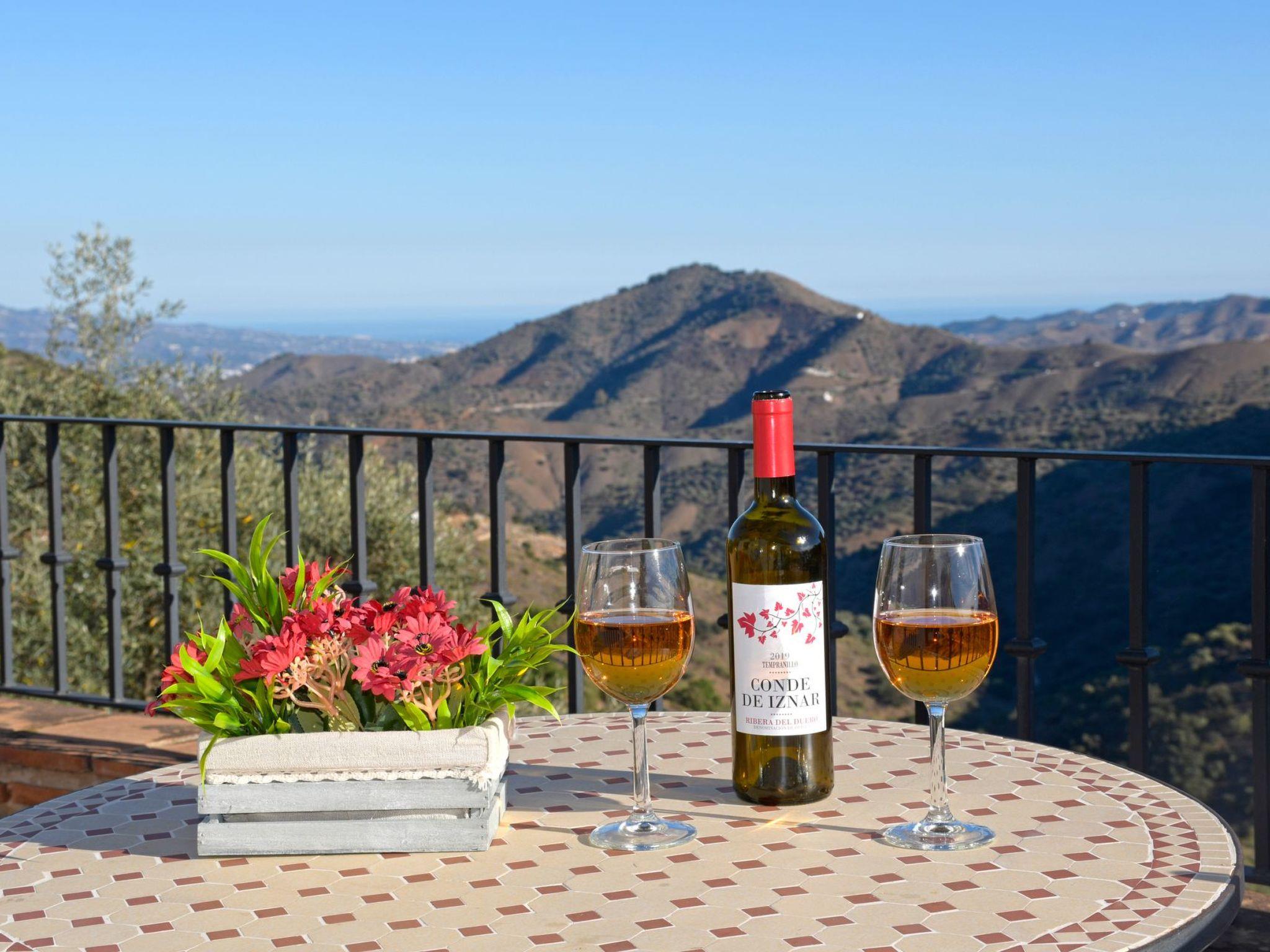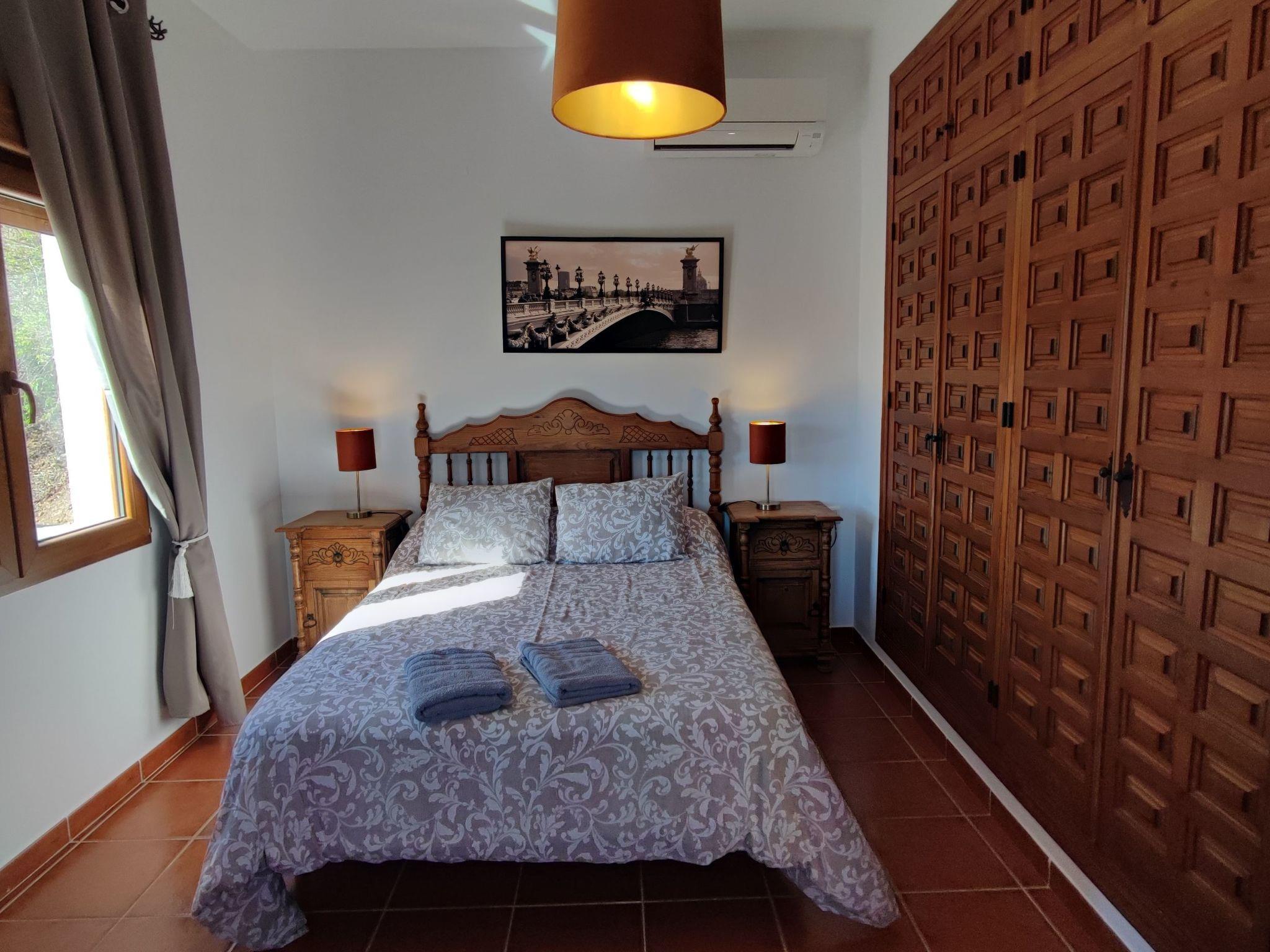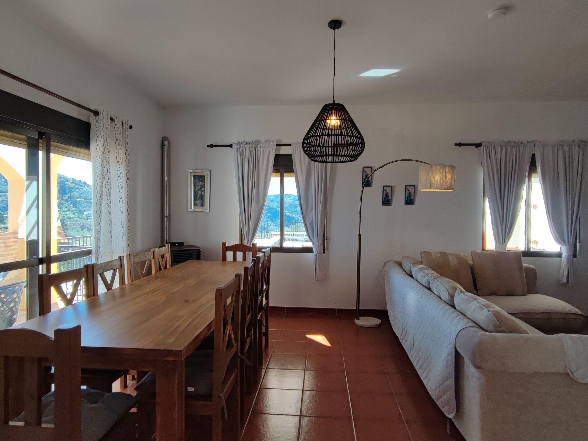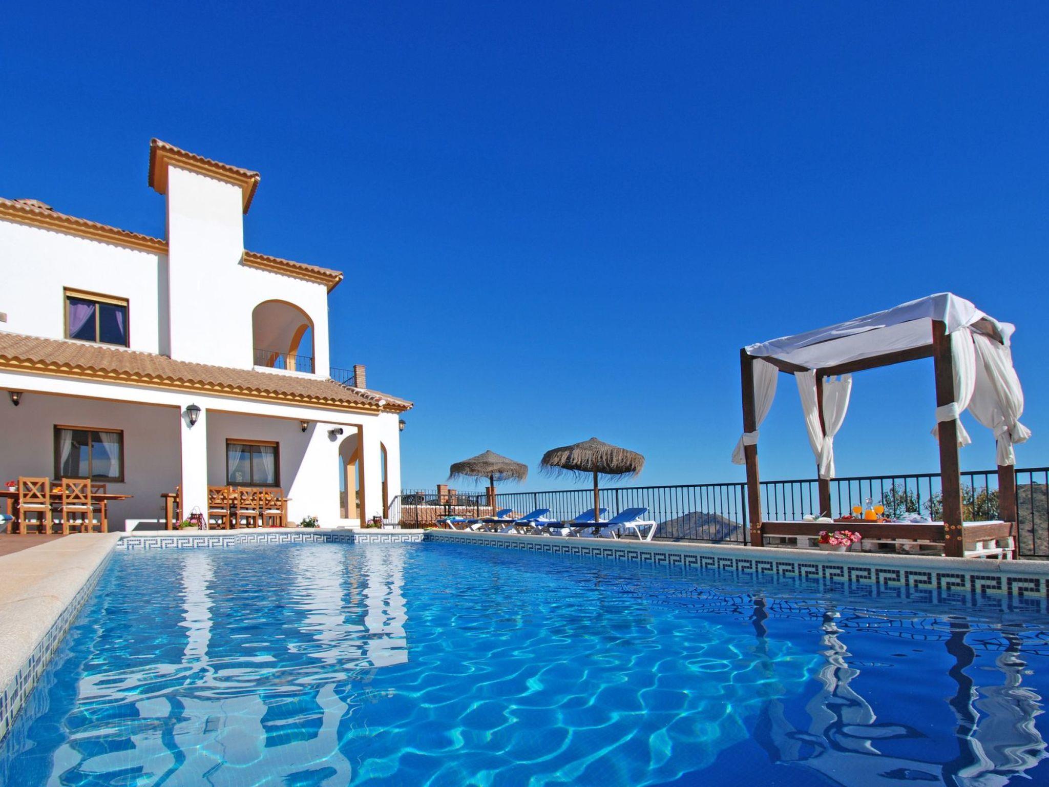 HEATED SWIMMING POOL! Fantastic villa and separate, attached flat. Sleeps 12. Located just off the'extérieur du village de Comares. La villa dispose de 3 chambres dans la maison principale et de 2 autres chambres dans l'attached flat. There are 3 bathrooms, 2 living rooms, kitchen, private heated pool and numerous terraces with beautiful views. In an exceptional location surrounded by almond and olive trees and with magnificent views of the mountains and the Mediterranean Sea, the villa is situated on a country road, with a short distance from the road to the house. C'est une maison avec une belle piscine et de belles terrasses, certaines sont ombragées pour profiter des dîners en plein air. Il y a aussi une cuisine d'summer outdoors. All with fantastic views. The house is well equipped and furnished to an excellent standard. Air conditioning is available in all bedrooms and in the living room of the main house, on a pay-as-you-go basis at'utilisation.