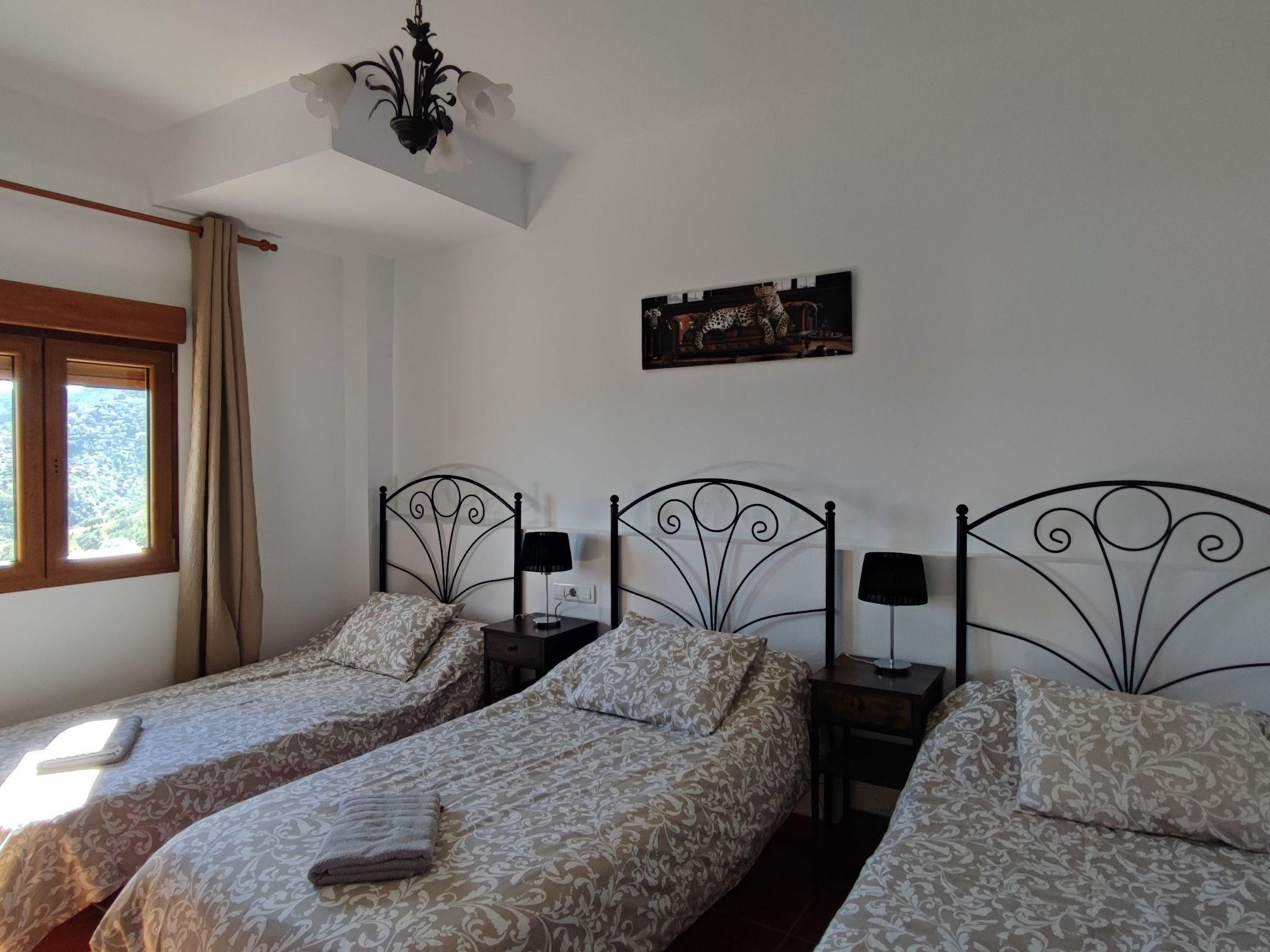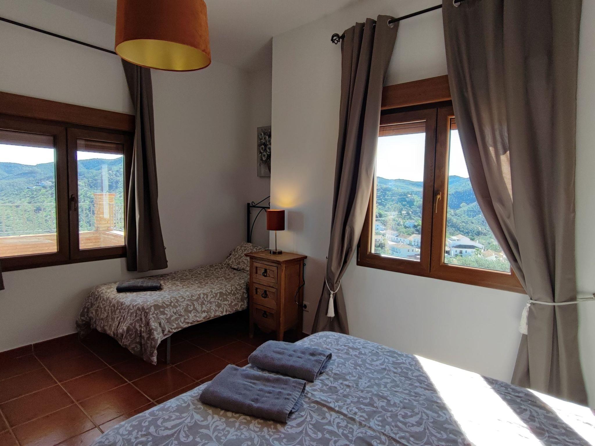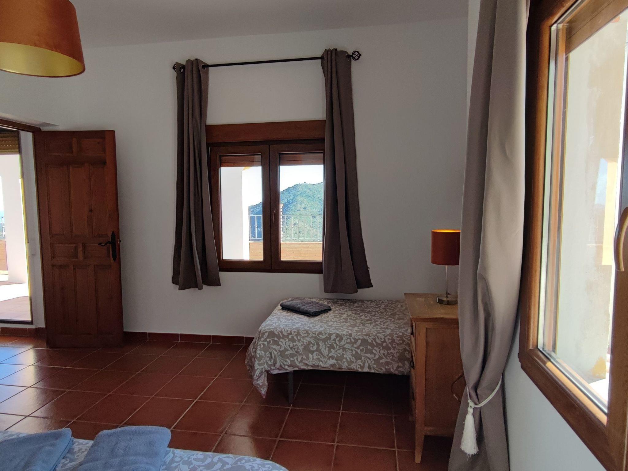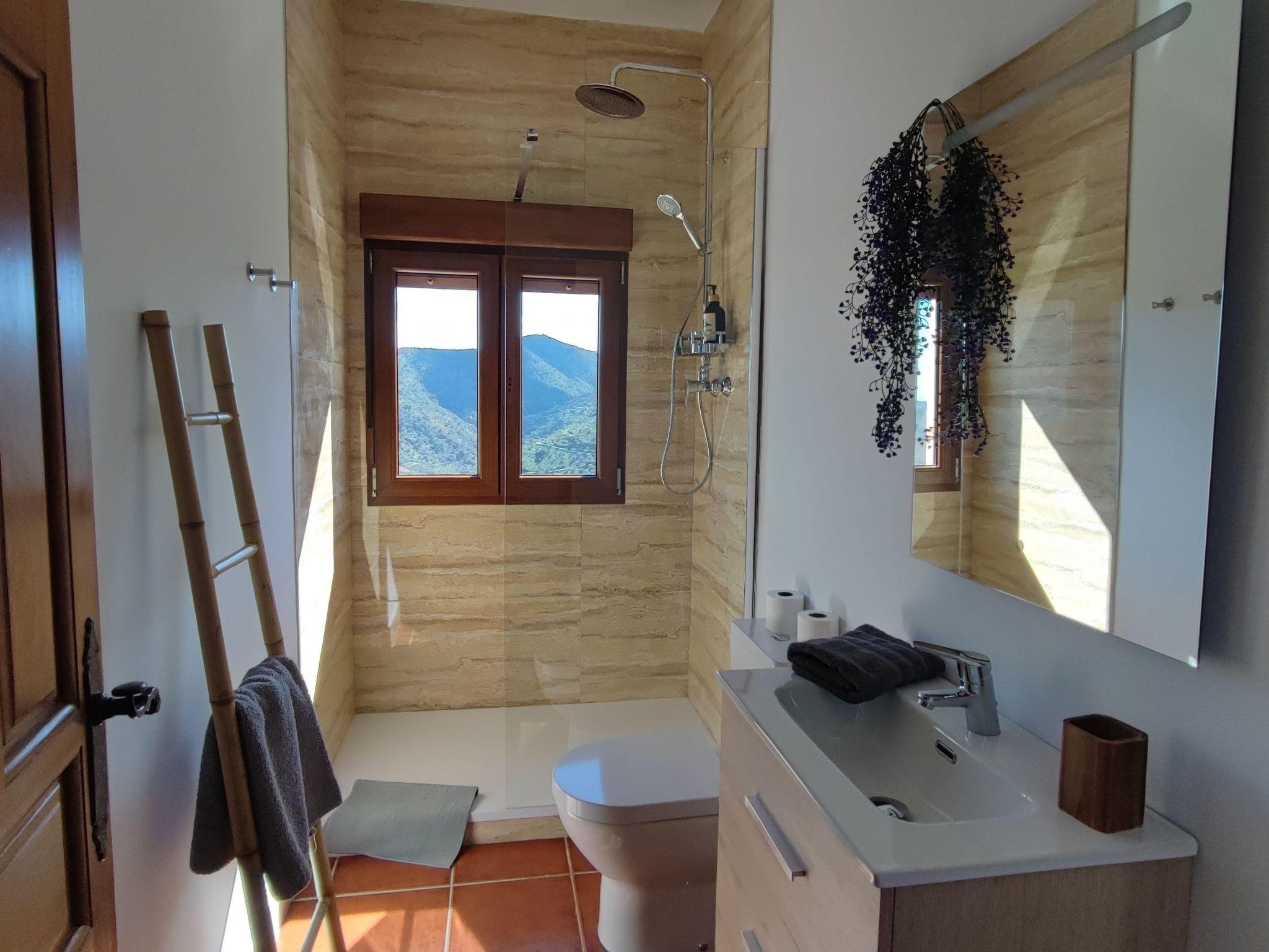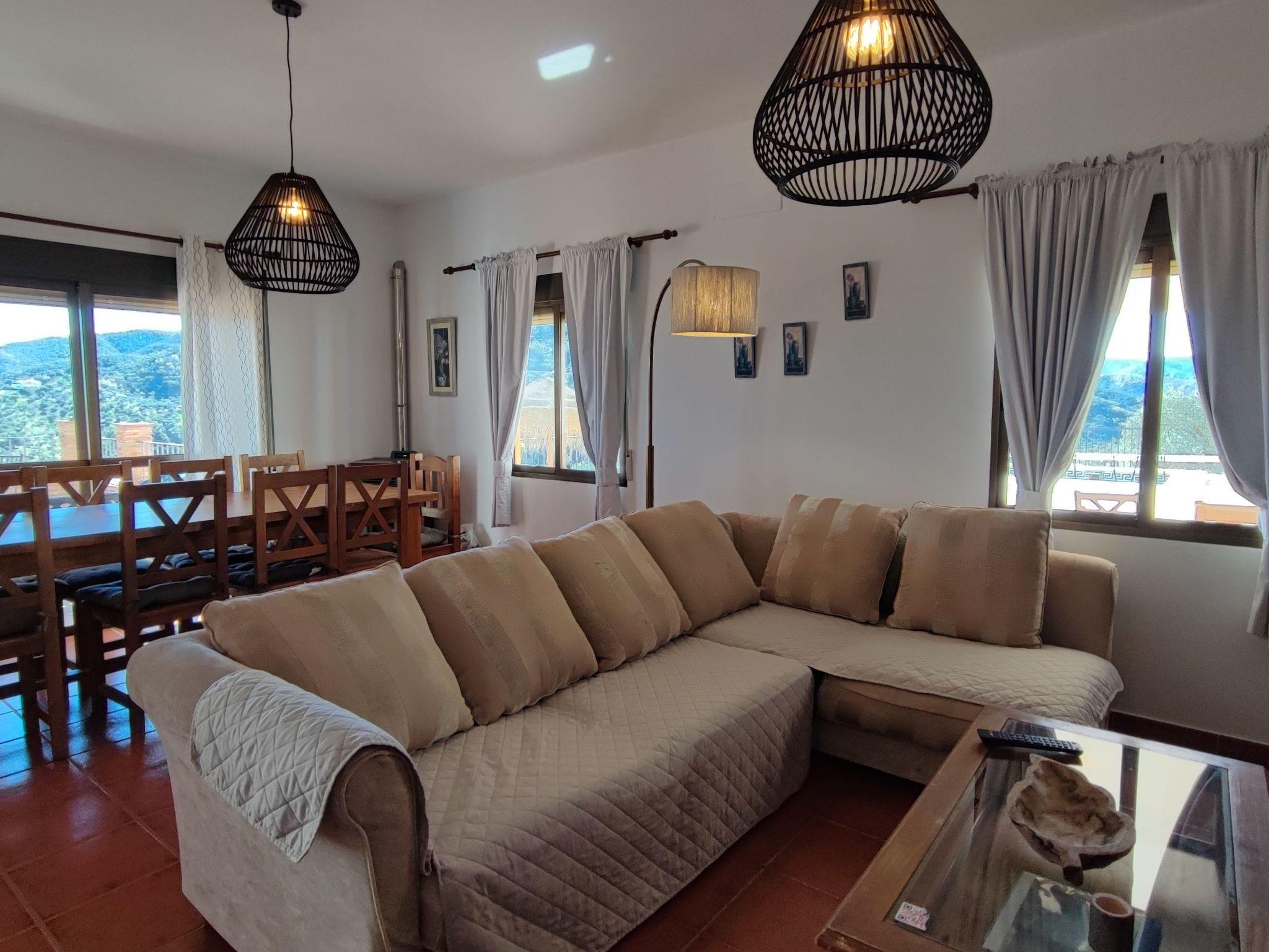 HEATED SWIMMING POOL! Fantastic villa and separate, attached flat. Sleeps 12. Located just off the'extérieur du village de Comares. La villa dispose de 3 chambres dans la maison principale et de 2 autres chambres dans l'attached flat. There are 3 bathrooms, 2 living rooms, kitchen, private heated pool and numerous terraces with beautiful views. In an exceptional location surrounded by almond and olive trees and with magnificent views of the mountains and the Mediterranean Sea, the villa is situated on a country road, with a short distance from the road to the house. C'est une maison avec une belle piscine et de belles terrasses, certaines sont ombragées pour profiter des dîners en plein air. Il y a aussi une cuisine d'summer outdoors. All with fantastic views. The house is well equipped and furnished to an excellent standard. Air conditioning is available in all bedrooms and in the living room of the main house, on a pay-as-you-go basis at'utilisation.