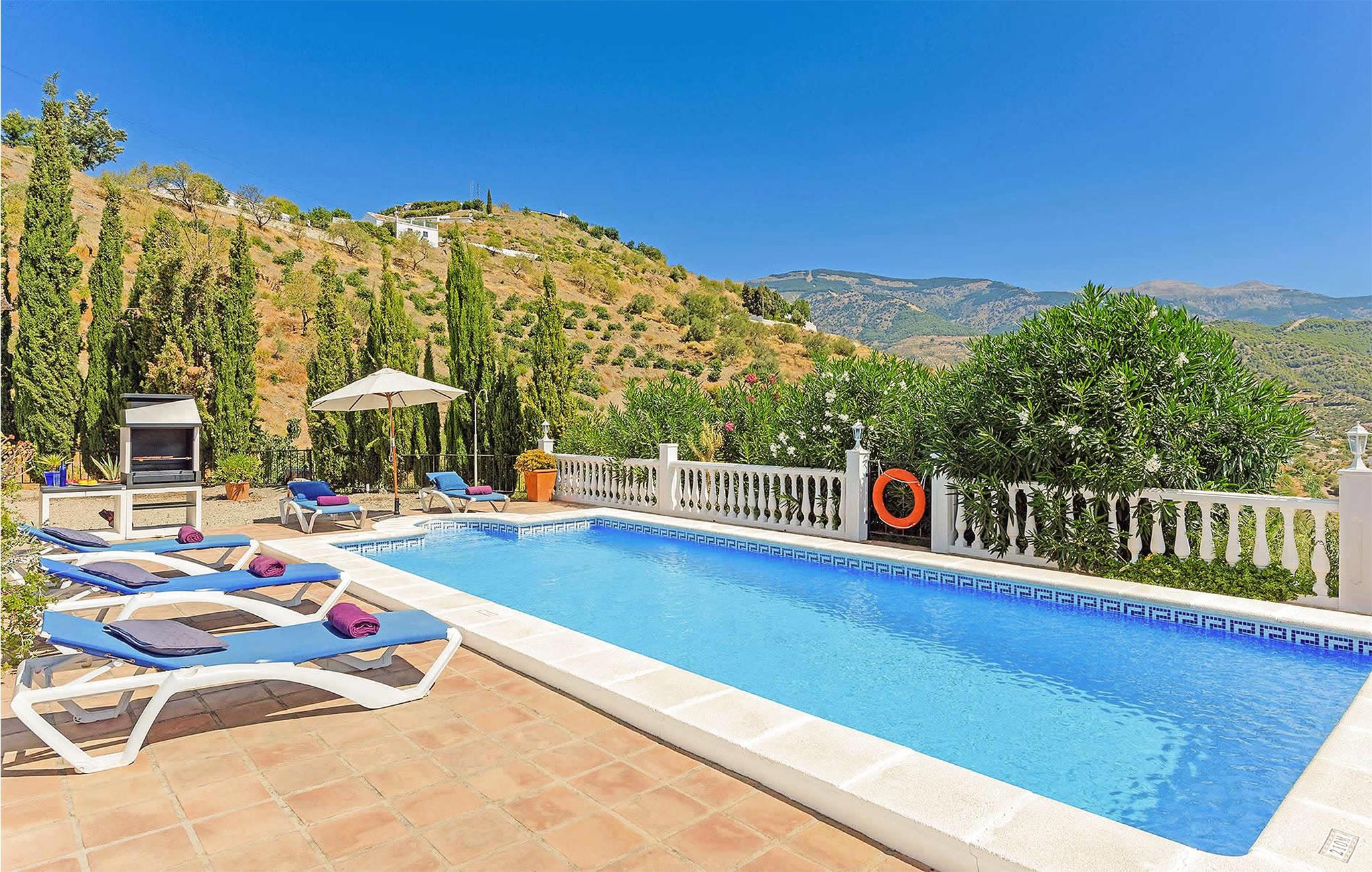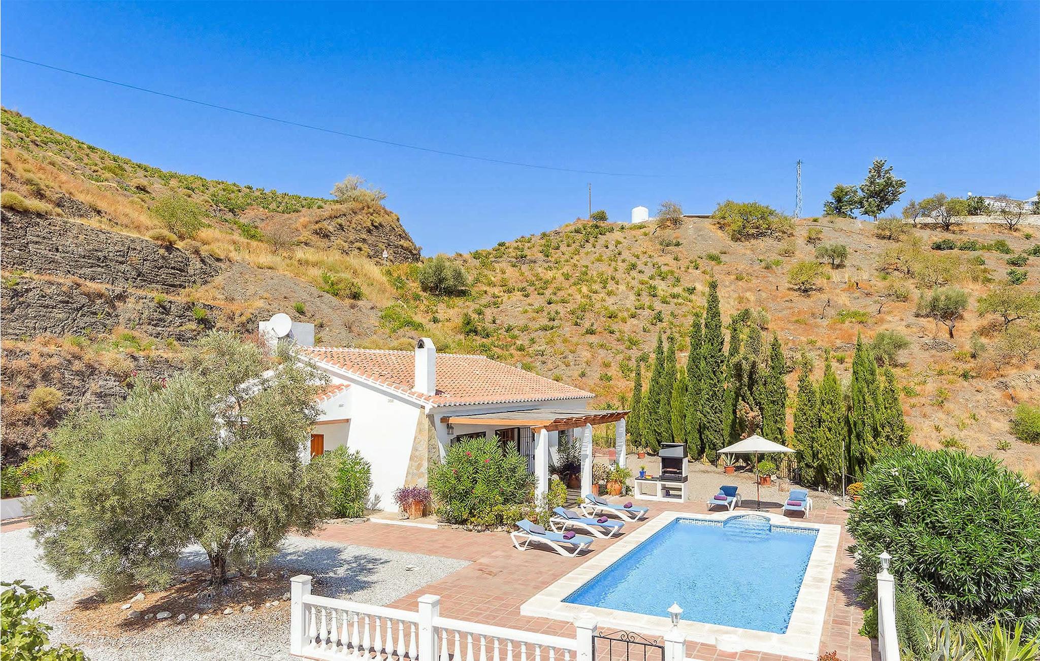 En charmerende villa, fredeligt placeret mellem landsbyerne Archez og Canillas de Albaida, den har en fantastisk kulisse over de omkringliggende bjerge og den hvidkalkede landsby Competa.