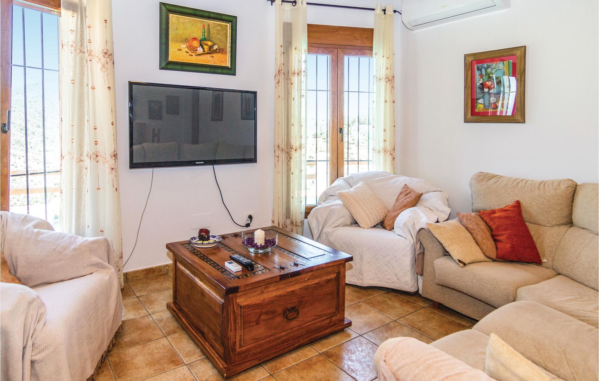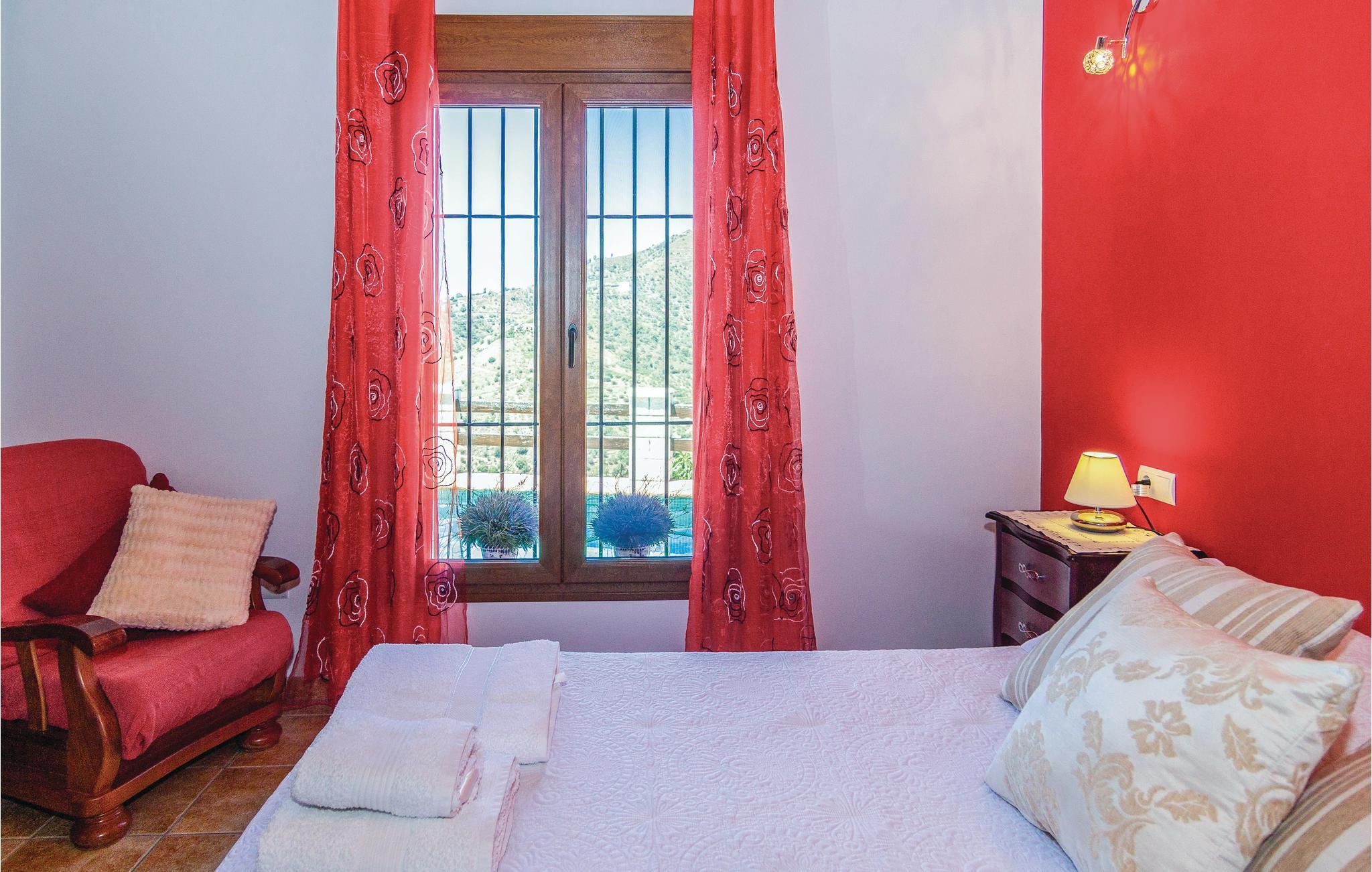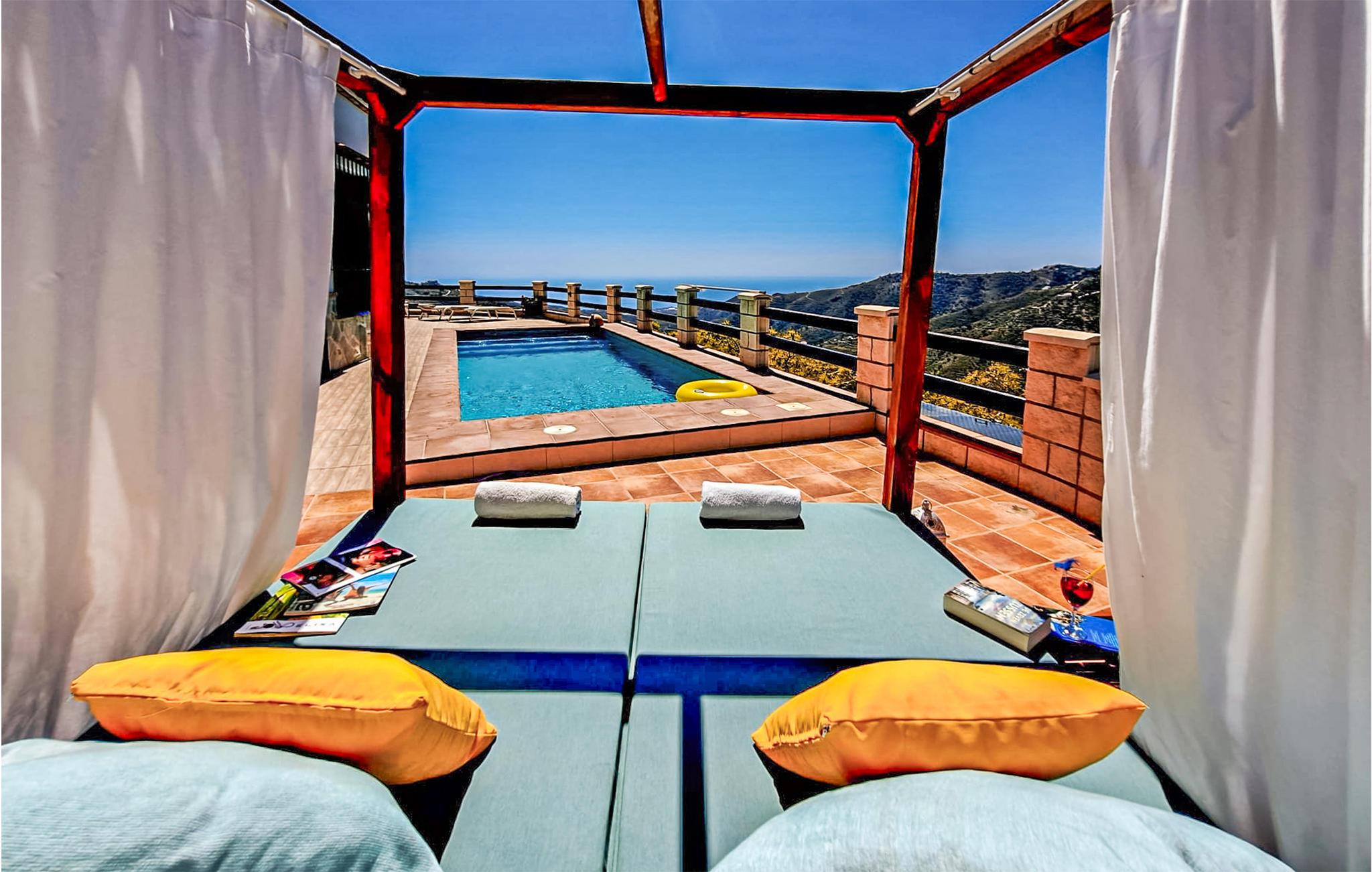 Hold ferie i dette storslåede feriehus som er optimalt beliggende med spektakulær udsigt til det omgivende landskab - på en grund på 4.000 m² med meget privatsfære. Den smagfulde indretning med møbler af høj kvalitet og især det godt udstyrede køkken med farvestrålende fliser vil begejstre jer. Tag bad i husets egen pool og læg jer i solen bagefter på poolterrassen, mens I nyder udsigten over de herlige omgivelser med havet i baggrunden. Her er I tæt på de smukkeste, hvide landsbyer i Axarquia og nationalparken Sierra Almijara-Tejeda (ca. 20 minutters kørsel), der alle sammen er med til at gøre denne region til et eftetragtet feriemål. Da ejendommen ligger i bjergene, er opkørslen via snoede veje.