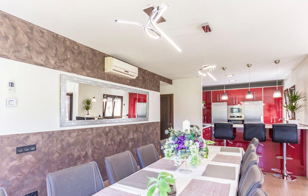 Denne store villa med seks soveværelser, fem badeværelser, en stue og et køkken tilbyder masser af plads til op til 14 gæster på sine 200 m2. Den private have tilbyder masser af plads til sjov og afslapning. Nyd den vidunderlige sydspanske sol i liggestolene ved poolen eller i selve poolen. Slap af i spabadet eller tilbered lækre feriemåltider i udekøkkenet med grill. På terrassen kan I spise morgenmad og afslutte dagen med et glas vin.