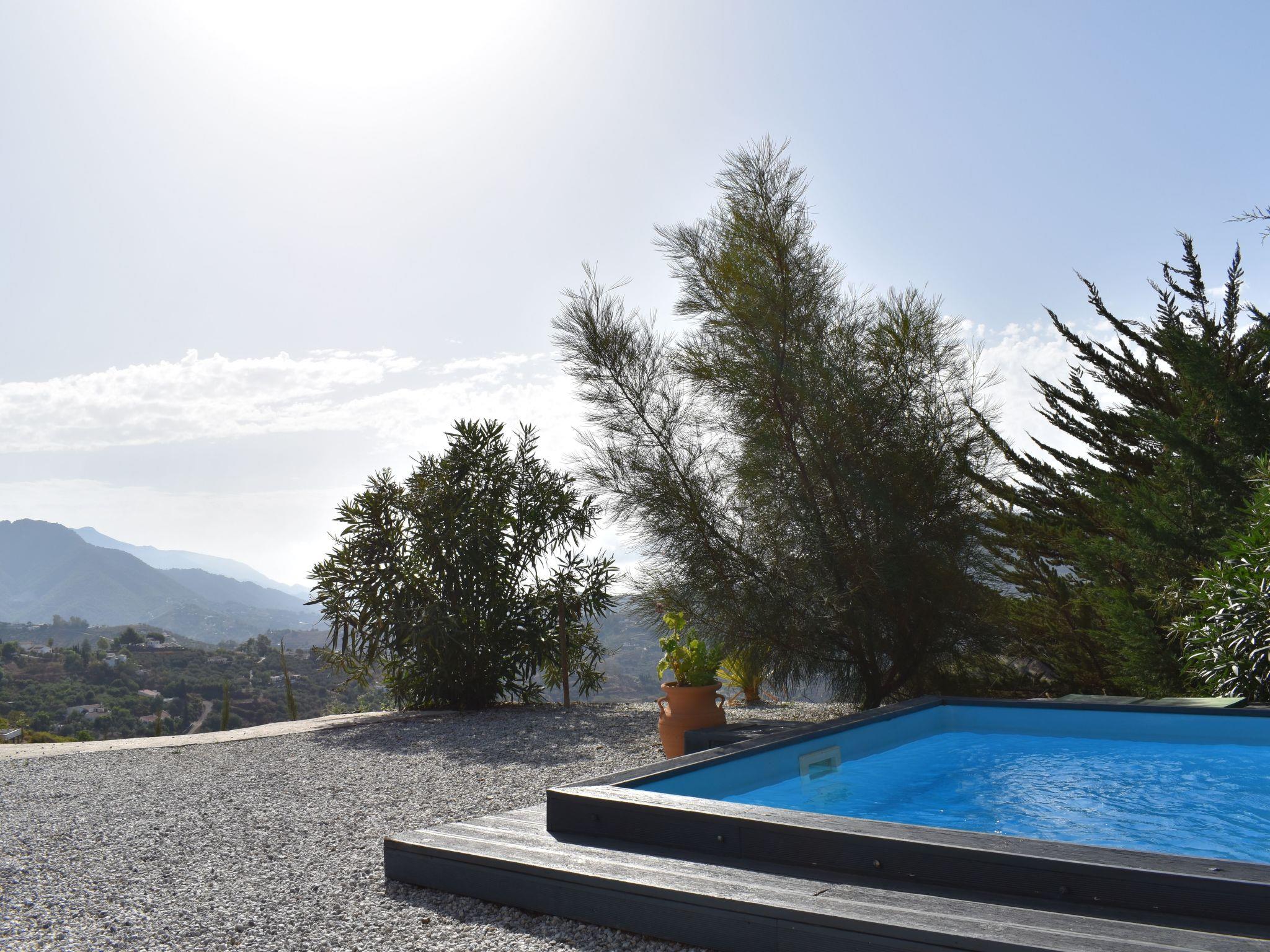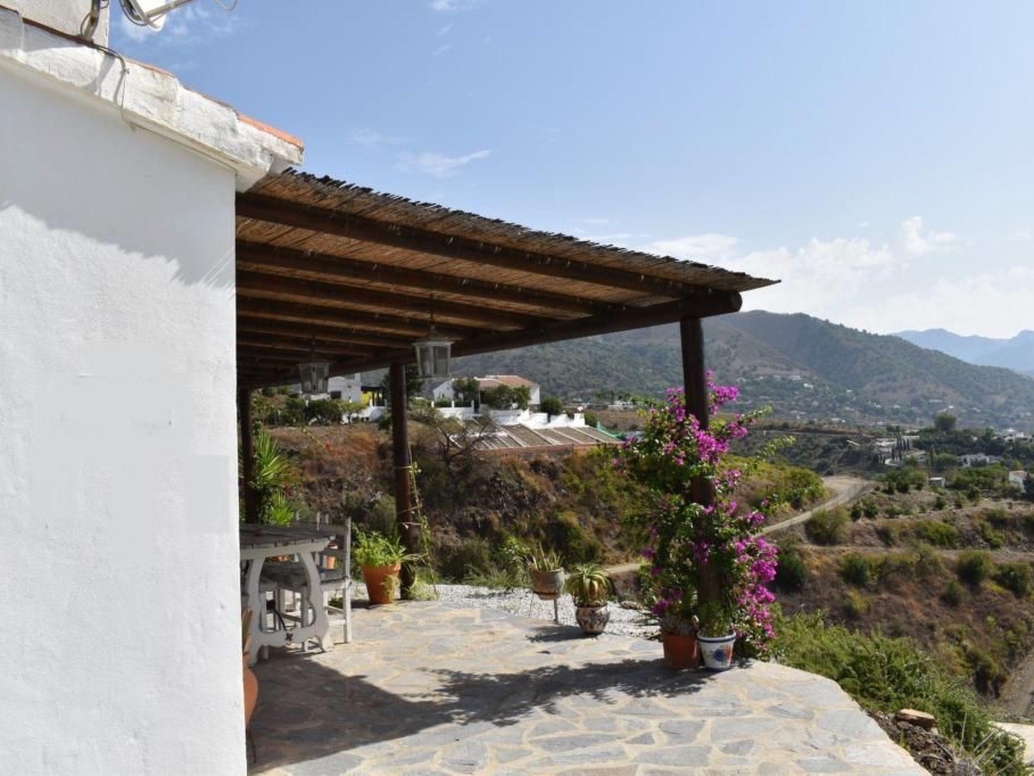 In front of the house the beautifully decorated covered terrace with garden furniture to relax and enjoy. The private pool (4.5 x 2.5 m) next to the house invites you to cool off. Enjoy the beautiful view of the Axarquía mountains and the romantic sunsets. Behind the house we find a small outdoor kitchen with a portable barbecue. Finca Martina is less than 10 minutes' drive from Cómpeta. All the way to the house is paved and can be done without problems with a normal car.The pool is closed for winter. Please check its opening.