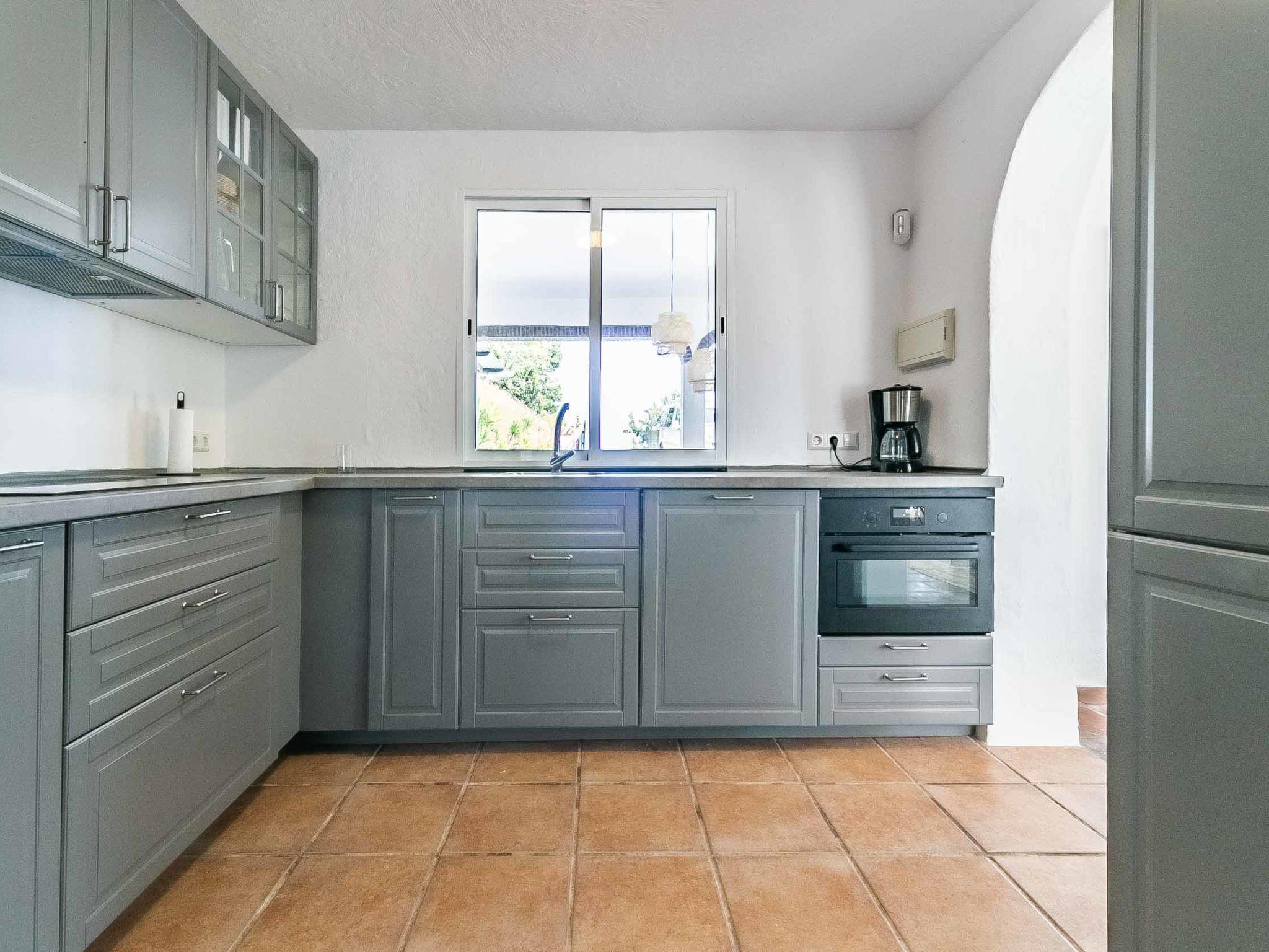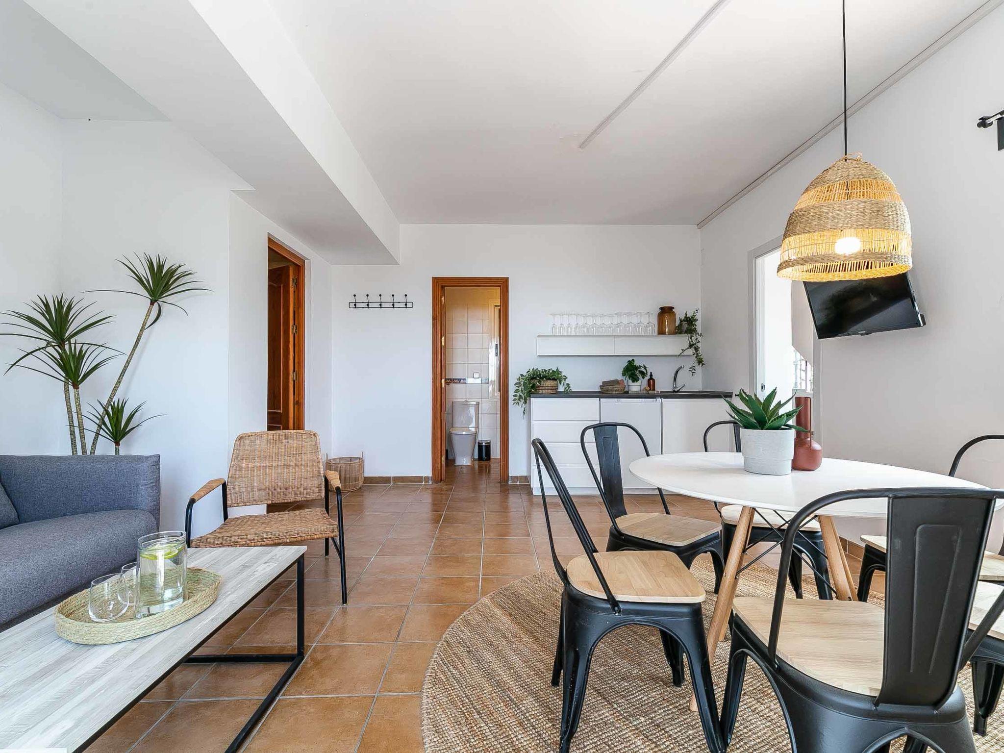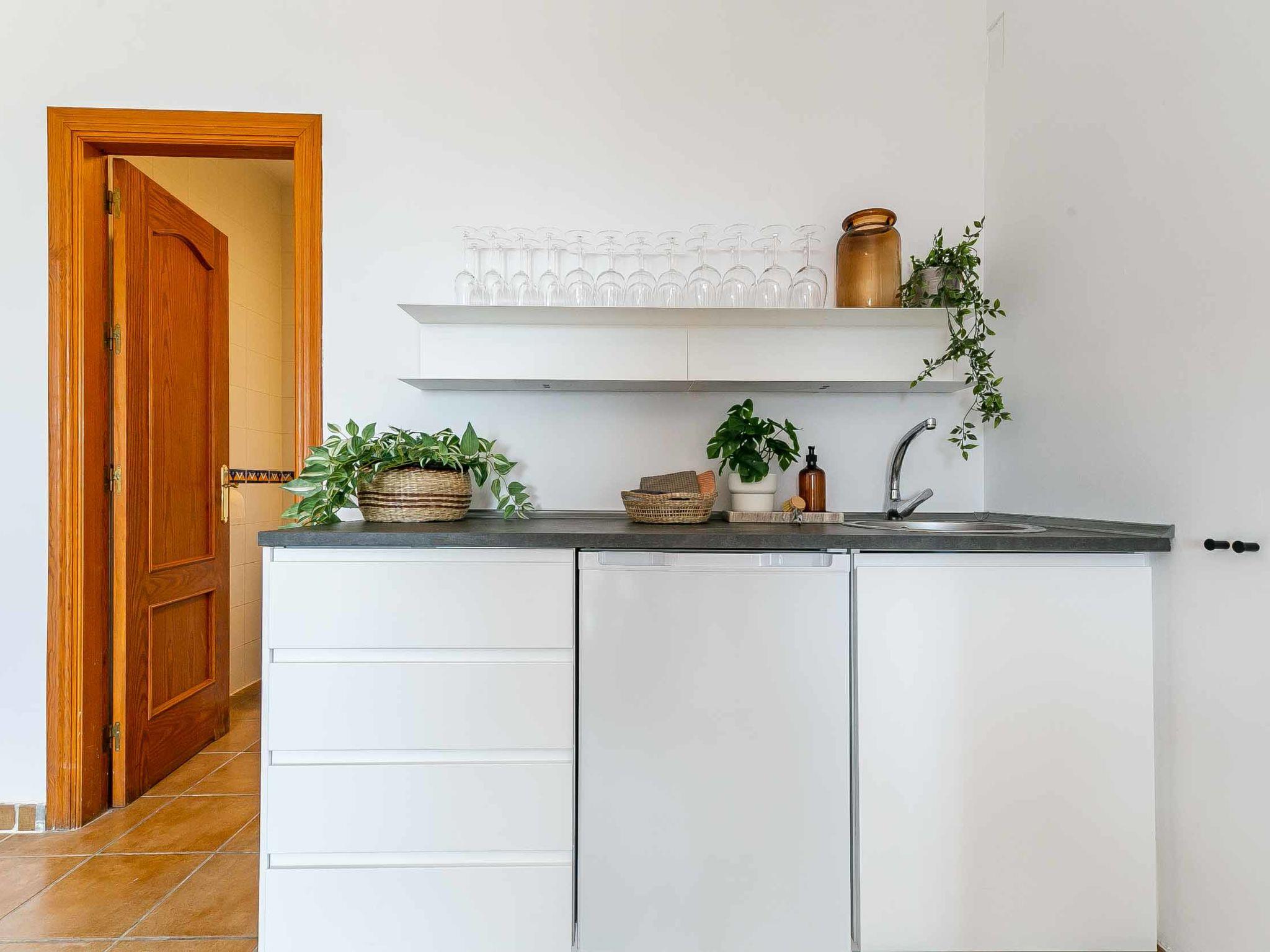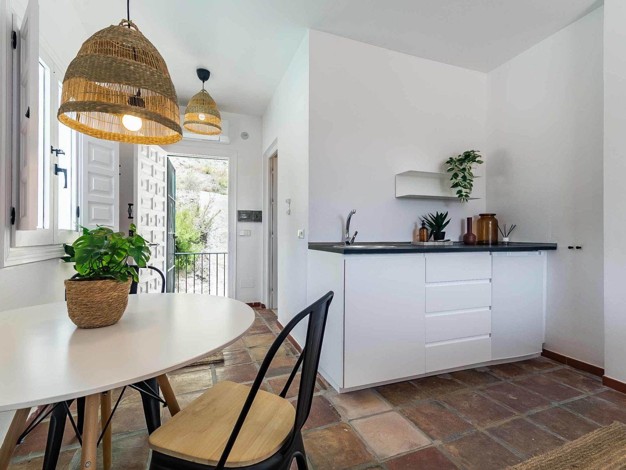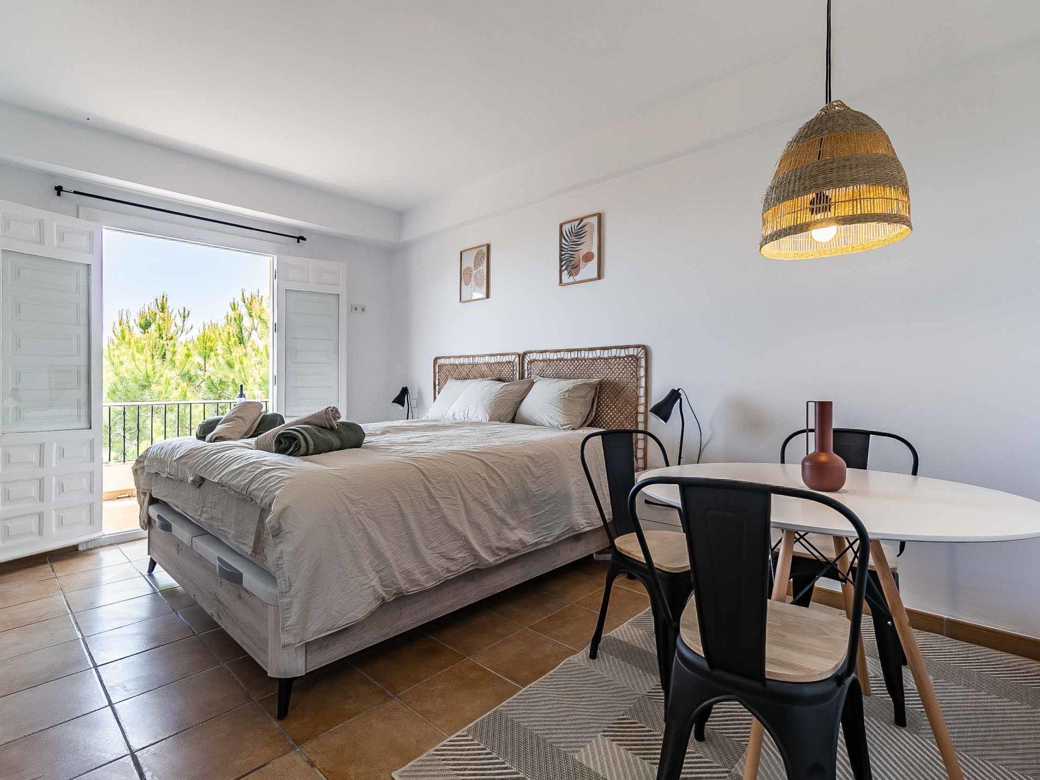 "Hacienda Competa", 13-room farmhouse 350 m2 on 3 levels. Spacious, practical and comfortable furnishings: living/dining room with kitchen corner, shower/WC, air conditioning and forced-air heating. Exit to the garden. 1 room with 1 french bed (160 cm, length 200 cm), air conditioning and forced-air heating. Studio with 1 french bed (160 cm, length 200 cm), dining table, kitchen corner, shower/WC, air conditioning and forced-air heating. Exit to the garden. 1 small room with 2 beds (80 cm, length 200 cm), fan. 3 rooms, each room with 2 beds (80 cm, length 200 cm), dining table, kitchen corner, shower/WC, air conditioning and forced-air heating. Exit to the swimming pool. Large dining room with shower/bidet/WC. Large kitchen (oven, dishwasher, 4 ceramic glass hob hotplates, toaster, kettle, microwave, freezer, electric coffee machine). Upper floor: (exterior staircase) small, Studio with 1 french bed (160 cm, length 200 cm), dining table, kitchen corner, shower/WC, air conditioning and forced-air heating. Exit to the balcony. Small, Studio with 2 beds (80 cm, length 200 cm), dining table, kitchen corner, air conditioning and forced-air heating. Exit to the balcony. Small, Studio with 1 french bed (160 cm, length 200 cm), dining table, kitchen corner, shower/WC, air conditioning and forced-air heating. Exit to the balcony. Studio with 1 french bed (160 cm, length 200 cm), dining table, kitchen corner, shower/WC, air conditioning and forced-air heating. Exit to the balcony. Studio with 1 french bed (160 cm, length 200 cm), dining table, kitchen corner, shower/WC, air conditioning and forced-air heating. Exit to the balcony. 2nd upper floor: (exterior staircase), Studio with 2 beds (80 cm, length 200 cm), dining table, kitchen corner and shower/WC. Exit to the terrace. Terrace furniture, balcony furniture. View of the countryside. Facilities: washing machine, iron, children's high chair, baby cot for up to 2 year olds, hair dryer. Internet (WiFi, free). Please note: suitable for families one double bedroom is outside the apartment. Non-smoking house. The estate is divided into three independent areas, not connected to one another: a main house, a pool house and a secondary house, each with its own private entrance.