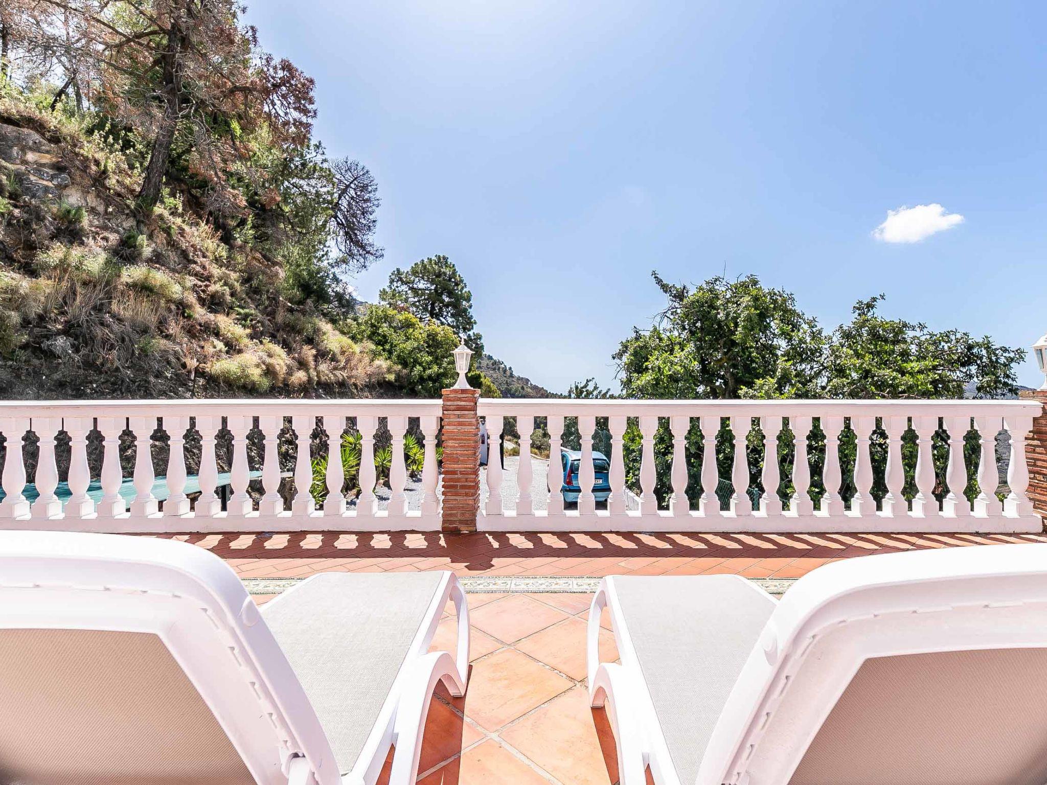 Large farm estate "Hacienda Competa". In a secluded, sunny position, 15 km from the sea. Private: swimming pool heated (5 x 3 m, depth 180 cm, seasonal availability: 01.Jan. - 31.Dec.). Outdoor shower, parking (for 10 cars) at the house. Supermarket 1 km, restaurant 1 km, bar 1 km, café 1 km, bus stop 800 m. Golf course (18 hole) 16 km. Nearby attractions: Málaga 55 km, Granada 110 km. Well-known ski regions can easily be reached: Sierra Nevada 140 km. The owner does not accept any youth groups. Neighbourhood highly sensitive to noise. Quietness and good behaviour expected.