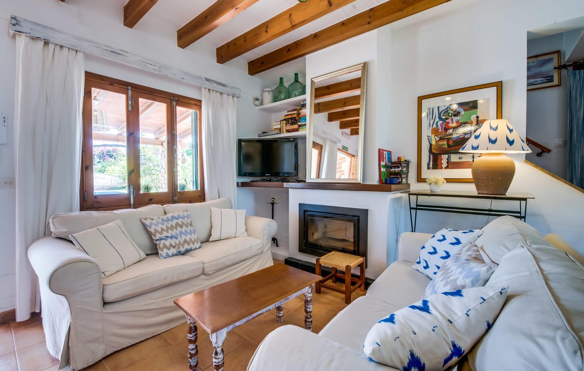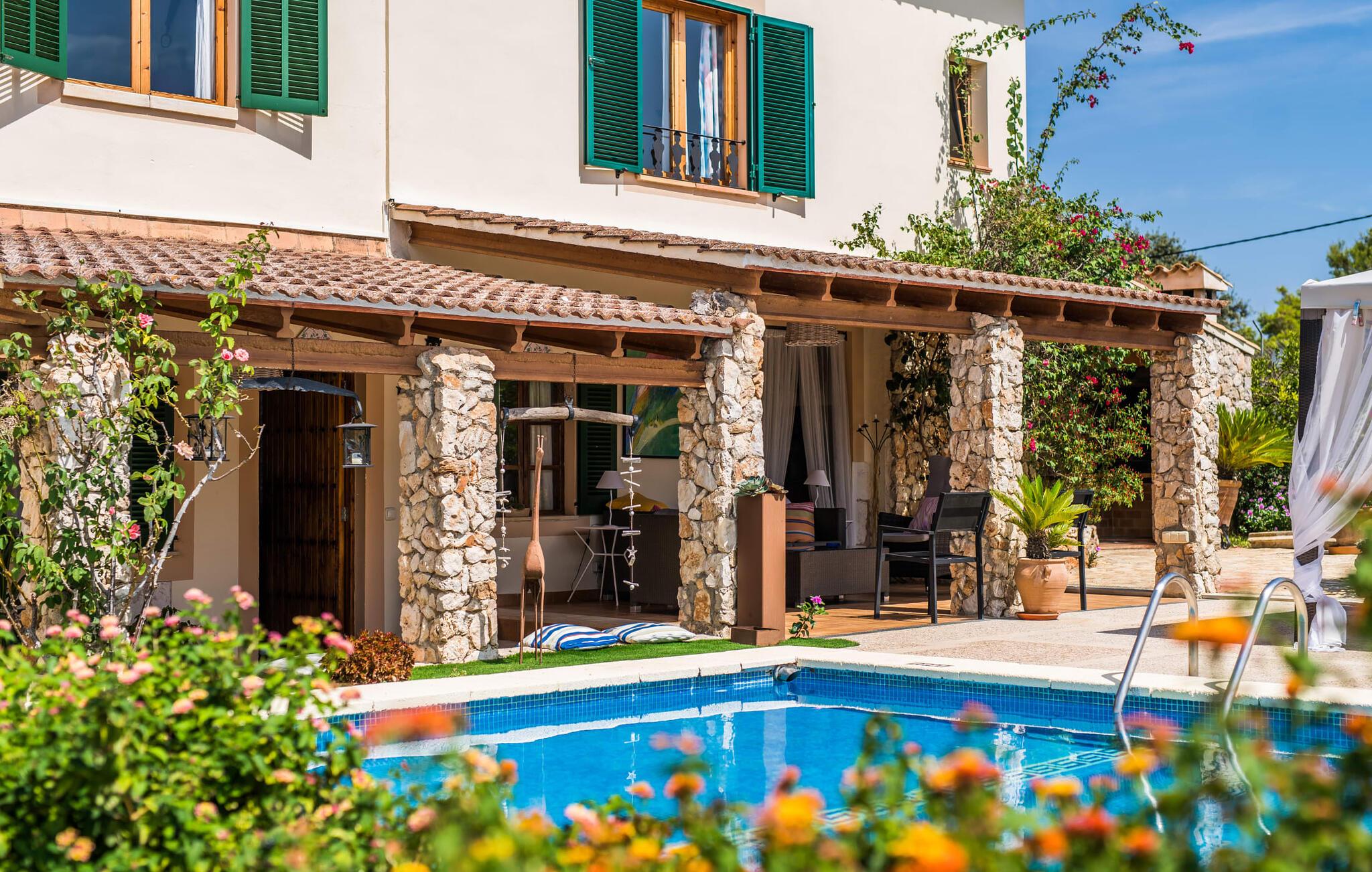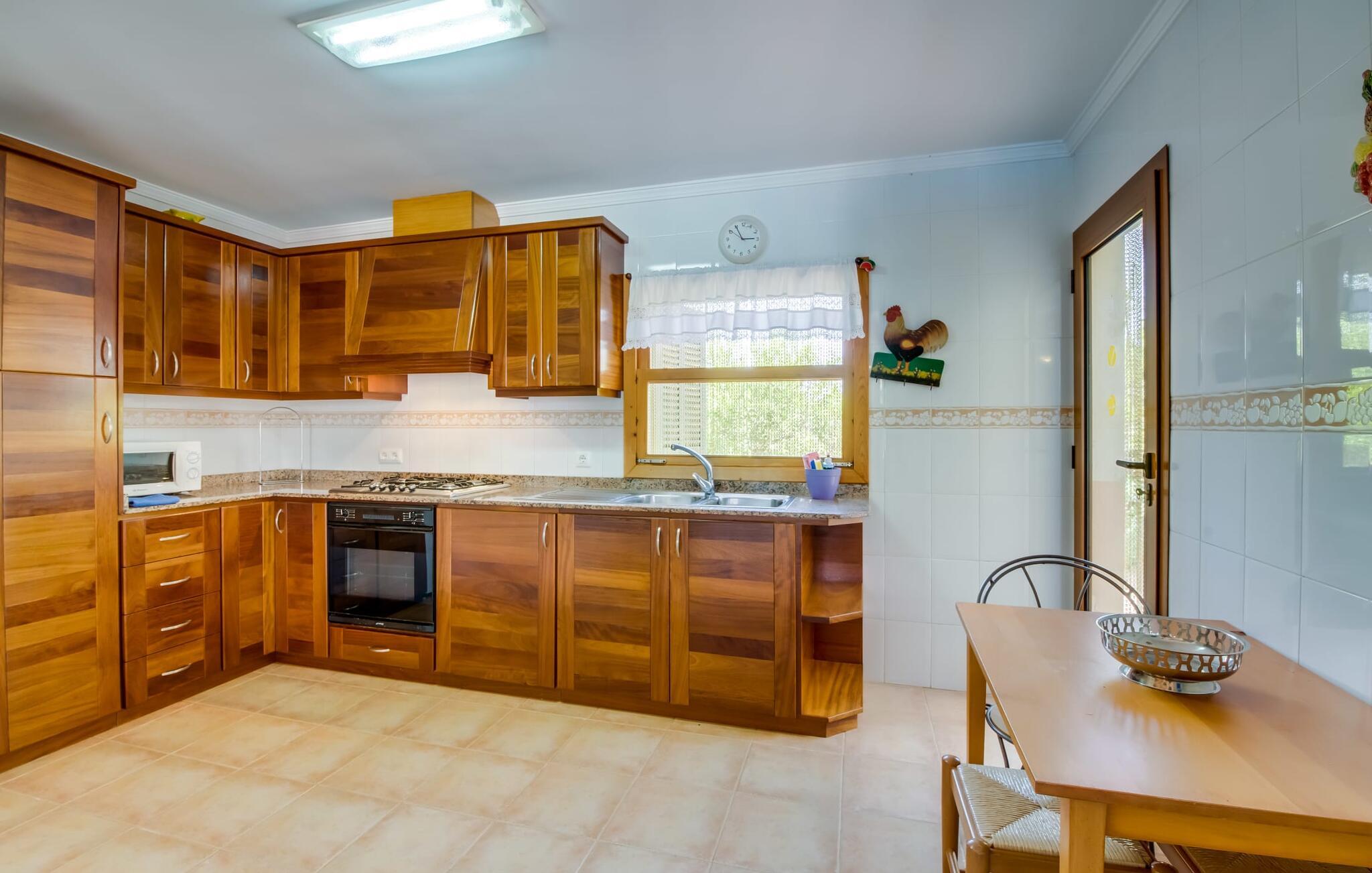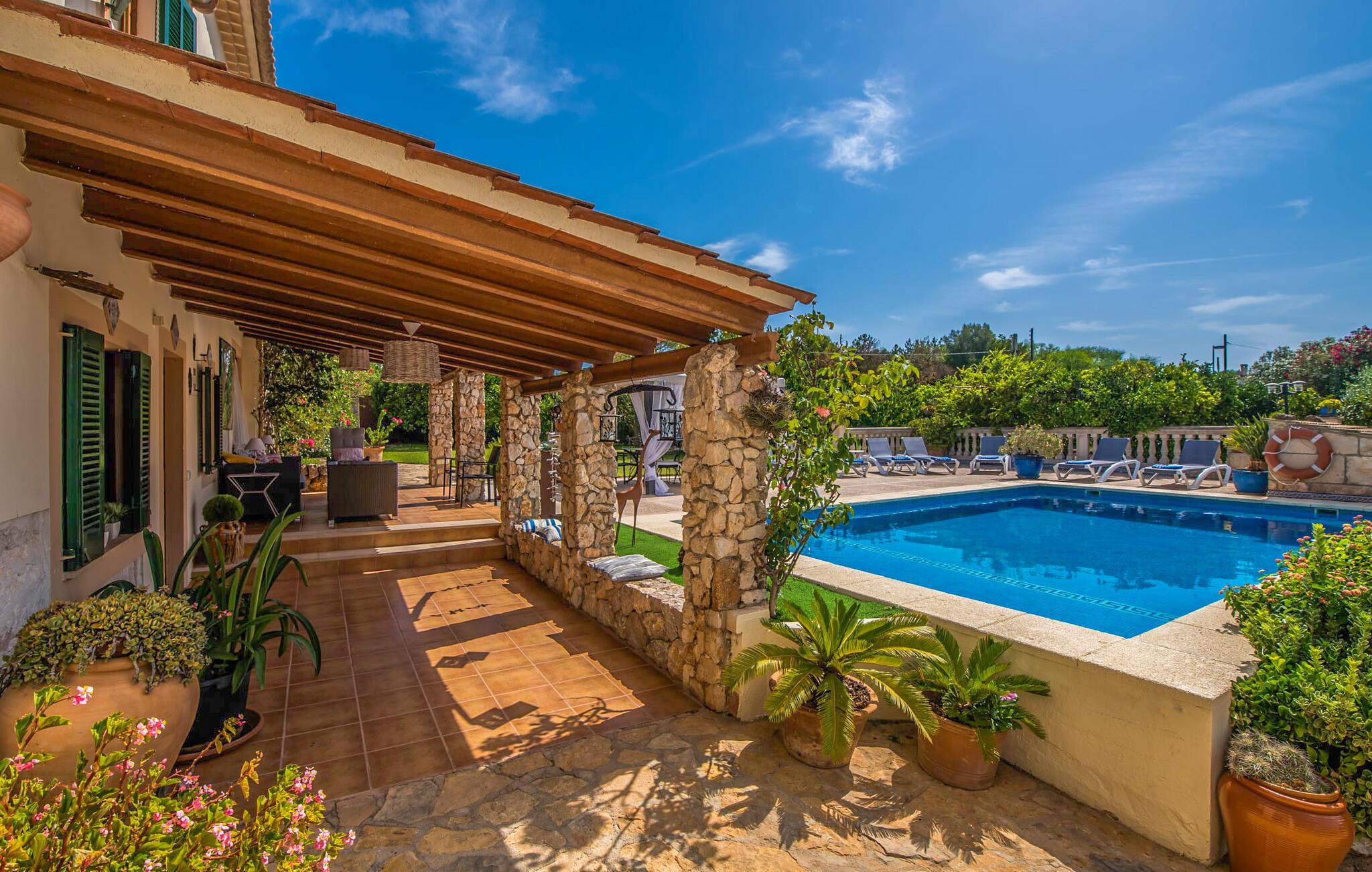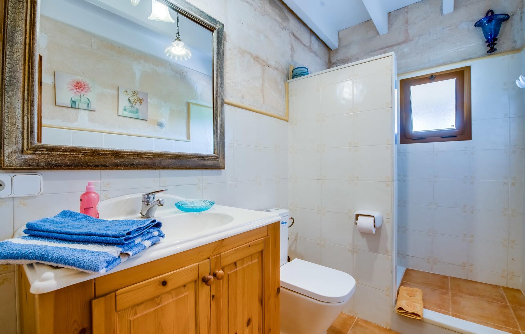 Fincaen "Comuna de Can Rius" er et charmerende feriehus i udkanten af landsbyen Muro på den nordlige del af Mallorca. Det fungerer som en fremragende base for at udforske øen, samtidig med at det giver et afslappende miljø. Ejendommen har forskellige terrasseområder og en balkon udstyret med et stort spisebord og komfortable liggestole, så gæsterne kan nyde både solrige og skyggefulde områder. Fincaen har en pool, der nyder godt af sydorientering og er derfor ideel til solbadning. Et udendørs køkken er tilgængeligt for dem, der ønsker at tilberede måltider, der kan nydes sammen under stjernerne. Den store grund er dekoreret med talrige træer, perfekt til afslappede gåture. Gæsterne kan bekvemt parkere deres lejebiler på gaden foran huset. Det indre af huset har et klassisk layout, forstærket af traditionelle mallorcanske møbler og moderne bekvemmeligheder, hvilket skaber en indbydende atmosfære. I stueetagen er der åbent indgangsparti, opholds- og spisestue samt soveværelse med badeværelse. Der er yderligere soveværelser ovenpå, hver med sit eget badeværelse, hvilket sikrer privatlivets fred for alle gæster. Samlet set tilbyder fincaen en blanding af komfort, stil og autenticitet, hvilket gør den til det ideelle valg til en ferie på Mallorca. Fincaen "Comuna de Can Rius" ligger i udkanten af Muro i en sydlig beliggenhed. Vejen, der blandt andet fører til den 11,4 km lange Alcúdia-bugt, kan høres akustisk afhængig af vindretningen. Butikker og restauranter ligger inden for gåafstand. El til opvarmning opkræves på stedet, kontant i vintermånederne.