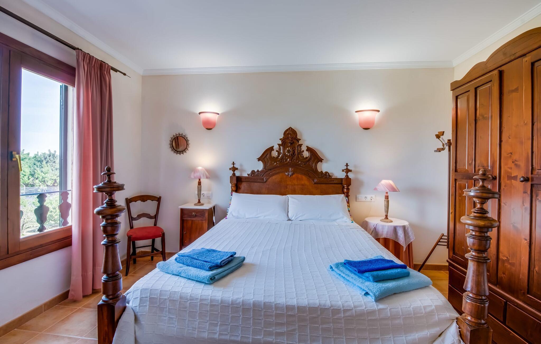 Fincaen "Comuna de Can Rius" er et charmerende feriehus i udkanten af landsbyen Muro på den nordlige del af Mallorca. Det fungerer som en fremragende base for at udforske øen, samtidig med at det giver et afslappende miljø. Dette er et feriehus i Fincallorca. Ejendommen har forskellige terrasseområder og en balkon udstyret med et stort spisebord og komfortable liggestole, så gæsterne kan nyde både solrige og skyggefulde områder. Fincaen har en pool, der nyder godt af sydorientering og er derfor ideel til solbadning. Et udendørs køkken er tilgængeligt for dem, der ønsker at tilberede måltider, der kan nydes sammen under stjernerne. Den store grund er dekoreret med talrige træer, perfekt til afslappede gåture. Gæsterne kan bekvemt parkere deres lejebiler på gaden foran huset. Det indre af huset har et klassisk layout, forstærket af traditionelle mallorcanske møbler og moderne bekvemmeligheder, hvilket skaber en indbydende atmosfære. I stueetagen er der åbent indgangsparti, opholds- og spisestue samt soveværelse med badeværelse. Der er yderligere soveværelser ovenpå, hver med sit eget badeværelse, hvilket sikrer privatlivets fred for alle gæster. Samlet set tilbyder fincaen en blanding af komfort, stil og autenticitet, hvilket gør den til det ideelle valg til en ferie på Mallorca. Fincaen "Comuna de Can Rius" ligger i udkanten af Muro i en sydlig beliggenhed. Vejen, der blandt andet fører til den 11,4 km lange Alcúdia-bugt, kan høres akustisk afhængig af vindretningen. Butikker og restauranter ligger inden for gåafstand. El til opvarmning opkræves på stedet, kontant i vintermånederne.