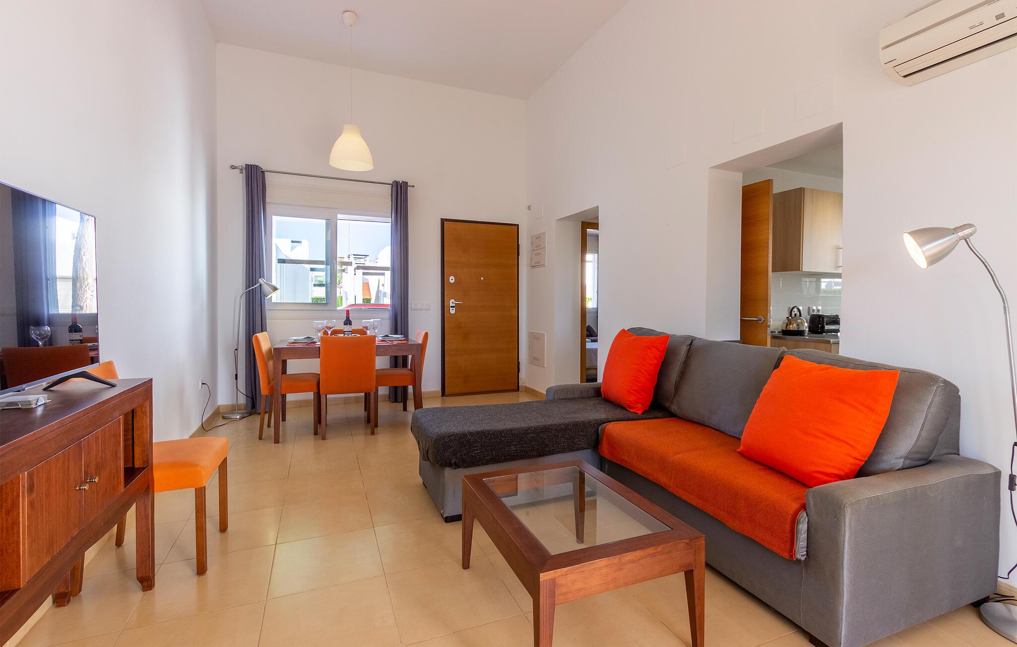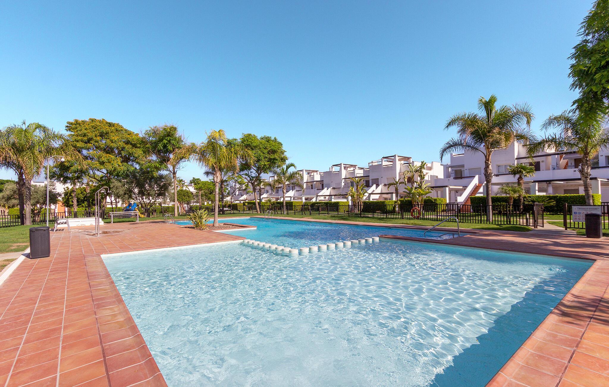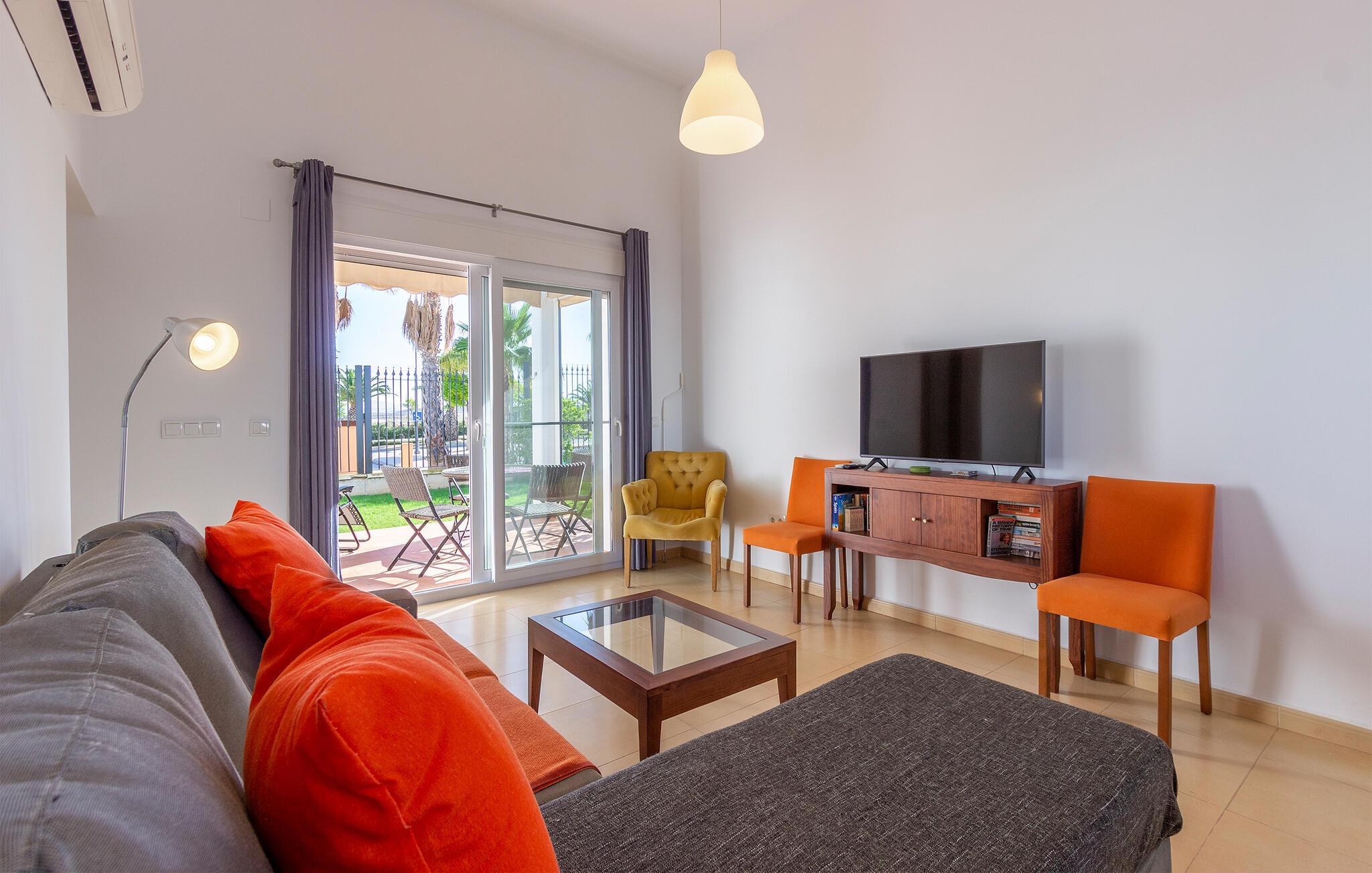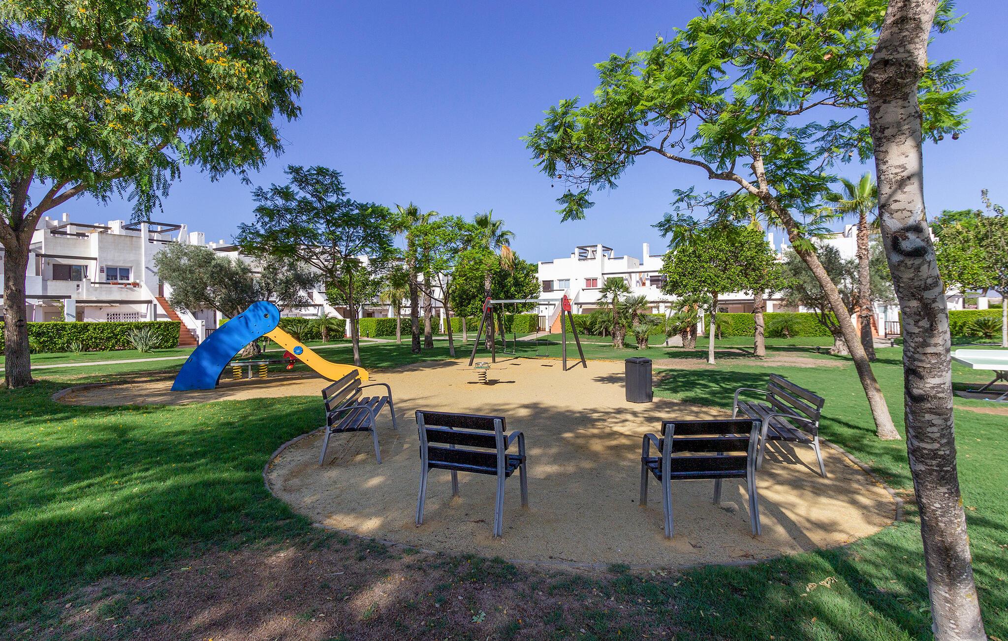 Glæd jer til en skøn ferie i dette komfortable feriehus med fælles pool. Føl jer hjemme i de indbydende værelser Med de moderne møbler og smukke farveaccenter er huset det ideelle sted for en dejlig pause, især hvis I elsker golf. Nyd en smuk udsigt over det fri, så snart I vågner. Efter jeres aktiviteter kan I føle jer godt tilpas i stuen, som lægger op til at spise sammen og slappe af. Efter at have forfrisket jer selv i den rummelige pool, kan I nyde solen på terrassen, eller måske tilbringe varme sommeraftener her med kolde drikkevarer og et godt måltid fra grillen. Kun få skridt tager jer til golfbanen. Tag til havet for en dag for at nyde solen og stranden og udforske det omkringliggende område. Besøg de romerske miner i Coto Fortuna eller Castillo de los Vélez. En gåtur gennem den gamle bydel i Mazarrón med sine charmerende gyder og pladser er også det værd.