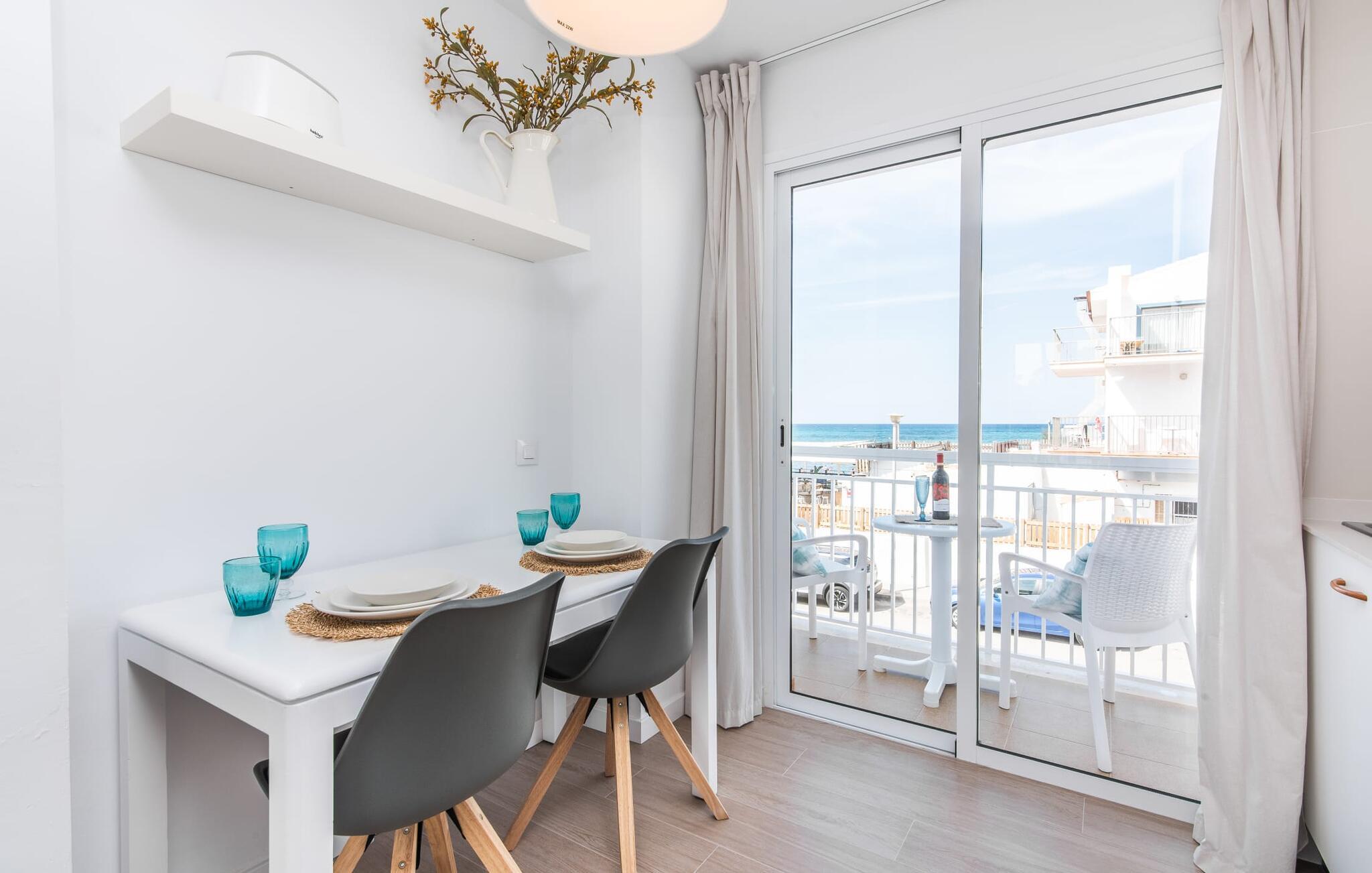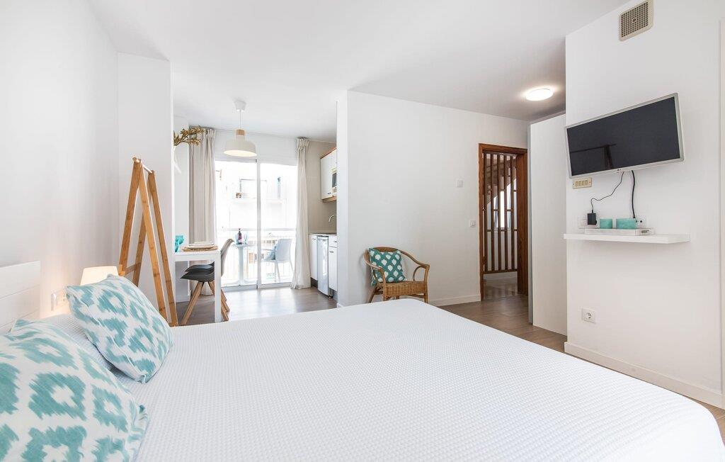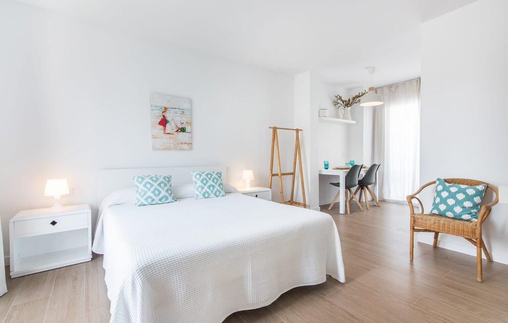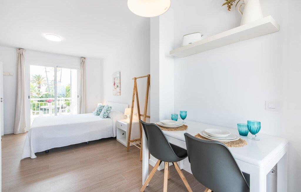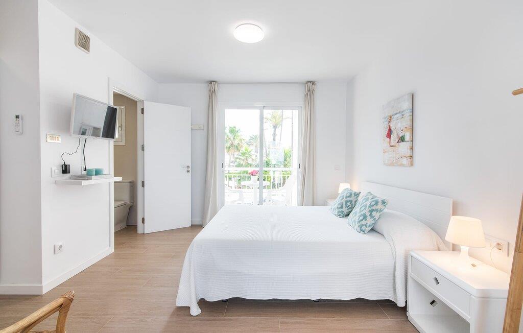 To venner eller et par, der ønsker at være tæt på stranden og have alle bekvemmeligheder inden for gåafstand, vil finde en behagelig flugt i denne smukke ferielejlighed på Mallorca. Fra den lille østvendte altan, hvor I kan få en skøn morgenmad for to ved solopgang, har I udsigt til stranden kun få skridt væk, det turkise hav og Victoria-halvøen i baggrunden. Havsiden er næsten lige ved jeres fødder. Takket være et sofistikeret rumkoncept byder ferielejligheden "Confluentia Playa 10" på en hyggelig opholdsstue med masser af naturligt lys. Det er i åbent plan og består af et velholdt sove- og spiseområde udstyret med tysk og engelsk satellit-tv og integreret køkken med direkte udgang til altan. Dette er et fantastisk sted at tilbringe tid sammen indendørs og ideelt til selvforplejning. Masser af hvidt og nogle farverige accenter skaber en frisk, sommerlig flair. Tilstedeværelsen af varme og aircondition sikrer perfekte indendørstemperaturer til enhver tid. Et smart, moderne badeværelse med brusekabine fuldender den indbydende boligkomfort i denne ferielejlighed for to på Mallorca. Den moderne ferielejlighed "Confluentia Playa 10" er beliggende nær centrum af Can Picafort i det nordlige Mallorca. I den mangfoldige landsby finder I restauranter, barer, diskoteker og adskillige indkøbsmuligheder. Sandstranden ligger inden for gåafstand, og Alcúdia-bugten ligger kun få meter væk. Området omkring Can Picafort er også ideelt til cykling.