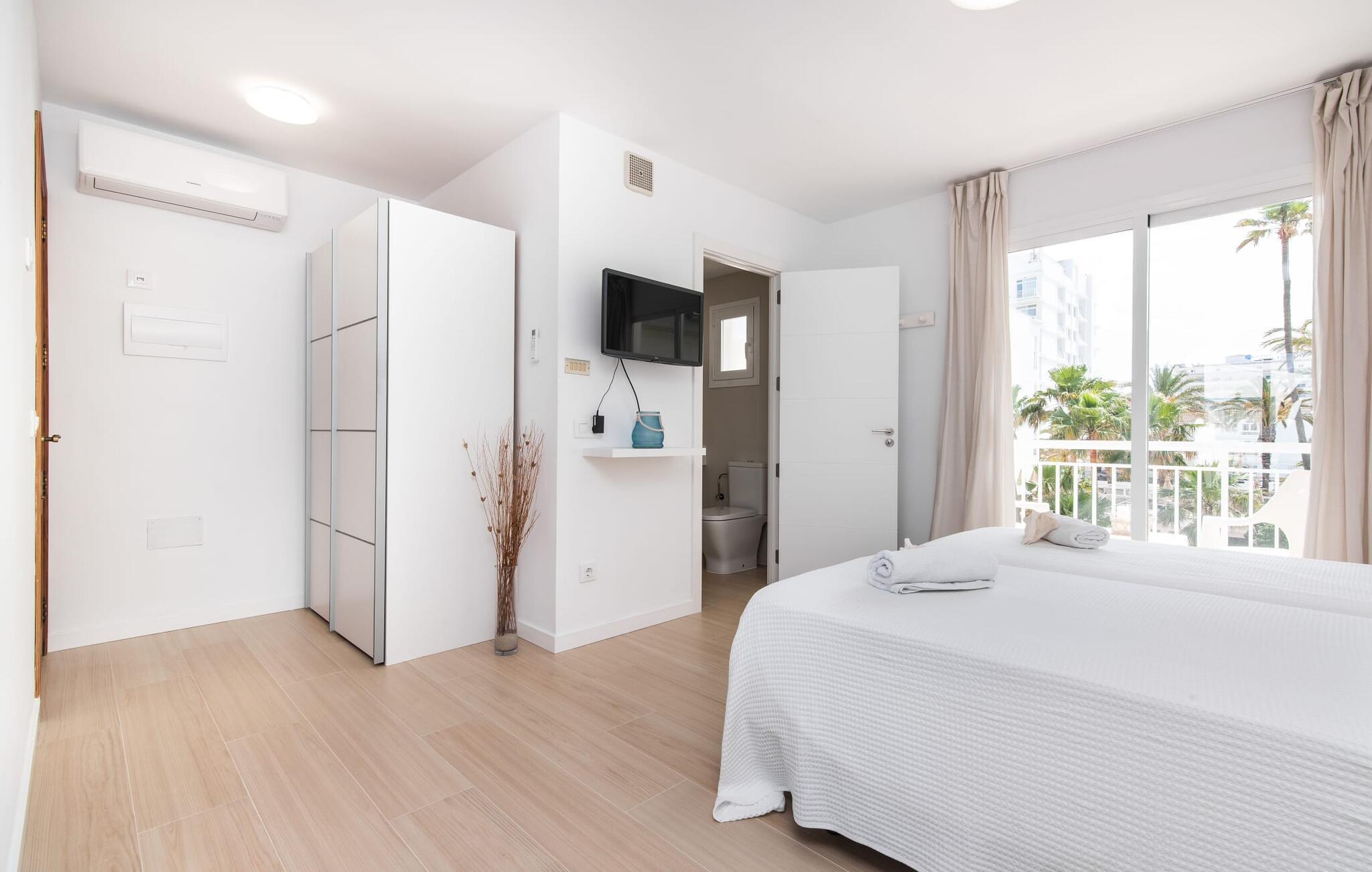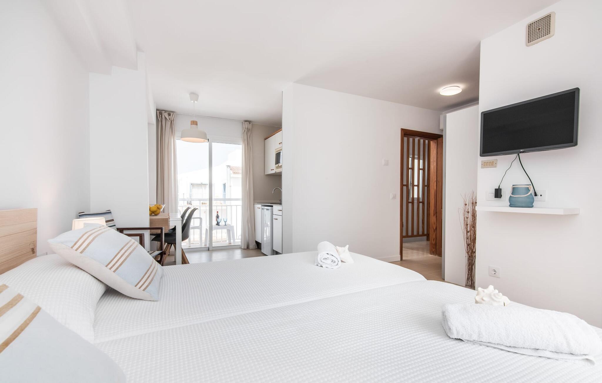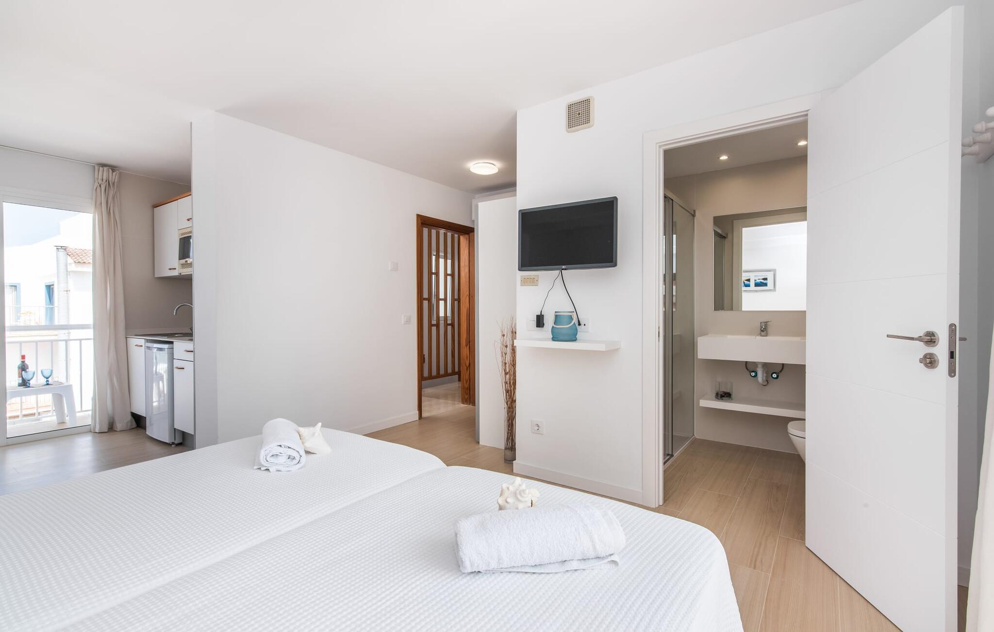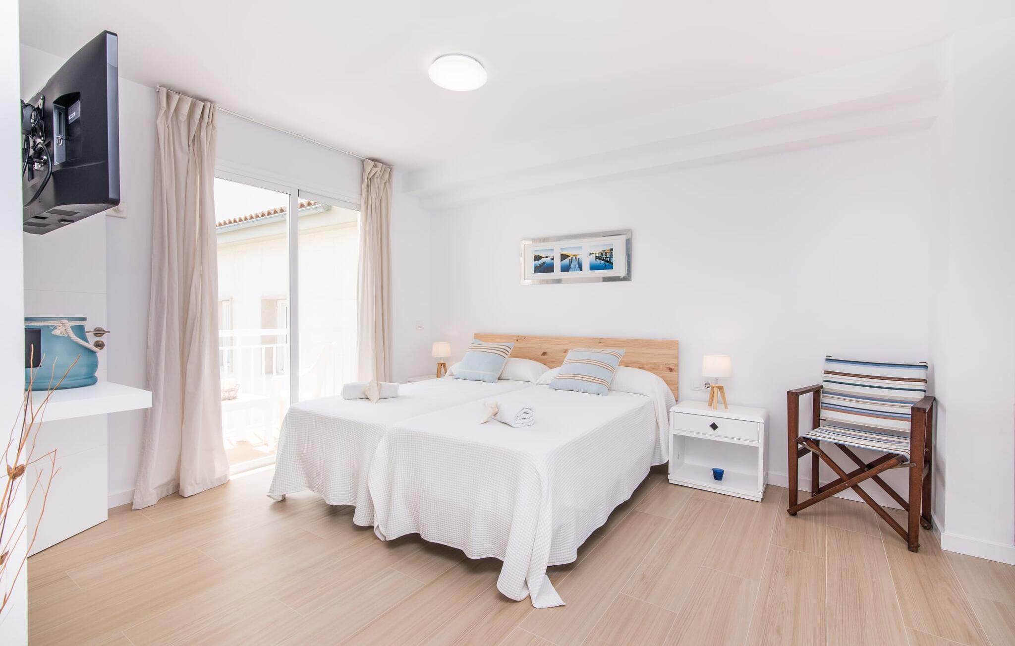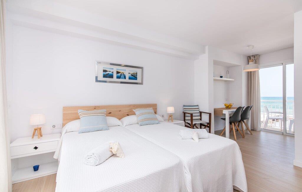 To venner eller et par, der ønsker at være tæt på stranden og have alle bekvemmeligheder inden for gåafstand, vil finde en behagelig flugt i denne smukke ferielejlighed på Mallorca. Fra den lille østvendte altan, hvor man kan spise en dejlig morgenmad for to ved solopgang, har man udsigt til stranden kun få skridt væk, det turkise hav og Victoriahalvøen i baggrunden. Havsiden er næsten lige ved jeres fødder. Takket være et sofistikeret rumkoncept byder ferielejligheden "Confluentia Playa 12" på en hyggelig opholdsstue med masser af naturligt lys. Det er i åbent plan og består af et velholdt sove- og spiseområde udstyret med tysk og engelsk satellit-tv og integreret køkken med direkte udgang til altan. Dette er et fantastisk sted at tilbringe tid sammen indendørs og ideelt til selvforplejning. Masser af hvidt og nogle farverige accenter skaber en frisk, sommerlig flair. Tilstedeværelsen af varme og aircondition sikrer perfekte indendørstemperaturer til enhver tid. Et smart, moderne badeværelse med brusekabine fuldender den indbydende boligkomfort i denne ferielejlighed for to på Mallorca. Den moderne ferielejlighed "Confluentia Playa 12" er beliggende nær centrum af Can Picafort og direkte på Mallorcas nordkyst. I denne smukke landsby finder I restauranter, barer, diskoteker og en række indkøbsmuligheder. Sandstranden ligger inden for gåafstand, og Alcúdia-bugten ligger kun få meter væk. Området omkring Can Picafort er også ideelt til cykling.