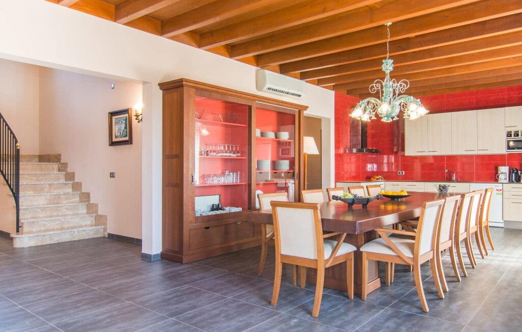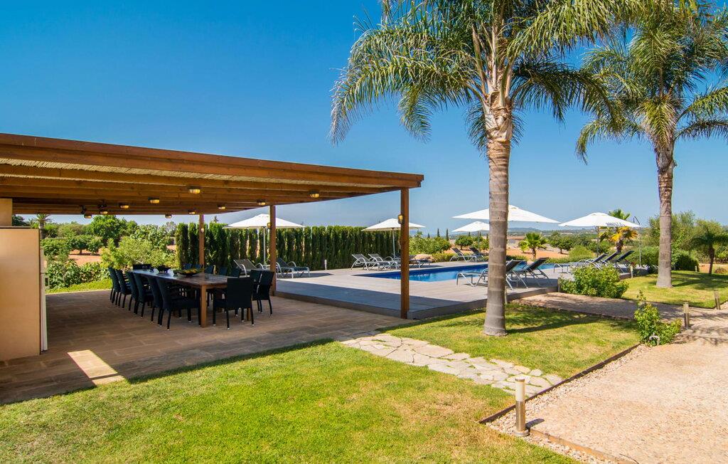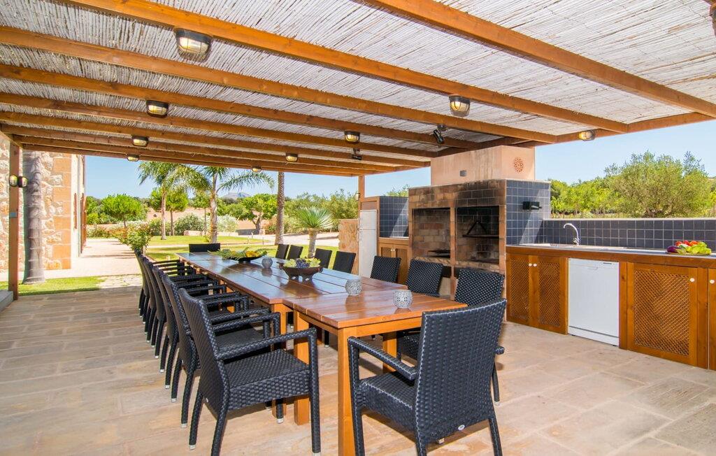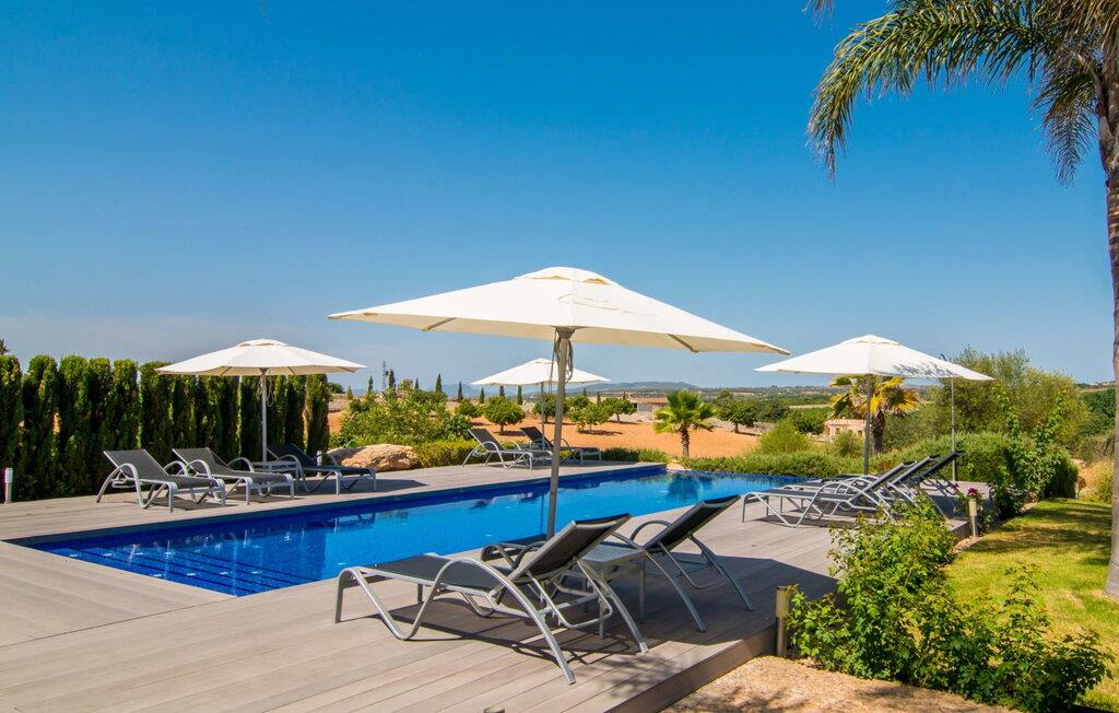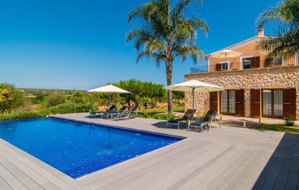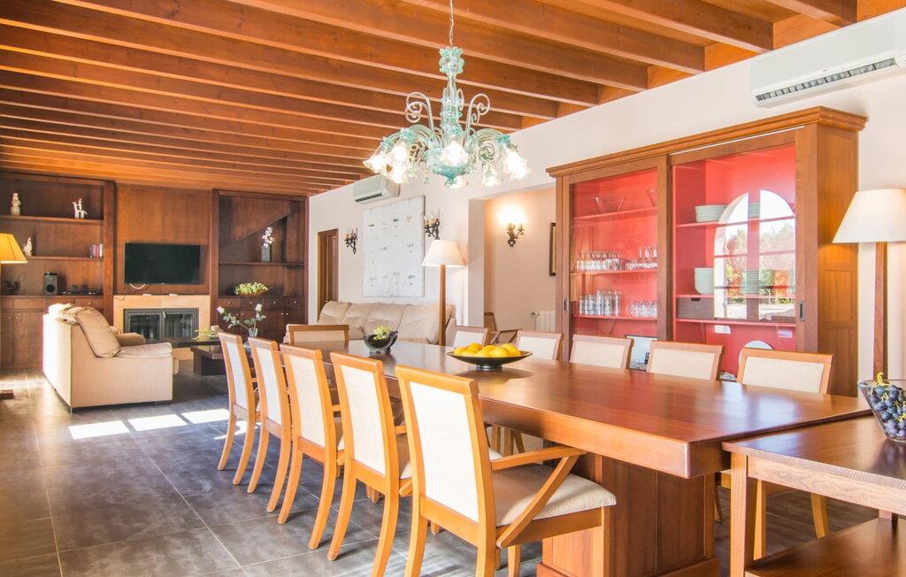 Denne luksuriøse villa "Conies Salvia" er beliggende på en 20.000 m² stor grund mellem Manacor og Colonia Sant Pere og tilbyder et tilflugtssted, der er uden sidestykke på Mallorca. Bygget i 2010 i udkanten af Son Cifre-naturreservatet, kombinerer det moderne design med fuldstændig privatliv. Store terrasser omgiver villaen og fører til et separat poolområde med en velplejet græsplæne og modne træer, hvilket skaber et roligt miljø, hvor man kan slappe af. Det overdækkede udekøkken med grill og rummeligt spisebord er perfekt til at nyde måltider på lune aftener. Indvendigt har villaen rummelige, moderne værelser. Opholdsstuen har komfortable sofaer, pejs og fladskærms-tv. Det fuldt udstyrede køkken med stilfulde røde fliser tilbyder alle de faciliteter, I har brug for til en ferie med selvforplejning. I stueetagen er der tre soveværelser med hvert sit badeværelse. Ovenpå er der fire store suiter med dobbeltsenge (1,8 x 2 m), sofa, fladskærms-tv, pengeskab, minibar og luksuriøst badeværelse med spabad. Med centralvarme overalt er denne villa det ideelle tilflugtssted for komfort året rundt. Luksusvillaen ligger midt i den naturligt smukke Son Cifre-region i den østlige del af Mallorca. Dette naturreservat strækker sig fra Artà til Manacor. Hvis I vil shoppe, har Manacor flere store supermarkeder og meget hyggelige restauranter, både mallorcanske og internationale. Med en lejebil kan I nemt og hurtigt nå strande i sydøst, herunder Cala Varquez, eller i nordøst, herunder Son Serra de Marina. Bugten Colonia de Sant Pere, en lille rolig fiskerby, ligger kun 15 minutters kørsel derfra.