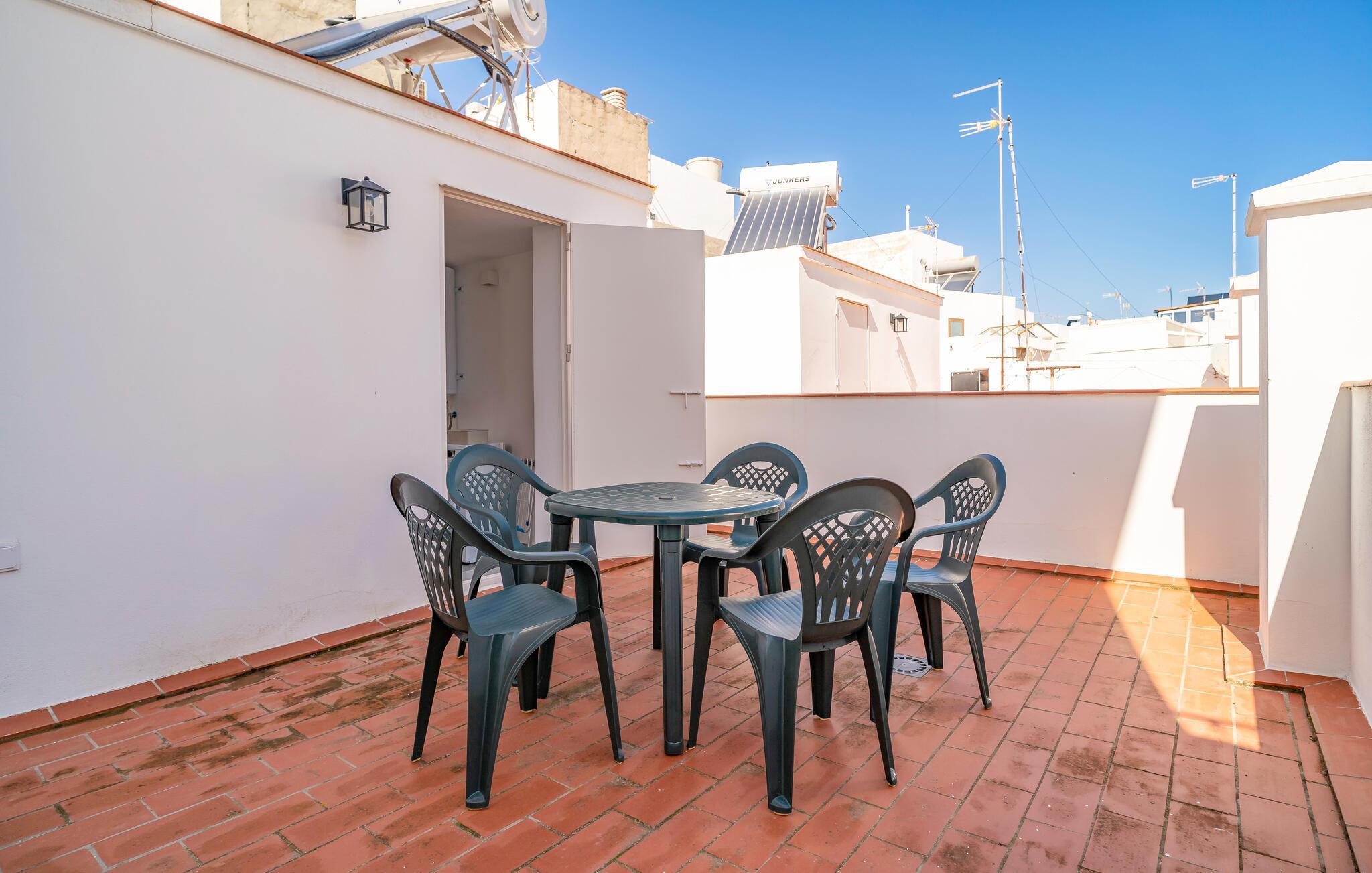 Dette hyggelige feriehus i to etager er perfekt til dig og dine kære, så I kan nyde ferien fuldt ud. I den hjemlige stue kan I slappe af, eller I kan tilberede lækre måltider sammen i det veludstyrede køkken. Den rolige gårdhave er ideel til morgenmad eller en lille pause i løbet af dagen, og på tagterrassen kan I nyde aftenen og lade dagen rinde ud.