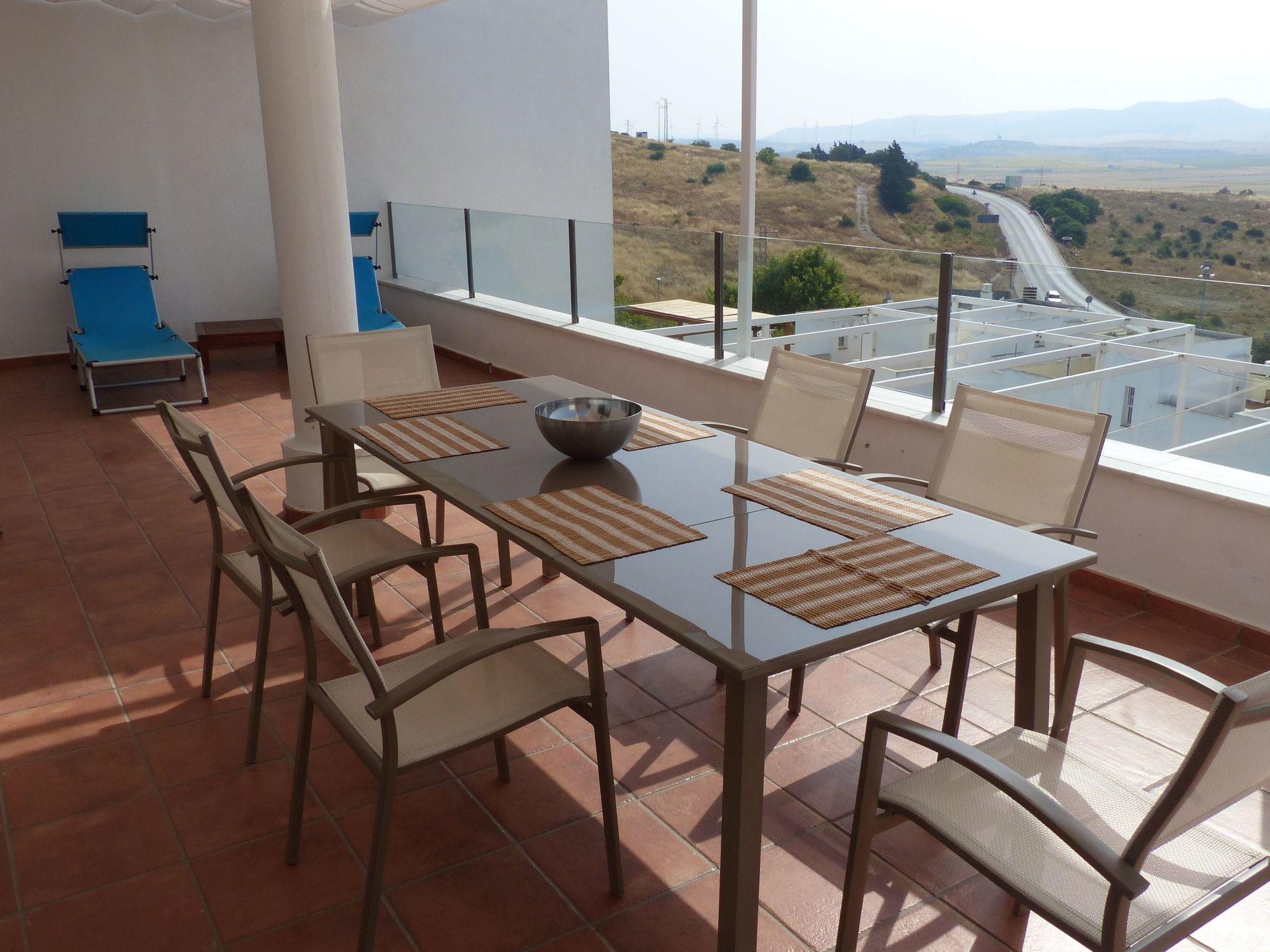This holiday flat is located in a modern, bright and comfortable newly built house. It is in an elevated position in a small housing complex on the southern edge of Conil de la Frontera. It is located on the first and top floor.Lovingly furnished holiday flat with a large patio in a central location on the Rio Salado. Enjoy the beautiful views over the valley to the Atlantic Ocean and the mountains and relax by the beach