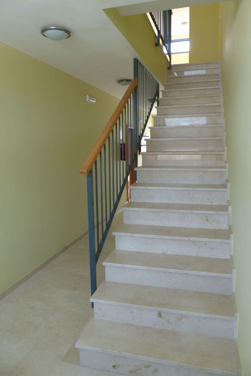 The living/dining room has two sliding glass doors, granting access to the 40 m² south easterly main patio. It offers stunning views. On a clear day, you can even see the Atlas Mountain Range. Enjoy beautiful views from anywhere in the apartment. The patio is furnished with two sun loungers and a small table. A glass table and six chairs under an awning let you enjoy your meals al fresco. Each room has a private patio. The staircase or the elevator grants access to the garden, only accessible to residents of the small complex. An intercom lets you manage the front door. Parking is available in the underfloor garage. The elevator takes you from the parking garage via the pool area to the apartment. The gate is electronically controlled.