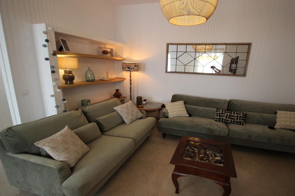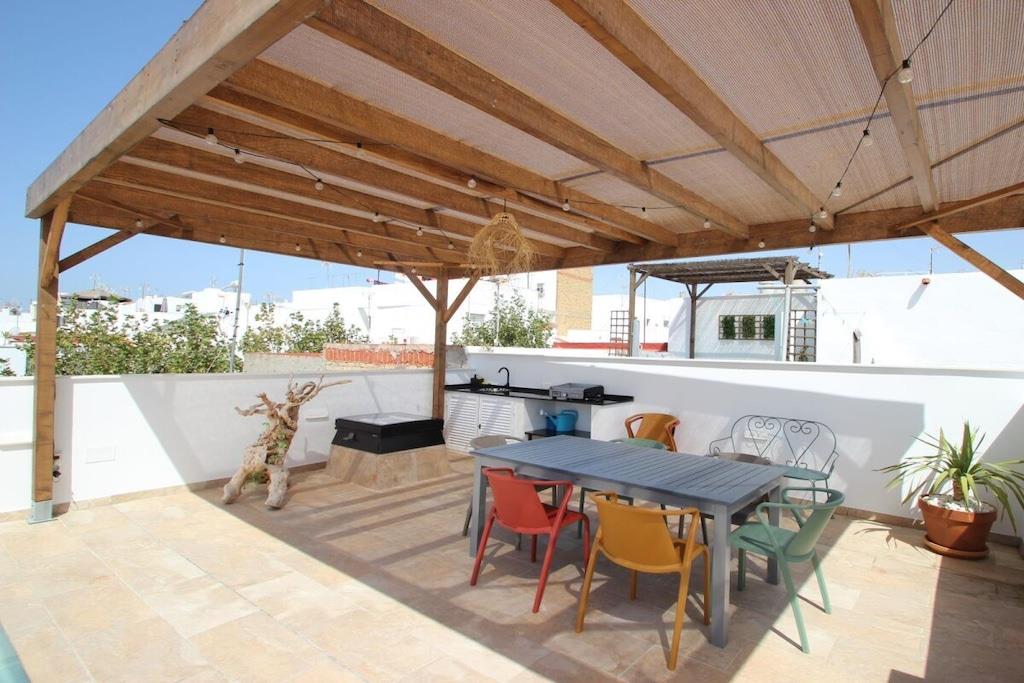 Velkommen til dette charmerende feriehus i den maleriske landsby Conil! Denne feriebolig er det perfekte sted for dem, der søger en ideel kombination af komfort, beliggenhed og betagende udsigt. Det toetagers hus har plads til op til 4-6 personer og tilbyder en uforglemmelig indkvarteringsoplevelse. I stueetagen mødes du af en rummelig, åben opholdsstue. Det åbne køkken er fuldt udstyret med moderne apparater såsom ovn, opvaskemaskine, mikrobølgeovn, kaffemaskine og alt andet nødvendigt køkkenudstyr. Den tilstødende spisestue og opholdsstue skaber et hyggeligt rum til fælles øjeblikke og afslapning. Aircondition på denne etage sikrer en kølig og behagelig atmosfære. Takket være Wi-Fi-forbindelsen kan du holde dig forbundet med omverdenen under dit ophold. Der er også et Smart TV. På denne etage finder du også et praktisk toilet, der gør dit ophold endnu mere behageligt. På første sal finder du tre dejlige soveværelser: to er møbleret med dobbeltsenge (1,50 x 2 m), mens det tredje soveværelse har to enkeltsenge (0,90 x 2 m). Alle soveværelser har loftsventilatorer, perfekt til de varmeste nætter. Der er også et moderne badeværelse med bruser på denne etage! Husets sande perle ligger på første sal, hvor en storslået terrasse med havudsigt venter på dig. Forestil dig at starte din morgen med morgenmad under åben himmel ved havebordet under det overdækkede område eller slappe af på liggestolene, mens du nyder havbrisen og den smukke udsigt. Du kan også tilberede lækre grillretter og måltider under åben himmel på den elektriske grill. Der er en udendørs bruser til afkøling på varme dage.