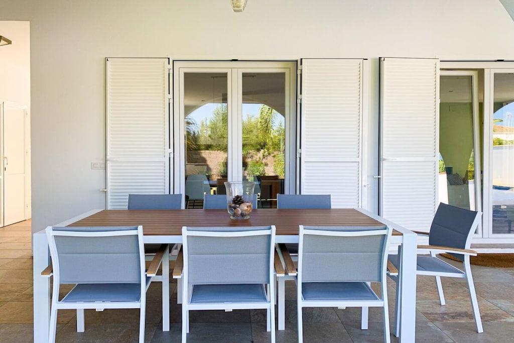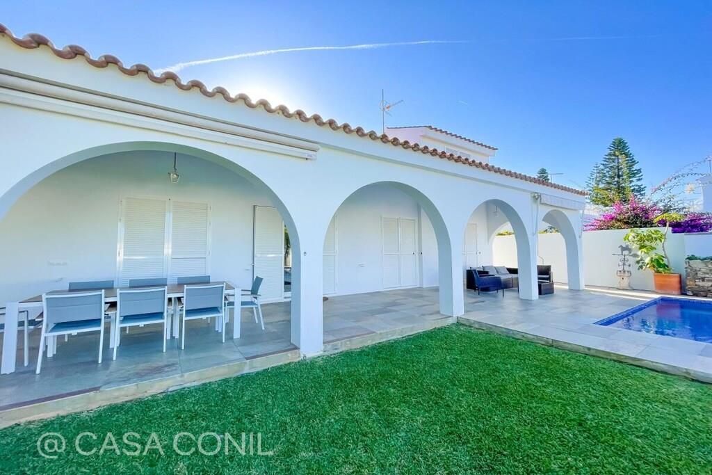 Denne poolvilla ligger i det eksklusive boligområde Fuente del Gallo. Den er nyrenoveret i moderne stil og lader ikke meget tilbage at ønske, hvad angår beliggenhed og faciliteter. Et særligt højdepunkt er den 11 meter lange pool og den rummelige veranda med grillplads og komfortable loungemøbler. Med fire soveværelser og to stuer tilbyder villaen rigelig plads til op til otte personer. Den smukke sandstrand Fuente del Gallo ligger kun omkring 200 meter fra huset. Der er 3 airconditionanlæg (i soveværelset, centralt placeret i gangen til de andre soveværelser, og i stuen), Wi-Fi, 2 satellit-tv'er, et topmoderne køkken med kogeø, induktionskogeplade, opvaskemaskine, ovn i arbejdshøjde, mikrobølgeovn, Nespresso-maskine osv. To soveværelser med dobbeltsenge (henholdsvis 1,80 m og 1,60 m brede og 2 m lange) og to soveværelser med to enkeltsenge hver (0,90 m x 1,90 m), så det er velegnet til op til 8 personer. To moderne badeværelser med store regnbrusere. To stuer med sofaer, fladskærms-tv'er, dvd-afspillere og iPad-dockingstationer. Havudsigt fra tagterrassen, som også har en skyggefuld veranda og et chill-out-område. En 11 meter lang (x 3,5 m bred) swimmingpool ligger foran terrassen. En solopvarmet udendørs bruser er tilgængelig i poolområdet. Haven har stole, borde, liggestole, en græsplæne og subtropiske planter. Huset er i alt cirka 180 kvadratmeter stort, plus 40 kvadratmeter overdækkede terrasser. Ejendommen måler cirka 700 kvadratmeter. Ud over køkken og spisebord (til 8 personer) er der et udendørs køkken med en dejlig gasgrill. Huset er fuldt indhegnet og tilbyder fred og ro. Registreringsnummer: VFT/CA/00564