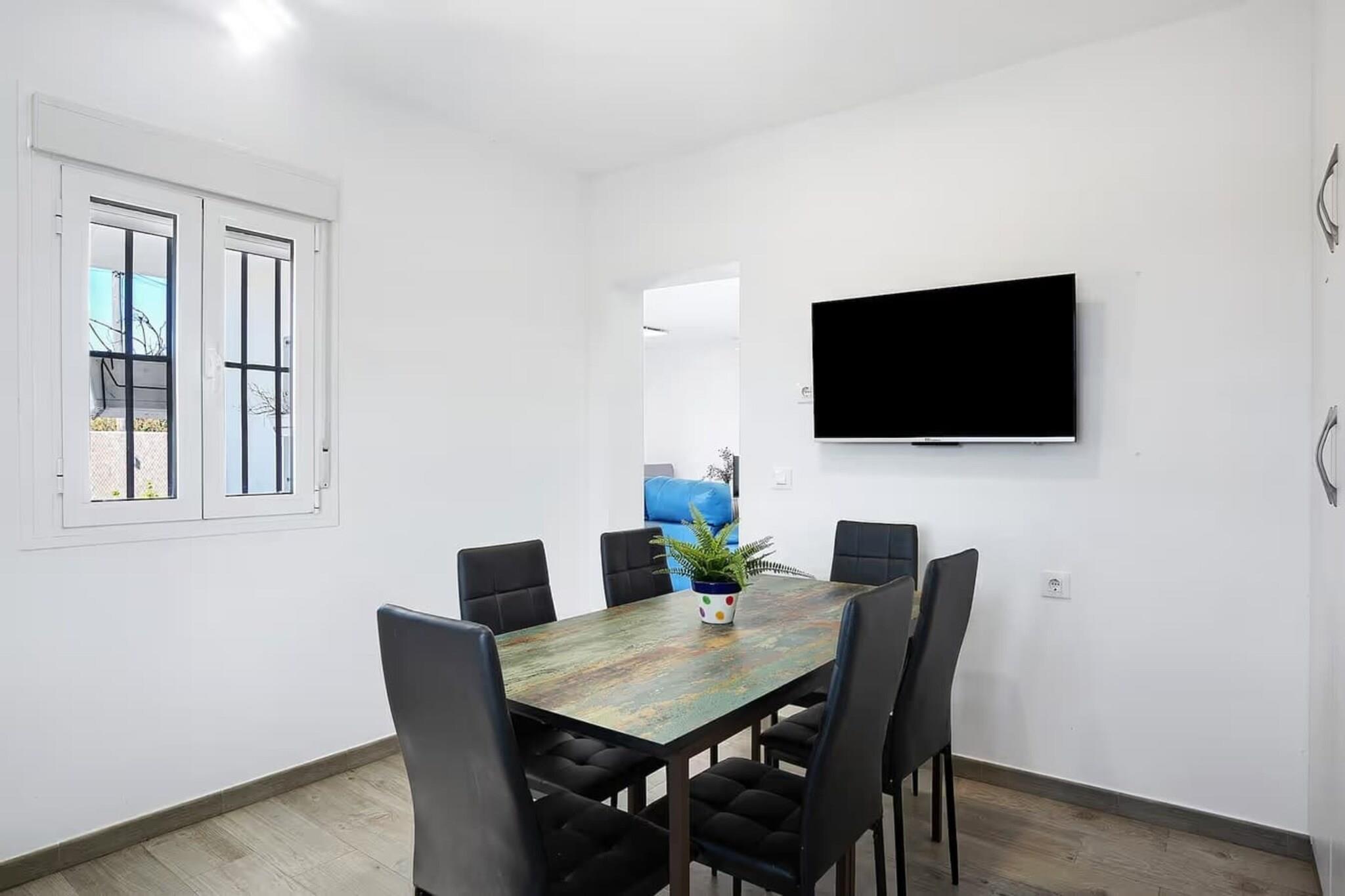 Nogle steder er skabt til at slappe af, andre til at lege, og denne villa giver dig begge dele. Forestil dig at køle af med en dukkert i poolen og derefter prøve kræfter med basketballkurven lige ved siden af vandet. Uanset om det er vandkamp med børnene, dovne eftermiddage i en hængekøje eller venskabelige spil, der varer til efter solnedgang, er hvert hjørne af dette hjem skabt til glæde. Villaen ligger på en privat, indhegnet grund, så fred og privatliv er garanteret. Haven er rummelig og indbydende med en veranda, der er perfekt til udendørs spisning, liggestole til dovne siestaer og et solbad til at friske sig op efter en svømmetur. Indvendigt er designet moderne, men alligevel varmt: en stue til filmaftener, et køkken udstyret med alt fra ovn til opvaskemaskine og tre soveværelser, der lover komfort ved slutningen af hver dag. Det store soveværelse har endda eget badeværelse og walk-in-closet, en lille luksus til din ferierutine. Det, der gør dette sted virkelig specielt, er, hvordan det blander hjemlig komfort med legesyge detaljer. Det er et sted, hvor familier kan sprede sig, venner kan dele latter, og par kan finde deres eget private hjørne. I nærheden, kun 10 minutter væk, inviterer strandene Los Bateles og La Fontanilla dig til at synke tæerne ned i det gyldne sand og se horisonten gløde i skumringen. Conils gamle bydel med sine tapasterrasser og hvidkalkede gader er perfekt til aftenvandringer. Golfspillere kan tage til Club de Golf Campano (12 km), mens naturelskere vil elske stierne i La Breña Naturpark og den vidtstrakte udsigt fra Kap Trafalgar.
