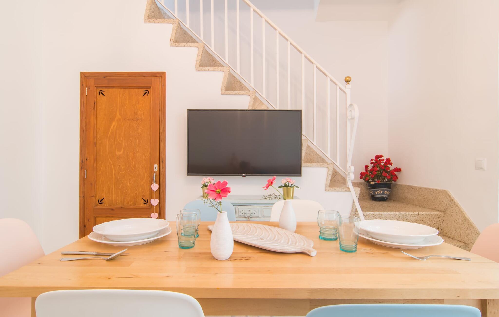 Casa Convent, et rækkehuss beliggenhed i hjertet af Alcudias historiske centrum og omgivet af middelalderlige mure, tilbyder en virkelig stemningsfuld ferie. Husets navn fremkalder en næsten monastisk følelse af velvære og ro. Og med rette: den idylliske tagterrasse udstråler afslapning på solrige, lune dage. Mens I kigger ud over de farverige hustage i den gamle bydel, kan I endda tilberede de første retter på grillen. I kan afslutte dagen i godt selskab med et glas vin, og om aftenen venter en gåtur og måske en romantisk middag. Fra huset kan I nå en af ??Alcudias fremragende restauranter i centrum på kun 3 minutters gang, der tilbyder både middelhavsmad og typisk mallorcansk mad. De robuste bymure lægger op til gåture, tilføjer et særligt præg til bybilledet og tilbyder udsigt over hele byen og den storslåede bugt.