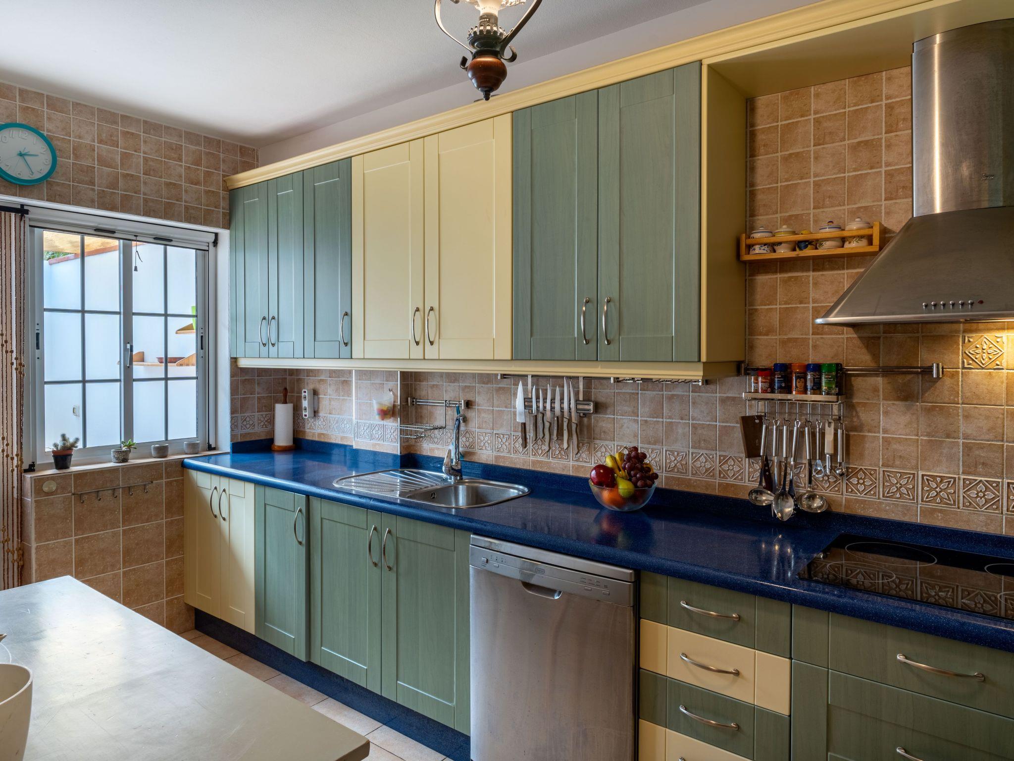The upper floor has a toilet, a large living room with Smart TV, access to international channels and internet with fiber optic 300 mg, from the living room we have direct access to the views that gives us this magnificent Villa Abora 2, a bright and glazed terrace of 70 square meters which we can open and close to taste. A spacious and fully equipped kitchen with ventilation and access to washing machine and drying area.