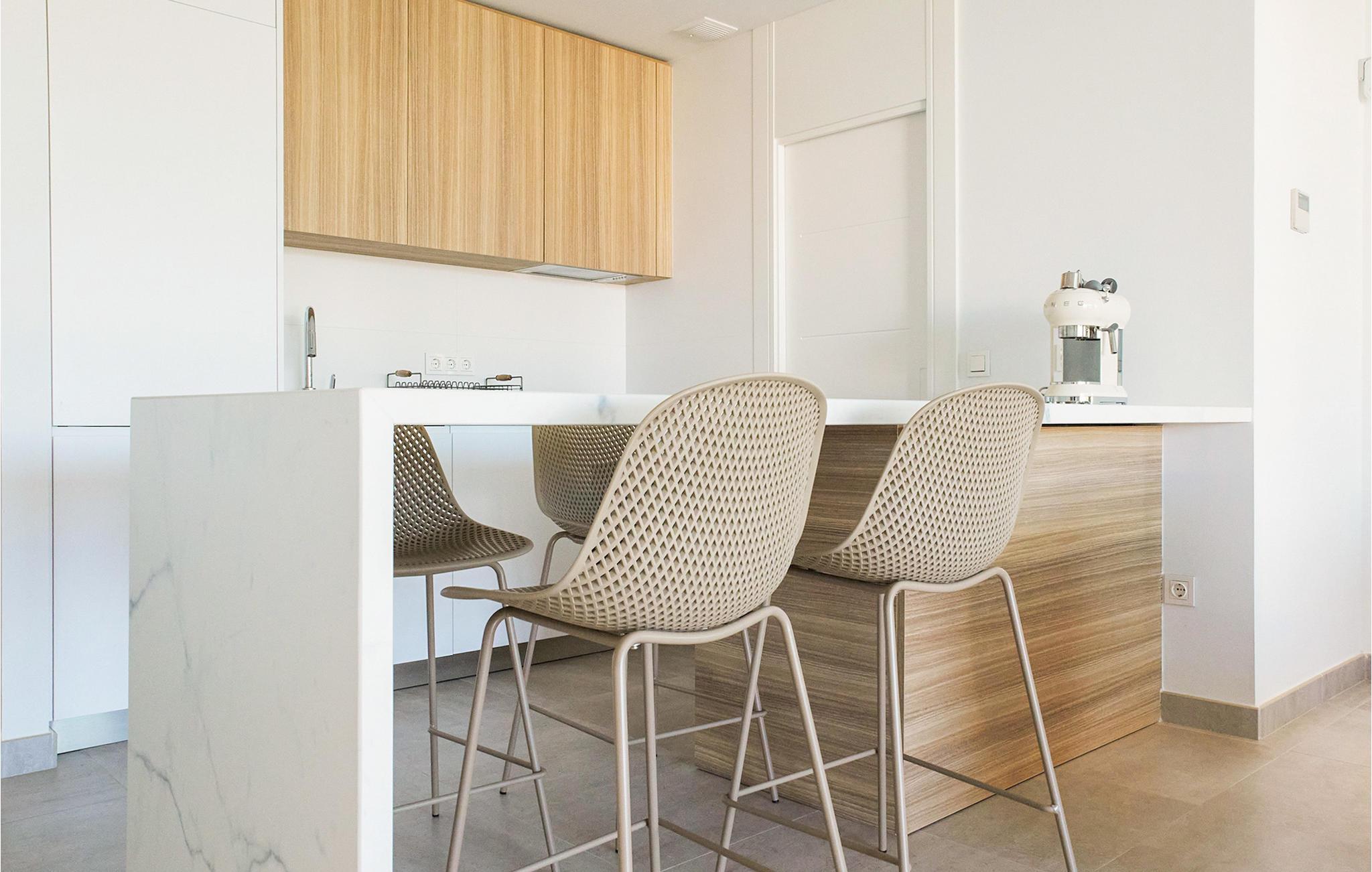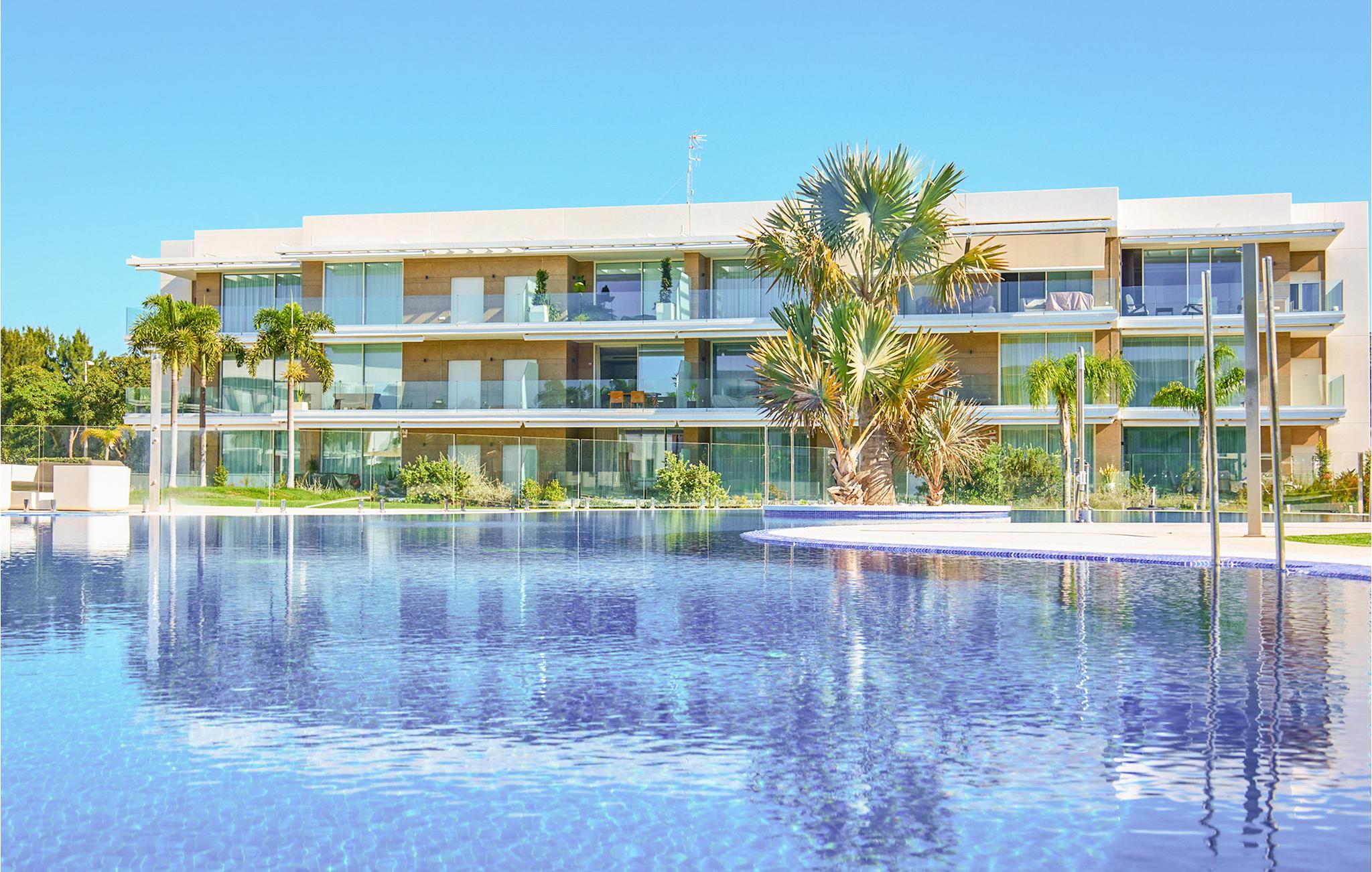 Velkommen til Costa Ballena, hvor denne moderne lejlighed venter sine gæster. I vil straks føle jer hjemme i de lyse og indbydende rum. Gulv-til-loft vinduer og i særdeleshed glasfronten i stuen sørger for masser af dagslys i lejlighedens indre. Den enkle, elegante indretning og subtile farvesammensætning gør ferielejligheden til et harmonisk sted, hvor I virkelig kan slappe af. I den åbne planløsning, som også rummer køkkenet, kan I lave mad sammen og dele dagens oplevelser, inden I spiser middag sammen. Efter en aktiv dag i naturen kan I slå jer ned i de komfortable sofaer og nyde tiden sammen. Træd direkte fra stuen ud på terrassen. Mens I solbader her, har I en flot udsigt over fællespoolen, og I kan beslutte, hvornår det er det bedste tidspunkt for en forfriskende dukkert.