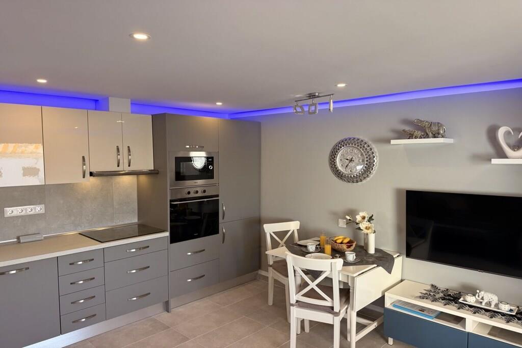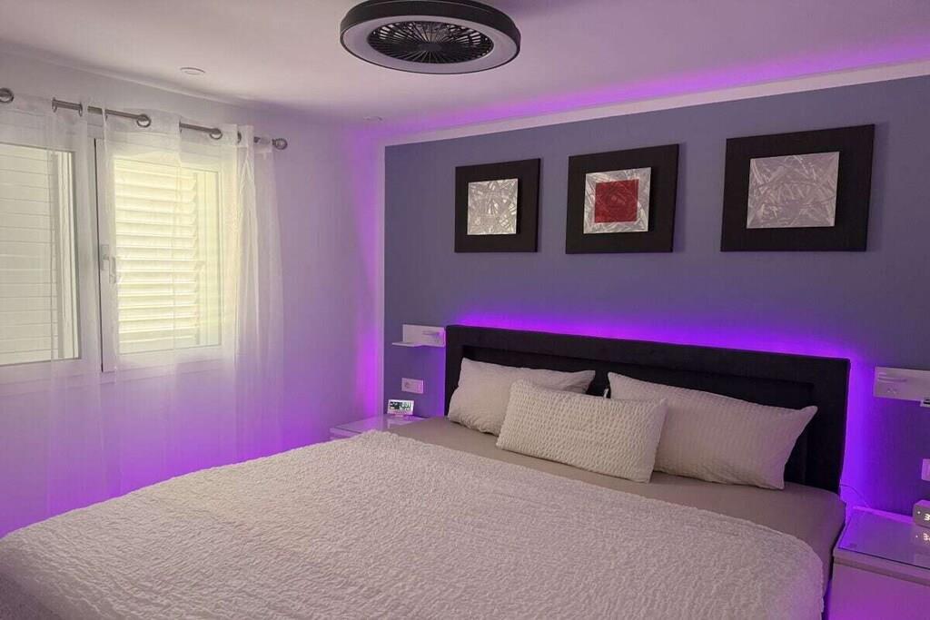 Ankom, tag en dyb indånding og nyd – den nyrenoverede Luna Fuerteventura ferielejlighed tilbyder en moderne atmosfære med gennemtænkte detaljer. Kun en kort gåtur fra den fine sandstrand tilbyder dit feriehus alt, hvad du behøver for et afslappende ophold. Nyd det nye badeværelse med luksuriøs regnbruser, tilbered måltider i det fuldt udstyrede køkken med ovn, mikrobølgeovn, opvaskemaskine og stort køleskab/fryser, eller slap af i den airconditionerede opholdsstue. Et særligt højdepunkt er den atmosfæriske belysningsinstallation i loftet og sengen, som skifter farve for at skabe en romantisk atmosfære eller hyggelige øjeblikke.