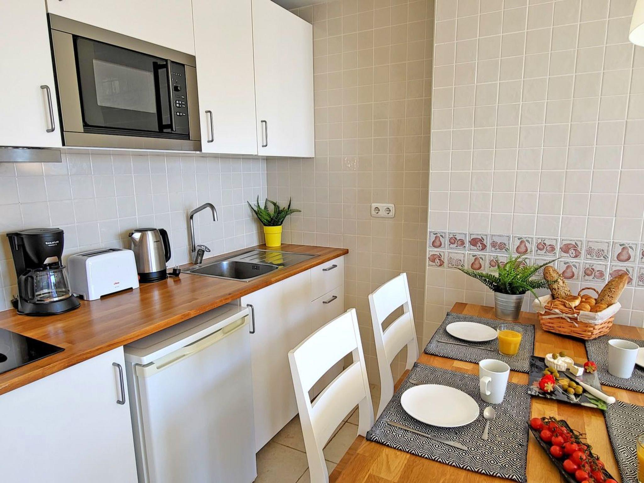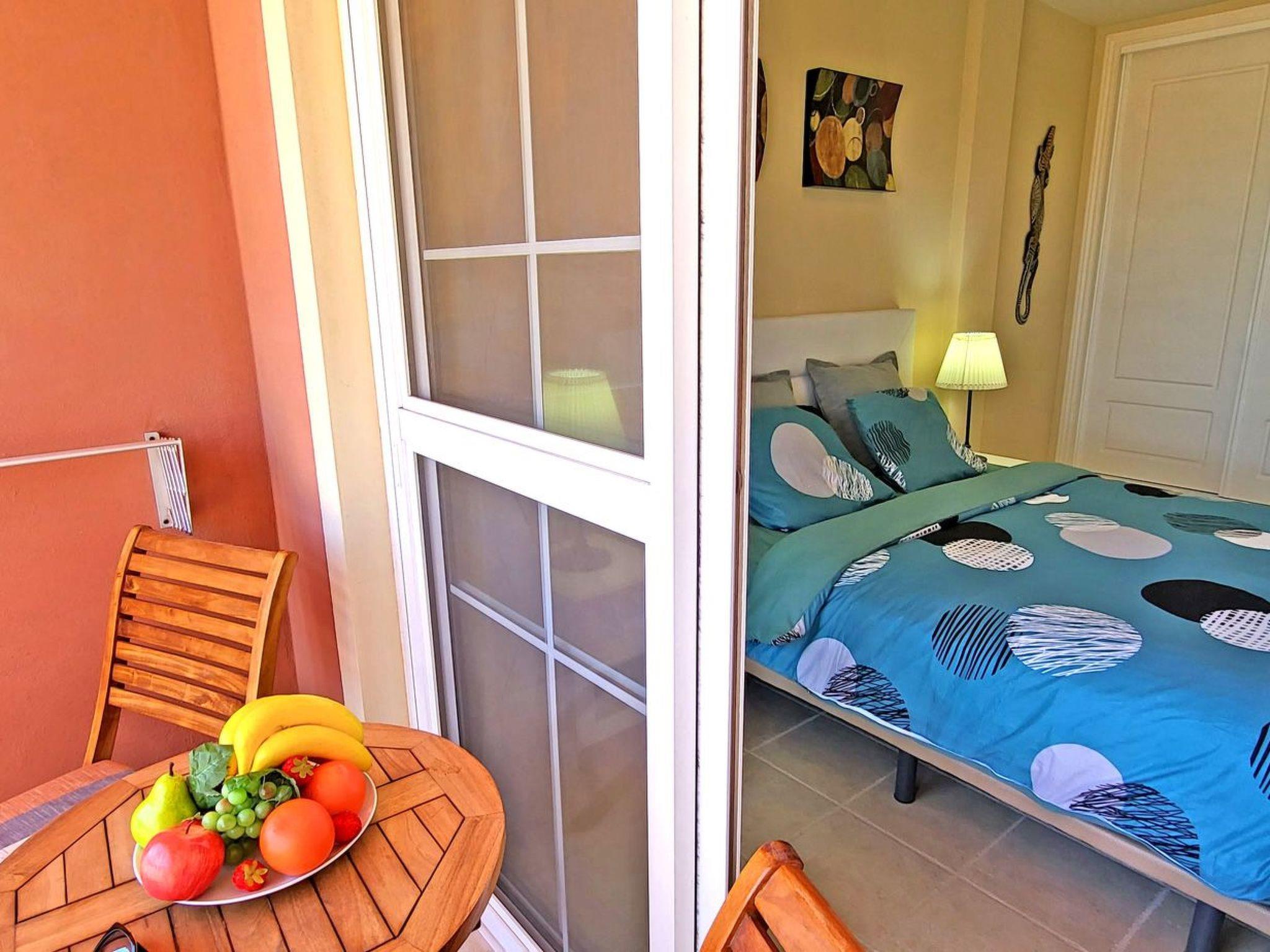 The modern furnished holiday flat offers space for a maximum of 5 people, is equipped with a bedroom with a double bed and its own exit to the balcony with a wonderful view of the ocean, another bedroom with a single bed, as well as a comfortable pull-out sofa bed for 2 more people in the living room. There is also an open-plan kitchen with dining area and a bathroom with shower and washing machine in the living area.