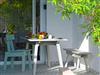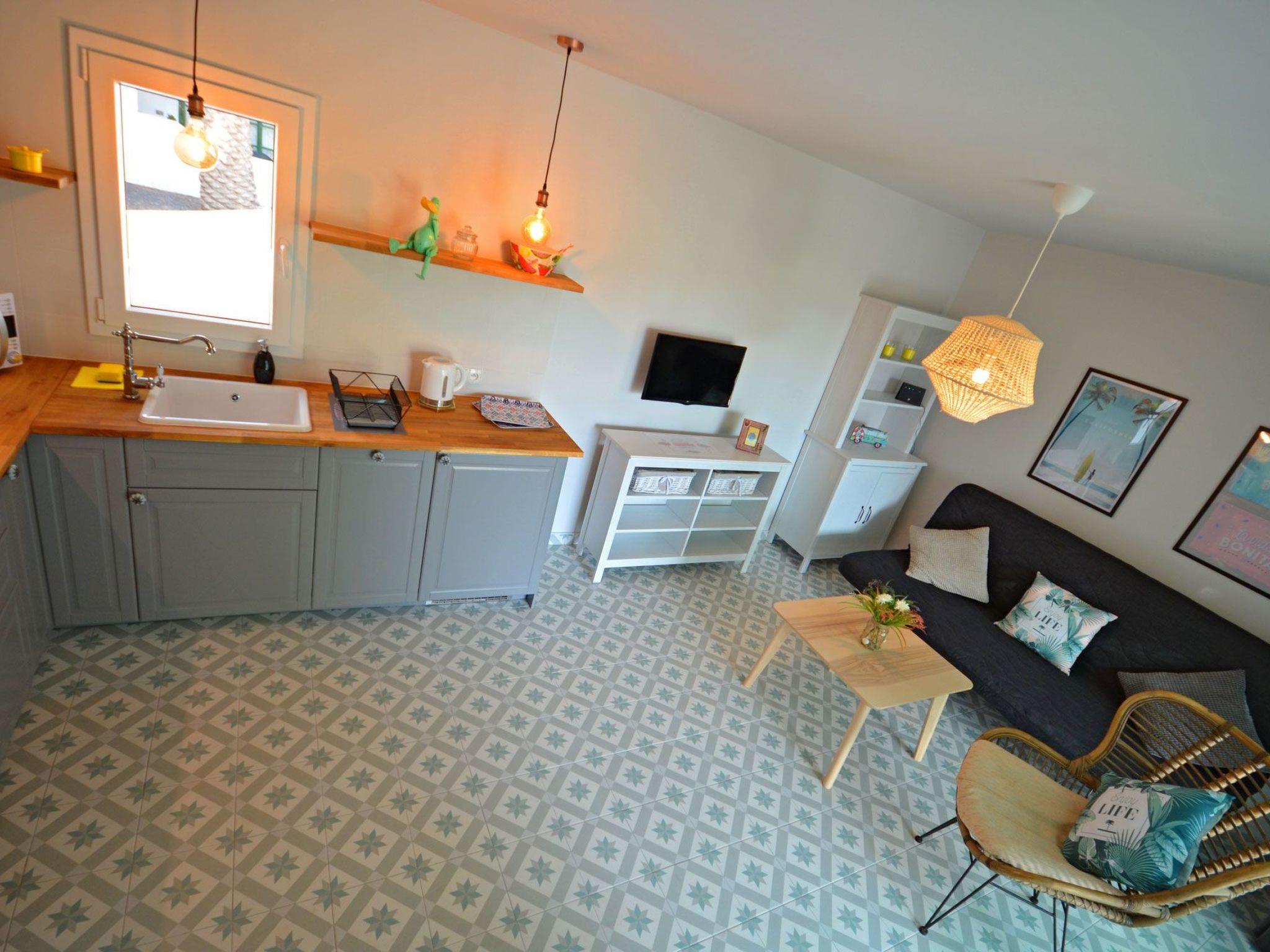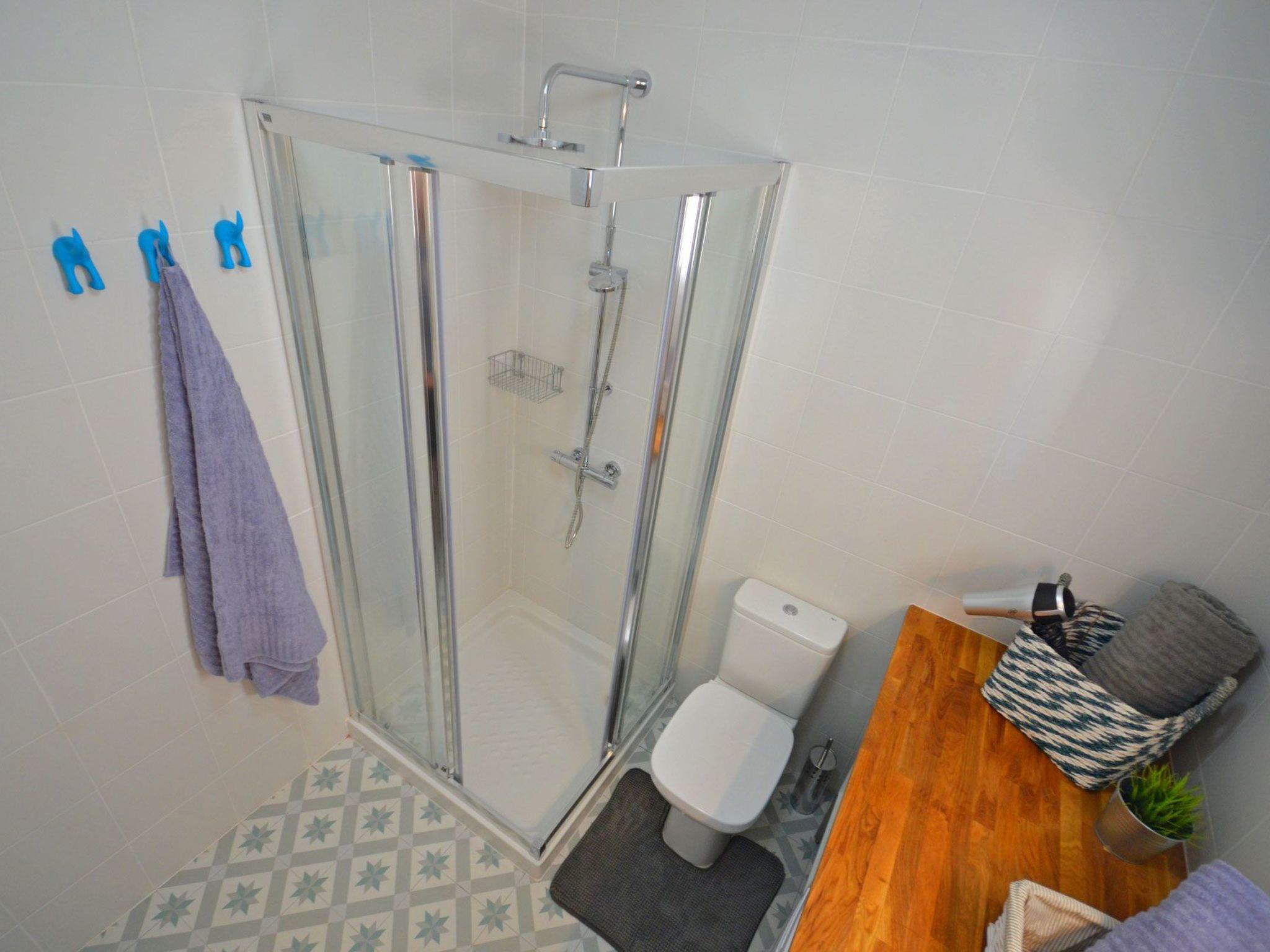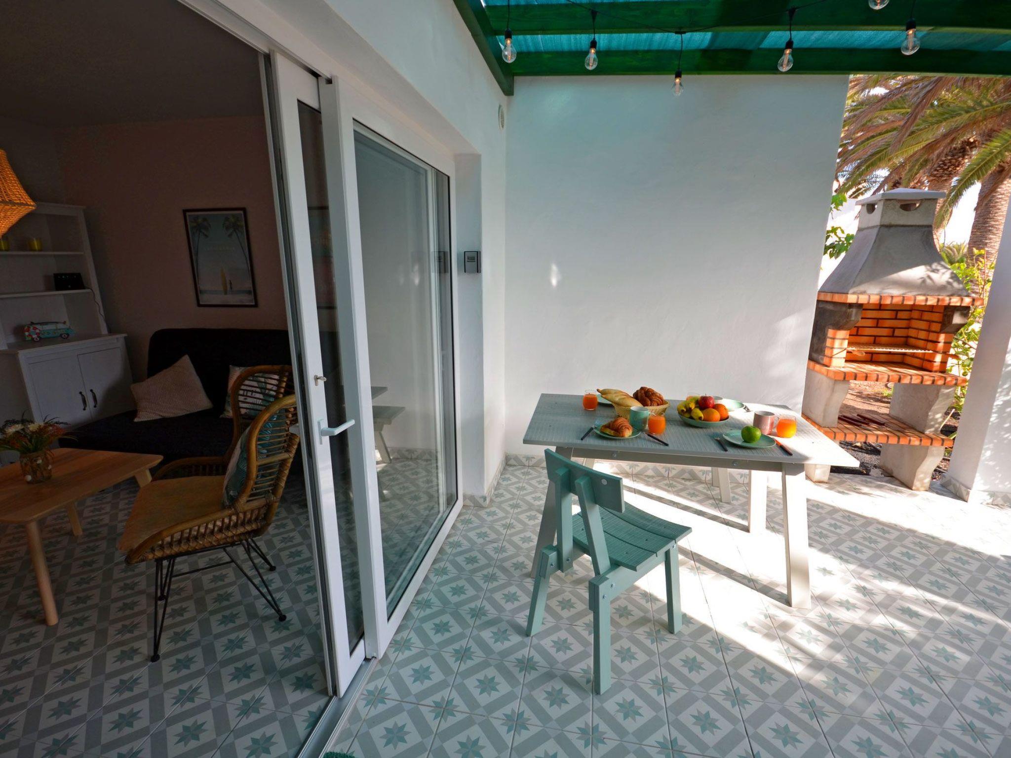 Modern and at the same time cozy apartment for a maximum of 4 people in a quiet location, with terrace, community pool, lots of green and very close to the center.The apartment has an open living room with an open kitchen, a large bathroom with shower, a bedroom and a terrace.Just a few meters further is the communal pool with sun loungers, which invites you to sunbathe together as well as to play and swim.The apartment itself is modern and at the same time comfortably furnished, bright and pleasant.The living room contains a fold-out sofa bed for 2 people. The kitchen has everything you need for everyday use, be it cutlery, pots, cups or other cooking utensils. The kitchen is also equipped with a stove, oven, refrigerator, coffee maker and toaster. The bathroom, which offers a lot of space, has a sink, toilet, shower and is also equipped with a washing machine. The bedroom with window has a double bed 1.60 m, a wardrobe with plenty of storage space and two bedside cabinets.Thanks to the large window / patio door in the living room, it is bright and pleasant, so you can look through it onto the terrace and go out, where you can comfortably enjoy the day.DISTANCES: