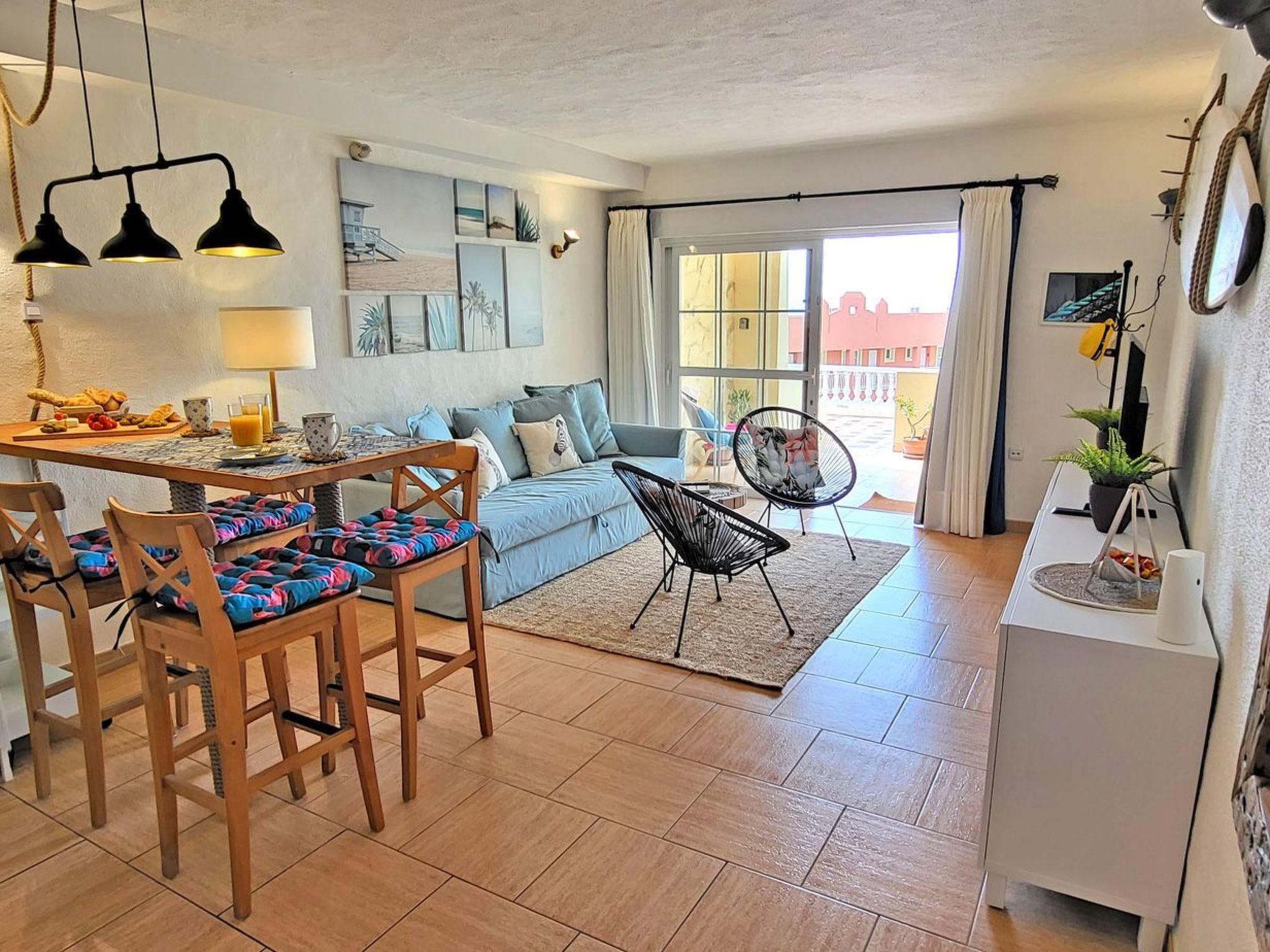 The terrace has seating and you also have a sea view over the rooftops! The popular SOTAVENTO sandy beach is just 500 metres from the flat and is perfect for surfing and kitesurfing! As the flat is located at the top of a hill, it is advisable to hire a car.