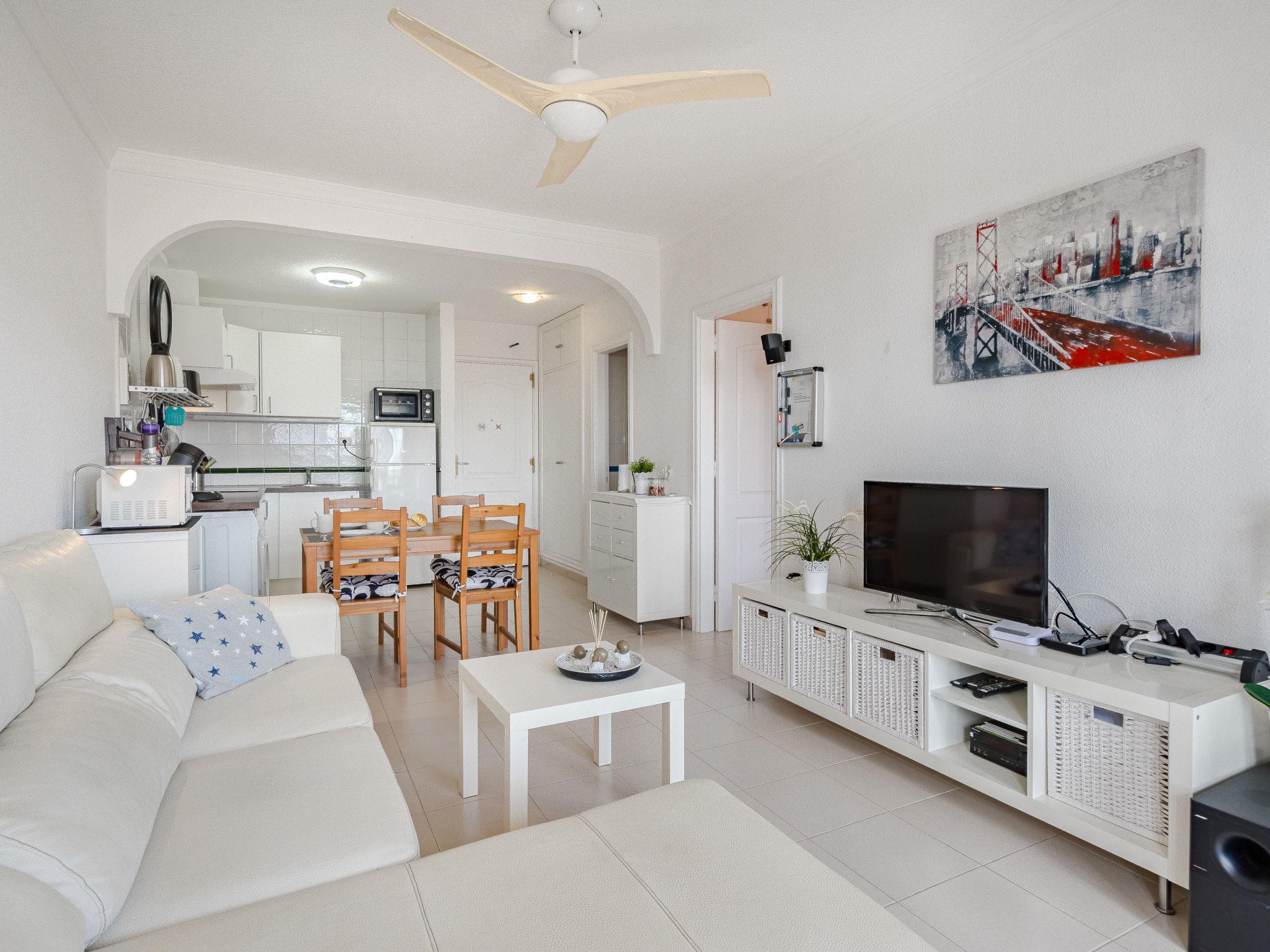 "Balcon del Mar Cozy Nest", 2-room apartment 52 m2, on the upper floor. Object suitable for 2 adults. Renovated, practical furnishings: living/dining room with veranda, sliding door with digital TV, international TV channels and flat screen. Exit to the veranda. 1 room with 1 french bed (150 cm, length 190 cm). Open kitchen (4 ceramic glass hob hotplates, toaster, kettle, microwave, freezer, electric coffee machine) with dining table, boiler (50 litres). Shower/bidet/WC. No heating option. View of the sea. Facilities: washing machine, iron, hair dryer. Internet (WiFi, free). Please note: not suitable for small children. Fire extinguisher. VV-38-4-0103649 // Reg. Nr.: ESFCTU0000380160003226010000000000000VV-38-4-01036497