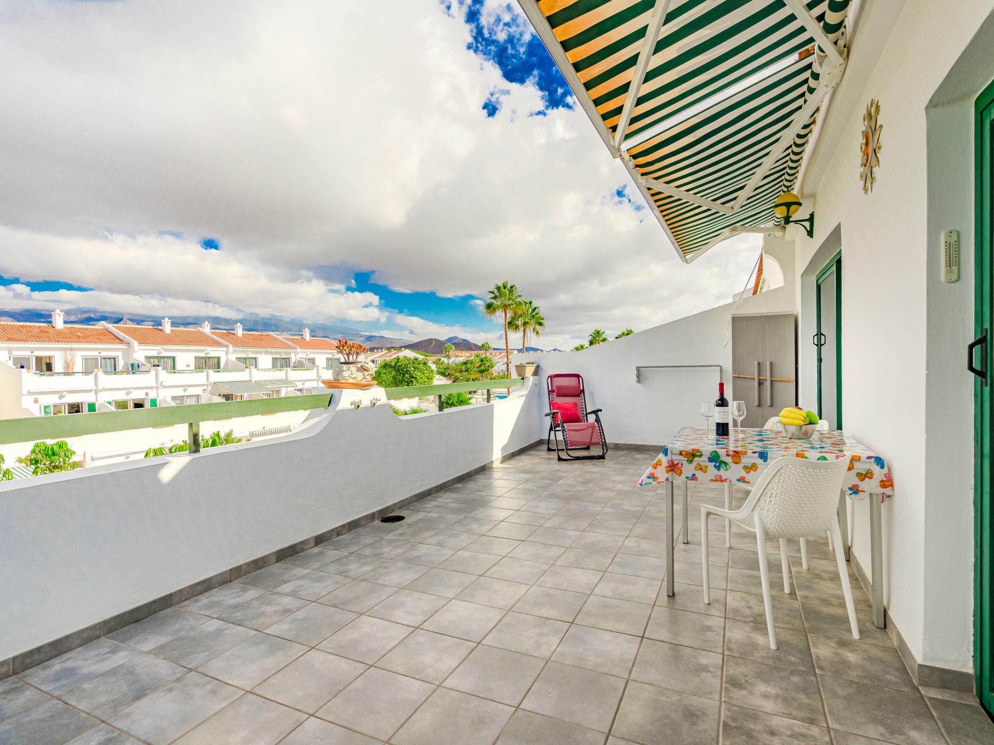 "Parque Don Jose Vista Teide", 3-room apartment 72 m2 on 2nd floor. Object suitable for 4 adults. Bright, practical and comfortable furnishings: living/dining room with digital TV and international TV channels. Exit to the terrace. 1 room with 1 french bed (160 cm, length 210 cm). Exit to the terrace. 1 room with 1 french bed (140 cm, length 190 cm). Open kitchen (oven, 3 ceramic glass hob hotplates, toaster, kettle, microwave, freezer, electric coffee machine) with boiler (100 litres). Shower/WC. No heating option. Large terrace 23 m2. Terrace furniture. View of the mountains and the swimming pool. Facilities: washing machine, iron, baby cot for up to 2 year olds, hair dryer. Internet (WiFi, free). Please note: suitable for families. Non-smokers only. Fire extinguisher, no lift. VV-38-4-0094511 // Reg. Nr.: ESFCTU0000380160001253700000000000000VV-38-4-00945114