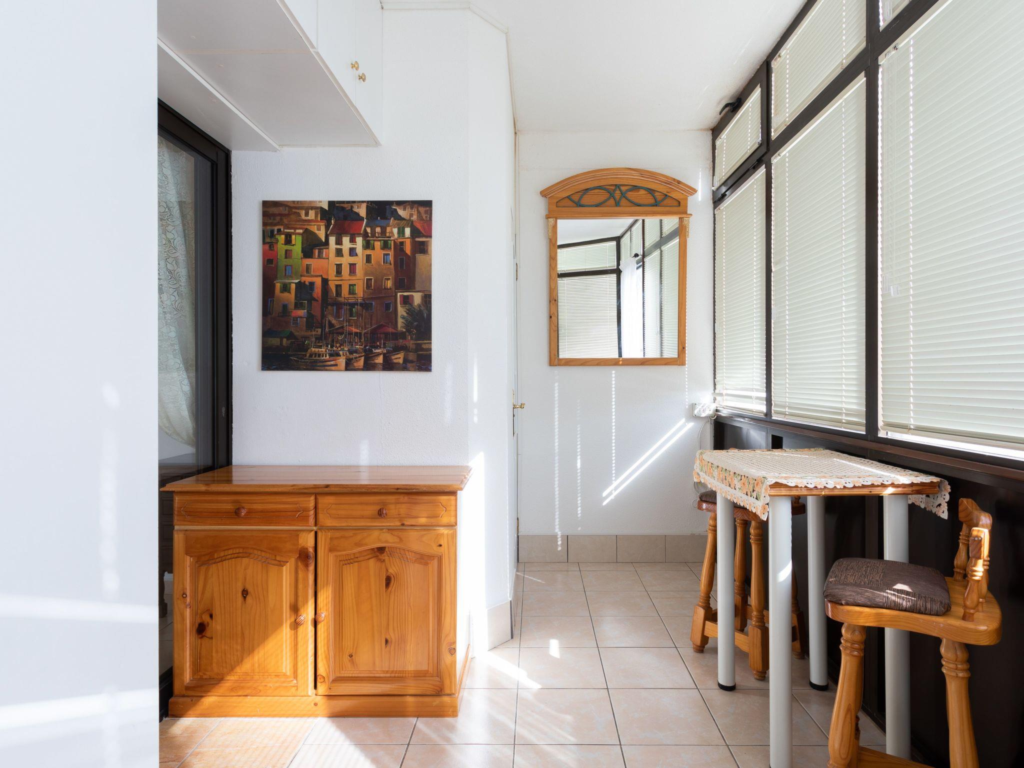 The flat was completely renovated in 2015 and has two bedrooms with a large wardrobe, double bed and flat-screen TV. In the living room there is a dining area and a sofa bed. The kitchen is equipped with all the necessary cooking appliances and utensils such as an oven, a cooker with 4 ceramic hobs, fridge and coffee machine. The bathroom has a shower, bathtub and washing machine. There is a natural seawater pool for swimming just 50 metres from the flat. The nearest bus stop is just 200 metres away. Las Galletas beach is just a 10-minute walk away. There are several restaurants in front of the building and the nearest shops are just 150 metres away.