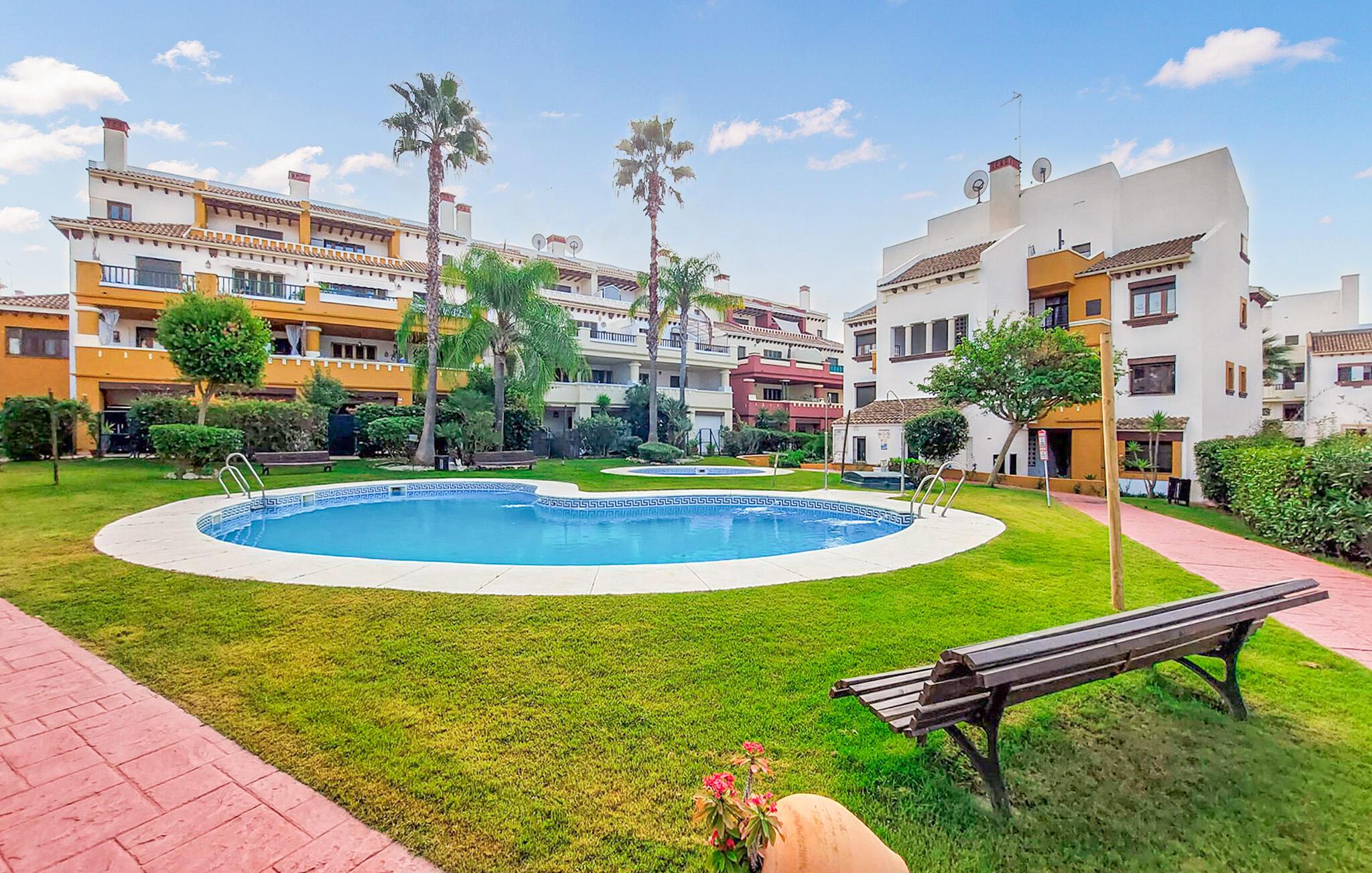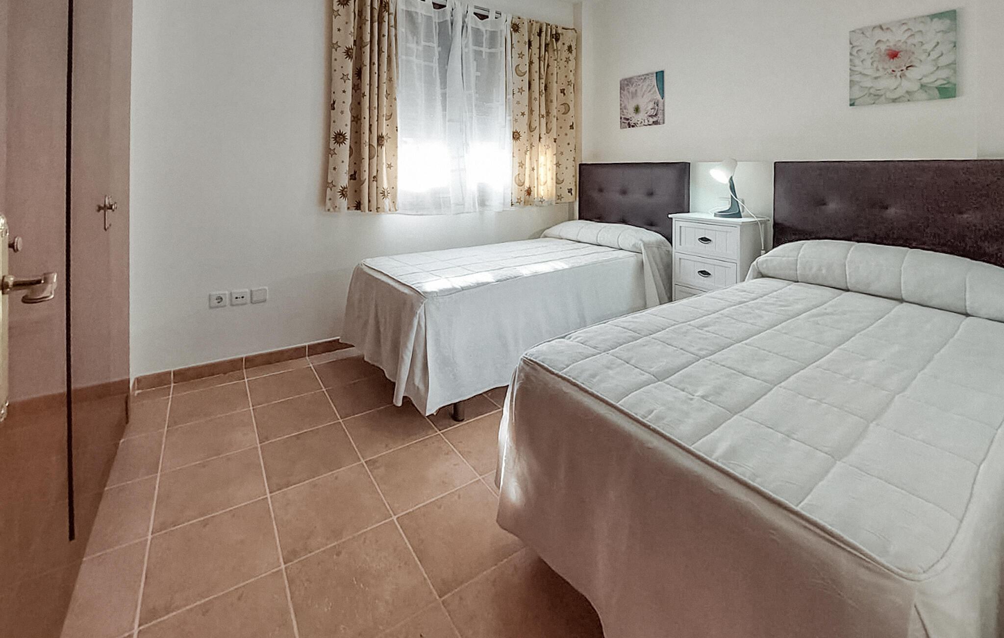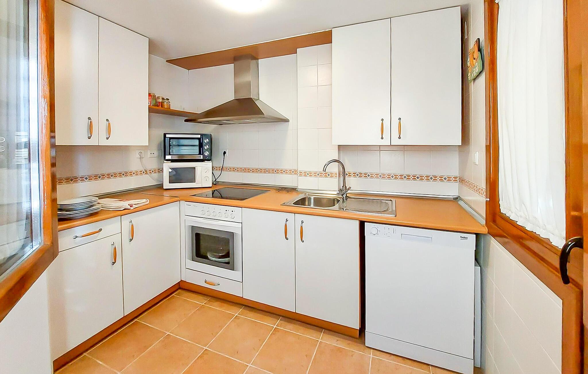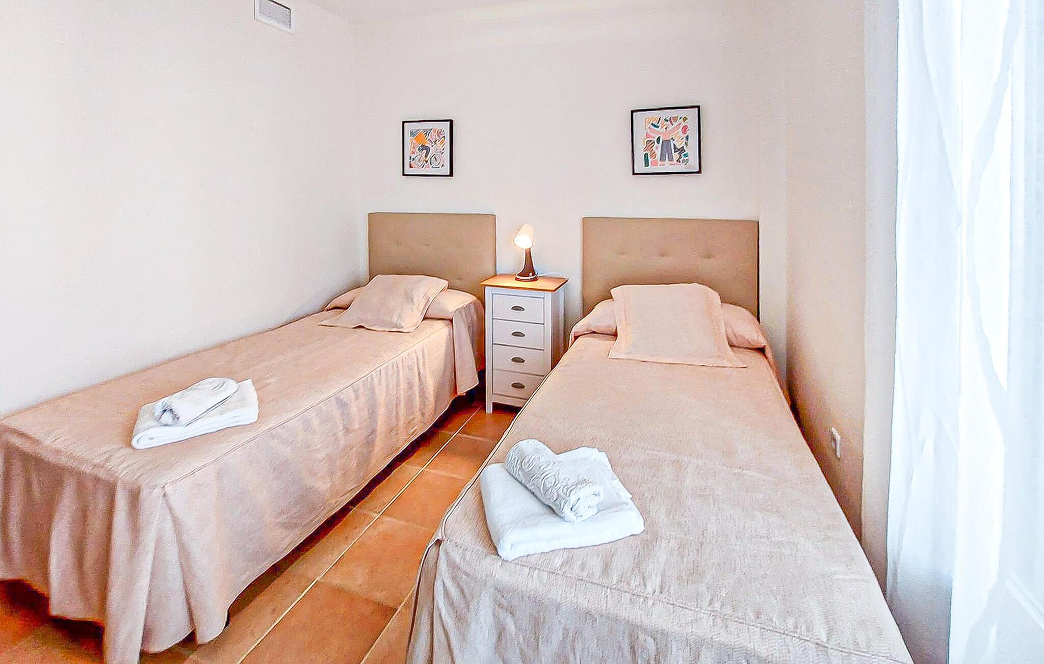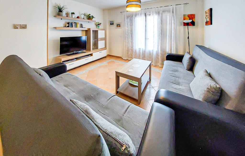Denne rummelige lejlighed er ideel til at tilbringe solrige dage med venner eller familie. Føl jer hjemme i det smagfuldt møblerede interiør, planlæg jeres aktiviteter over afslappede måltider og slap af efter en lang dag med en spændende serie på den komfortable sofa.