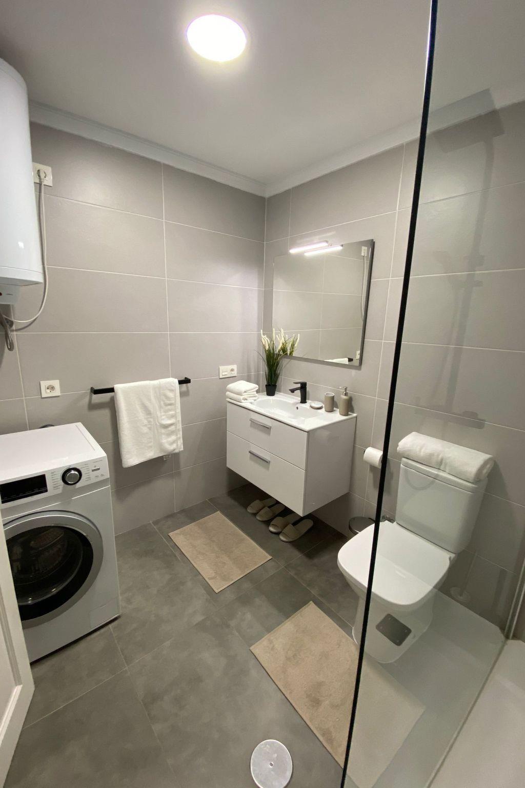 - Bathroom with rain shower and washing machine