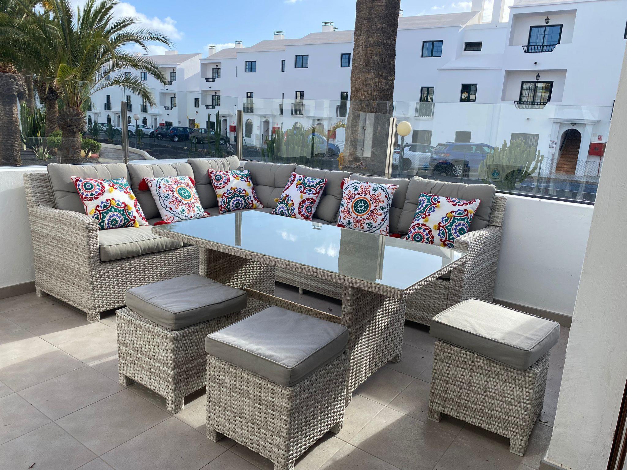 Embedded in a beautiful pool area, the complex is very centrally located in Costa Tequise, surrounded by restaurants, bars and shopping facilities. The next largest town, Costa Tequise, is approx. 1.5 kilometres away. The distance to the sea is also 1.5 kilometres.