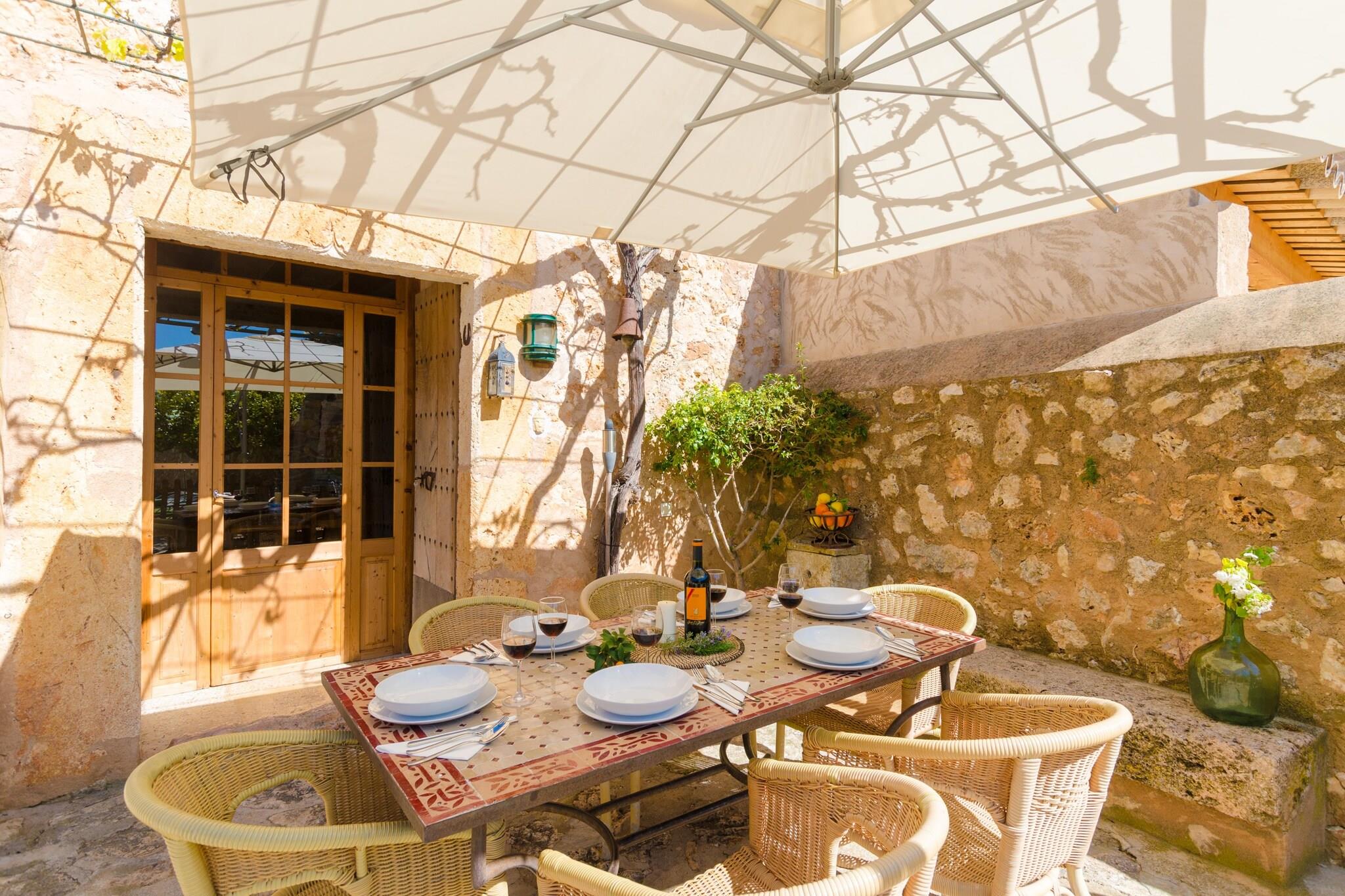 Het huis heeft de typische Mallorcaanse landelijke architectuur uit de 18e eeuw behouden, hoewel het in 2000 werd gerestaureerd en zo een weids uitzicht op het platteland biedt. Op het perceel van ongeveer 28.000 m2 dat uitnodigt tot het maken van lange wandelingen, kunt u veel rust inademen en is het perfect voor een vakantie midden in de natuur. De accommodatie is ideaal voor families en groepen vrienden, omdat het grote buitenruimtes heeft waar ze kunnen ontspannen en een zoutzwembad van 6,8 mx 2,8 m en 0,90 m tot 1,55 m diep, dat uitnodigt tot een verfrissende duik. Direct naast de deur zijn er 5 hangmatten om te zonnebaden of te ontspannen. U kunt ook een fantastische barbecue organiseren op het terras, waar u een tafel en stoelen vindt onder een ideale wijnstok, ook voor zomerse diners. Er is een tweede buitenkeuken waar nog de houtoven en een open haard aanwezig zijn. Binnen beschikt de keuken-eetkamer over alle benodigde elementen en keukengerei, zodat u uw favoriete gerechten kunt bereiden met de groenten en fruit die u uit de tuin van de boerderij kunt plukken. In de woonkamer staat een zeer comfortabele bank waar u zich kunt vermaken door TV-SAT te kijken of de bordspellen te spelen die beschikbaar zijn. Er zijn twee badkamers, één met douche op de begane grond en één met ligbad op de bovenverdieping. Voor uw rust zijn er vier slaapkamers met airconditioning en uitzicht op de patio, waarvan drie met een kledingkast. Eén ervan bevindt zich op de begane grond met twee eenpersoonsbedden, en de rest bevindt zich op de bovenverdieping, twee met twee eenpersoonsbedden en de laatste met een tweepersoonsbed. Een kinderbedje en een kinderstoel zijn aanwezig. Het huis ligt op 1,8 km van Costitx, waar u alle noodzakelijke diensten kunt vinden, zoals supermarkten, een medisch centrum, een apotheek, bars, restaurants, enz. Als u van astronomie houdt, zult u graag willen weten dat op slechts 2,2 km afstand het Astronomisch Observatorium van Mallorca ligt. Af en toe hoor je vliegtuigen, maar het gebied is eigenlijk heel rustig. Gelegen in het centrum van Mallorca, maakt het elke hoek gemakkelijk bereikbaar: Palma of de Sierra de Tramuntana bijvoorbeeld, ongeveer 40 minuten met de auto. In ongeveer 30 minuten bereikt u de prachtige stranden van Puerto de Alcúdia, Can Picafort of Playa de Muro. Voor eventuele extra kosten kunt u contact opnemen met de adverteerder. Huisdieren zijn welkom. Het vieren van evenementen is niet toegestaan. Er is buiten parkeergelegenheid voor 6 auto's. Afstanden Strand: 29,8 km - Playa de Palma Luchthaven: 31,6 km - Son Sant Joan Golfbaan: 35,3 km - Vall d'Or Stad: 1,8 km - Costitx Treinstation: 10,7 km - Sineu Bushalte: 2 km - Costitx Veerboot: 30 km - Palma de Mallorca Ziekenhuis: 10,3 km - Inca Toeristenvergunning: ETV/4204 Bij de ingang moet u de Ecotasa (toeristenbelasting van de Balearen) contant betalen. Het bedrag varieert tussen EURO 0,55 / per nacht per persoon in het laagseizoen en EURO 2,2 / per nacht per persoon in het hoogseizoen. Vanaf de negende dag wordt het met de helft verminderd. Personen onder de 16 jaar uitgesloten.